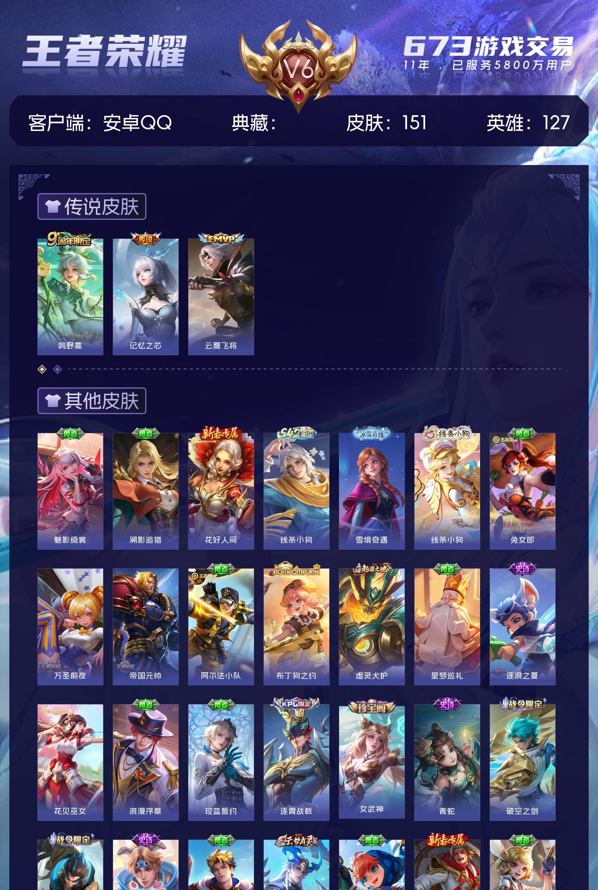 V6 皮肤151 英雄127 永恒钻石 传说3 其他皮肤152