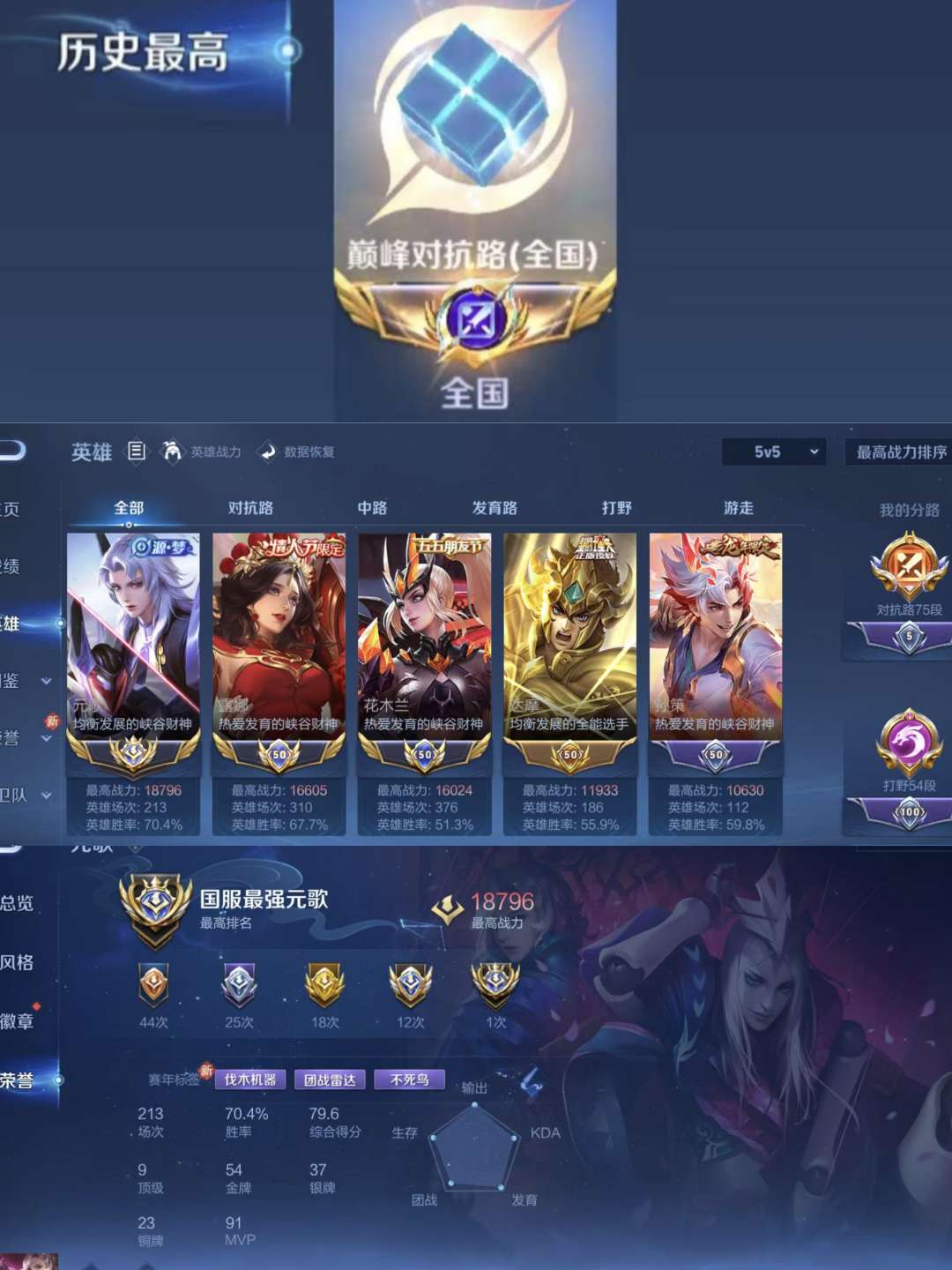 大国标元歌近1.9+70胜率,国标露娜露娜近1.7,国标花木兰1.6,巅峰对抗路,小魔方+百星