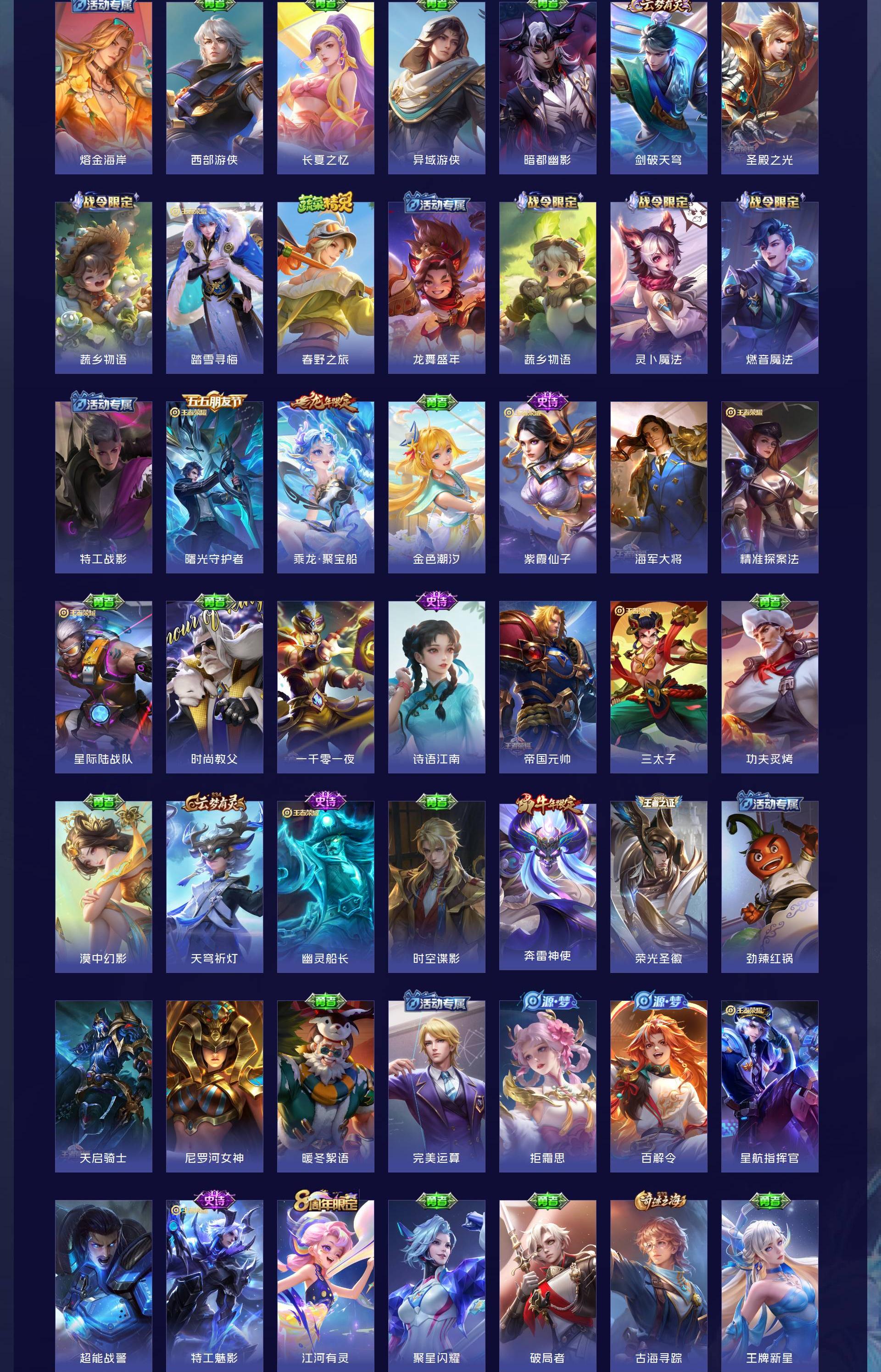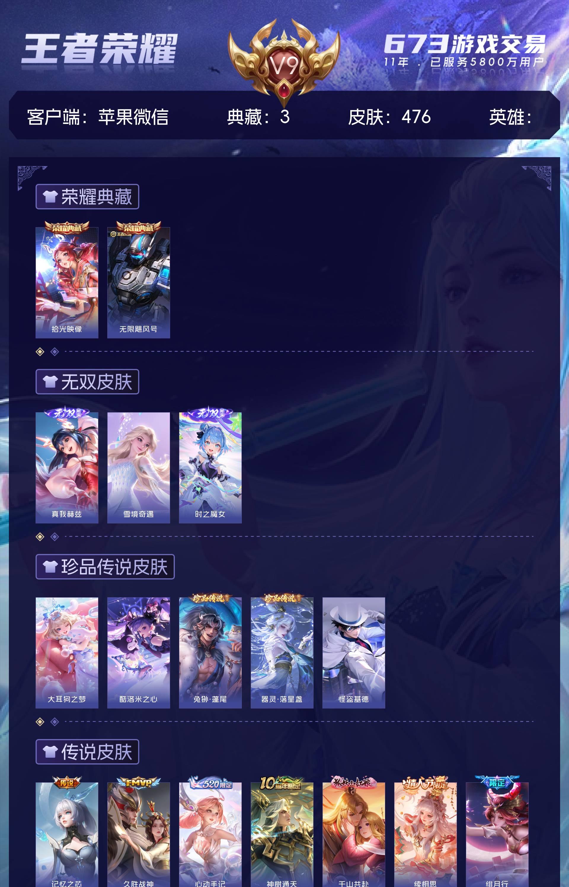 V9 皮肤476 至尊星耀 荣耀典藏3 无双皮肤3 珍品传说5 星传说5 传说32 其他皮肤435