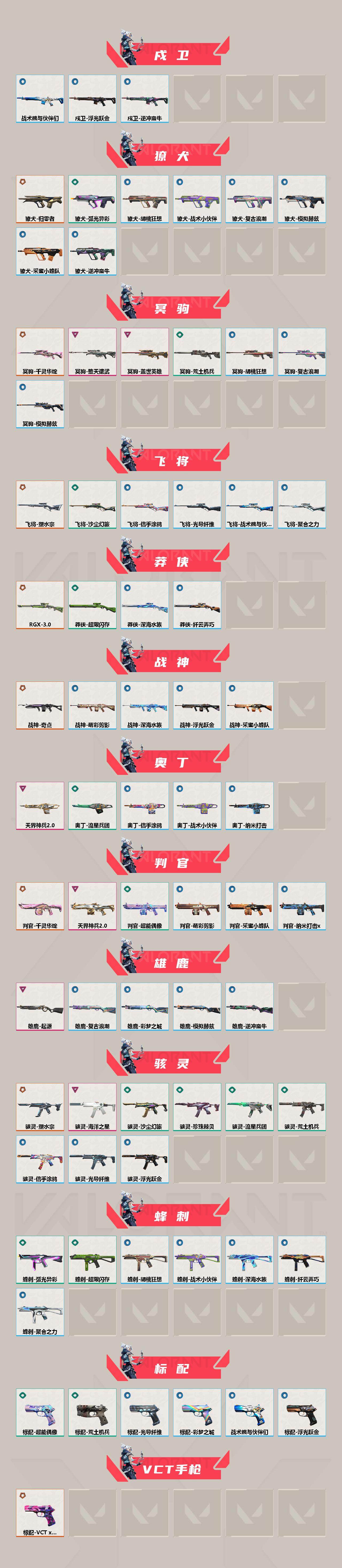 【近战武器】:近战武器-剥皮小刀,近战武器-奇点//2.0 蝴蝶刀,近战武器-紫金爪刀,近战武器-RGX 11z Pro//3.0 爪刀,近战武器-黑波之刃,近战武器-落英飞旋,近战武器-威龙之刃,近战武器-鬼丸国纲,近战武器-珍珠棘贝 短剑,近战武器-流星兵团 短剑,近战武器-超能偶像 应援棒,近战武器-超限闪存 匕首,近战武器-钢轨卫士 战锤,近战武器-硅晶刻刀,近战武器-海星锚,近战武器-弧光异彩 军刀,近战武器-