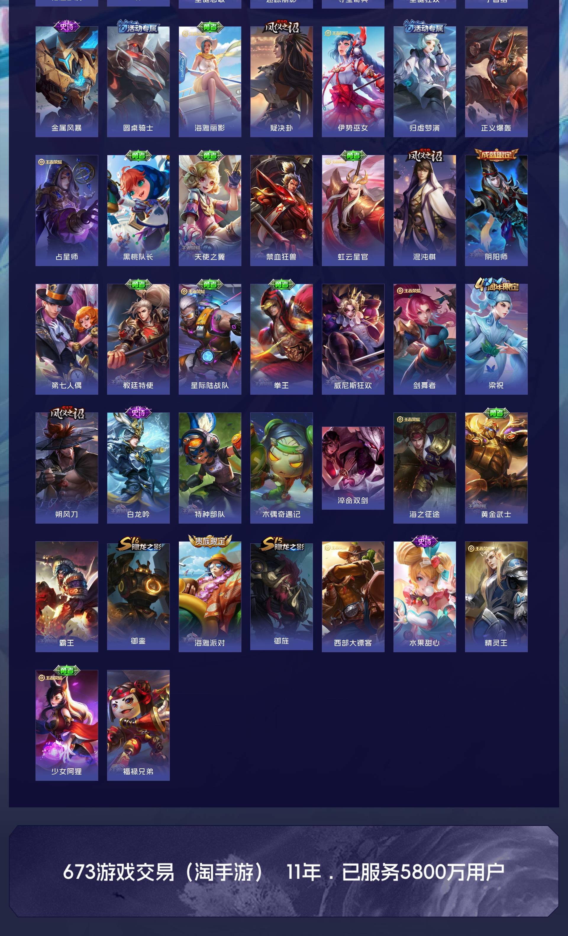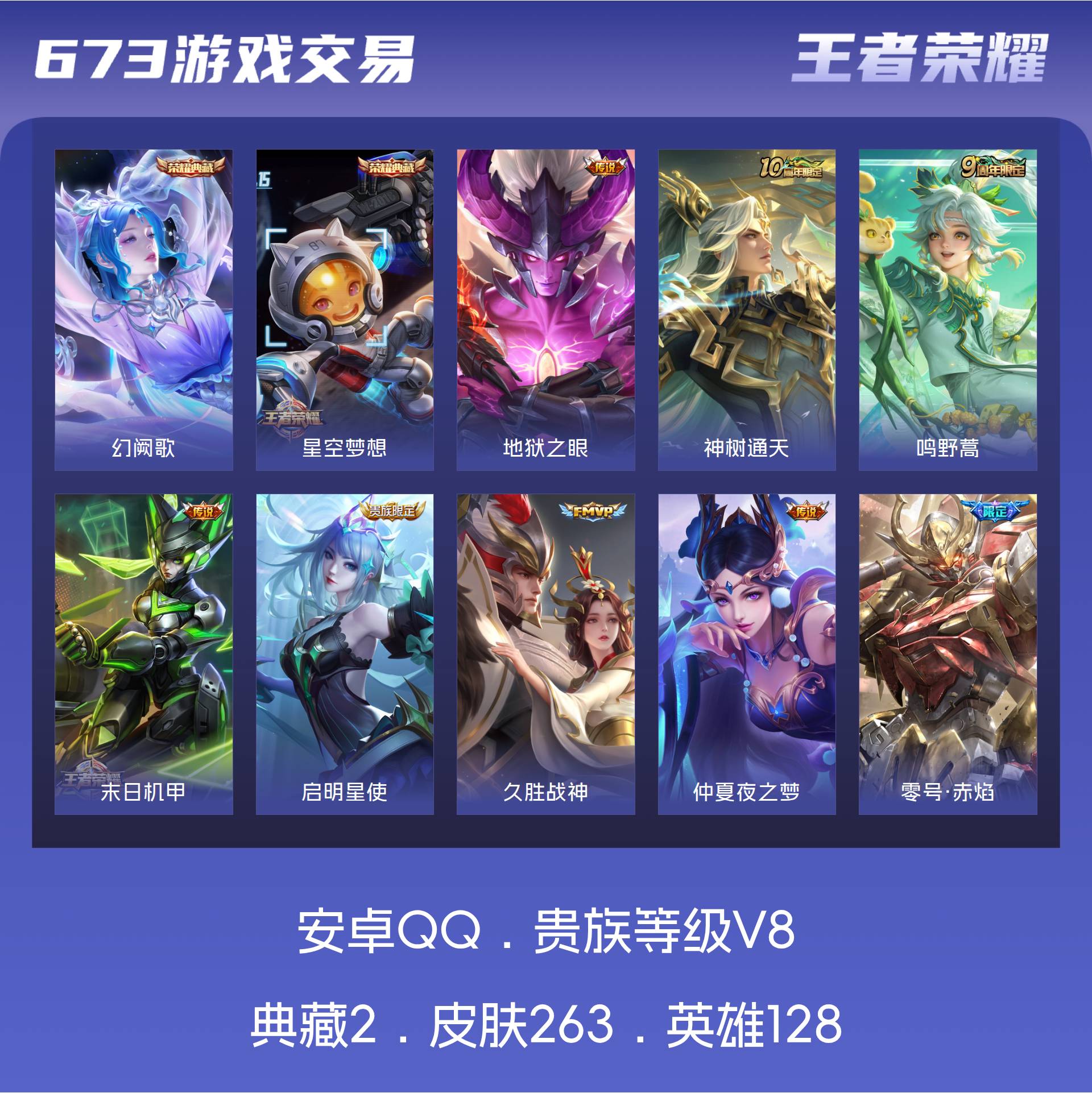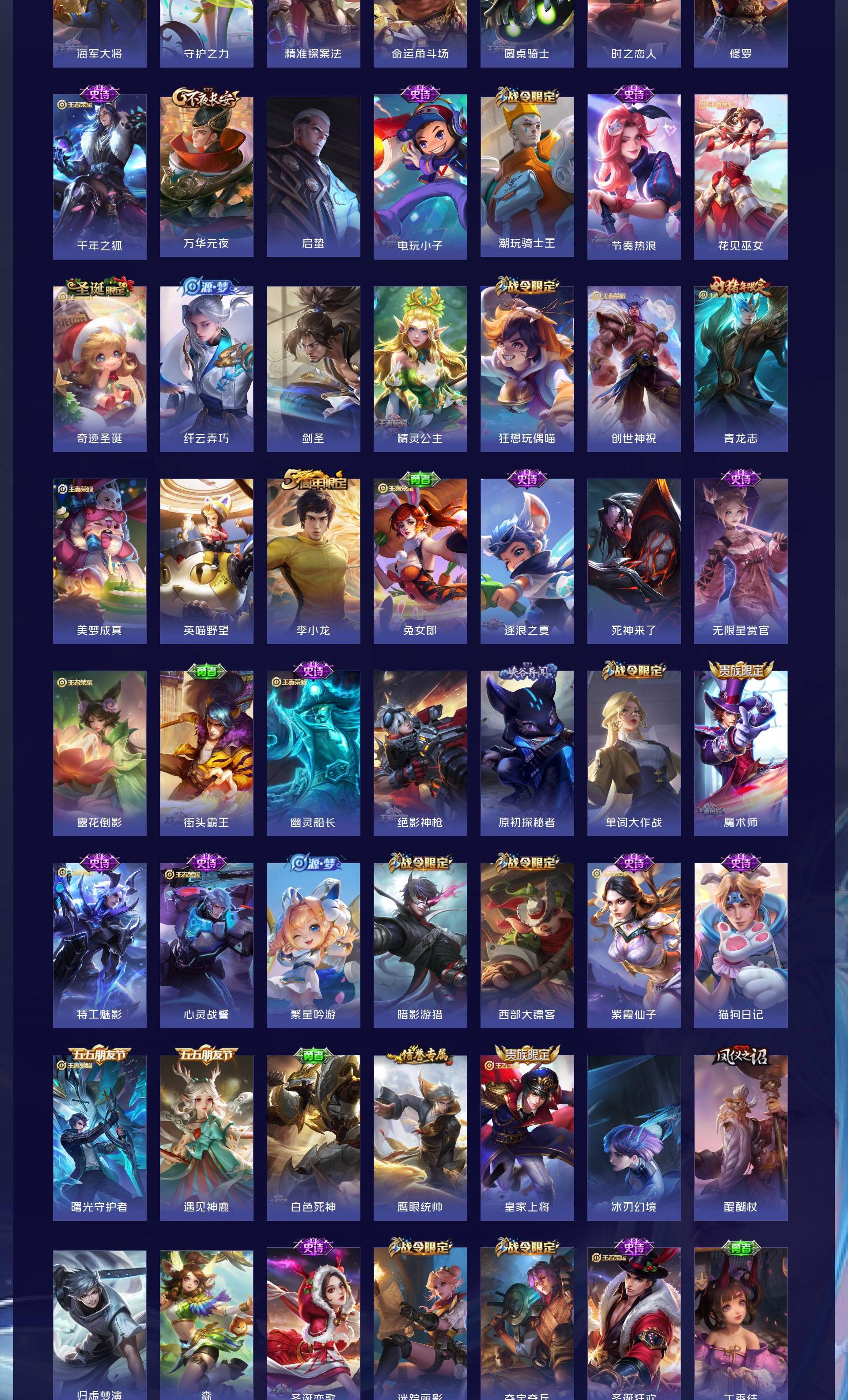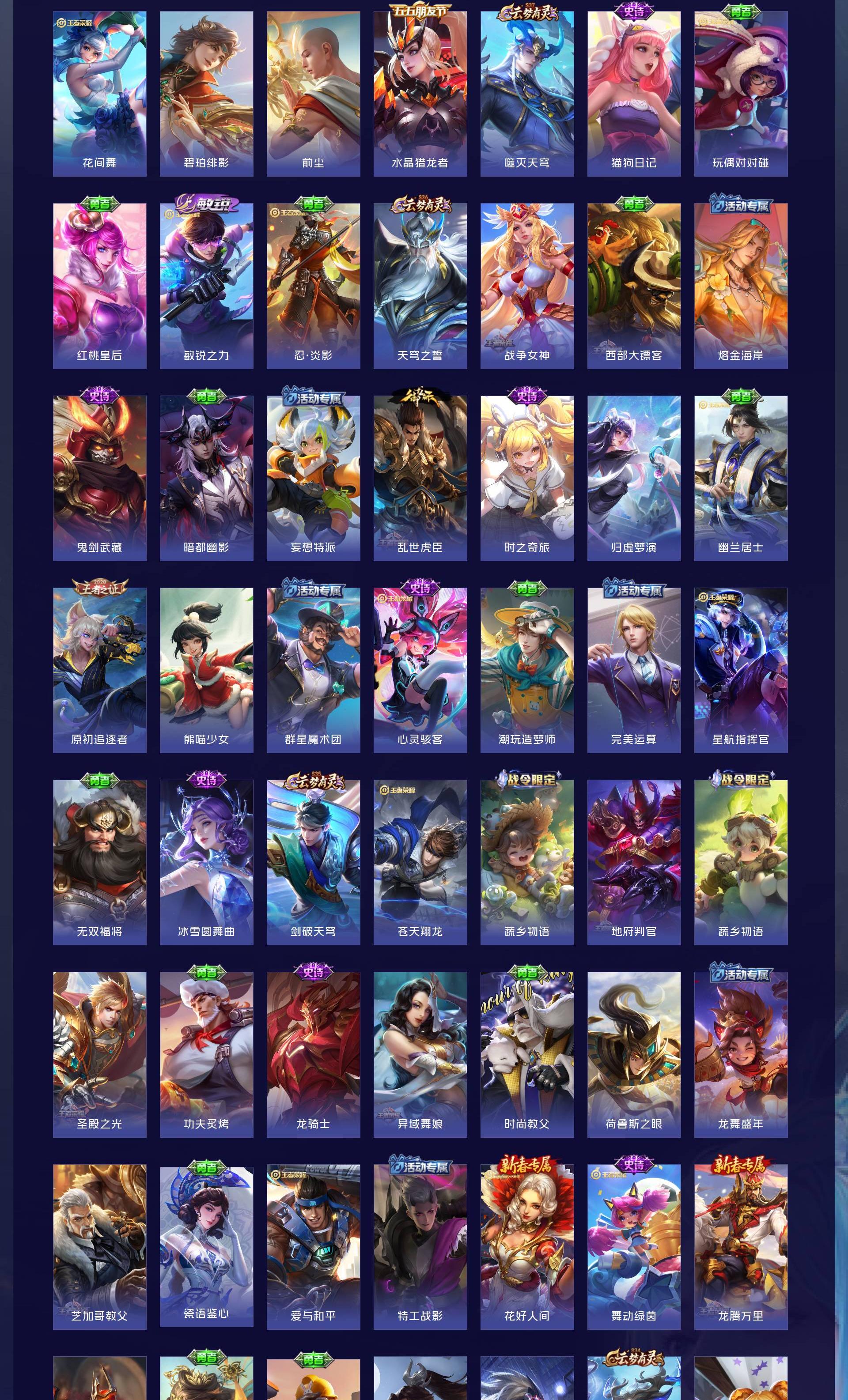 V8 皮肤263 英雄128 至尊星耀 荣耀典藏2 星传说4 传说13 其他皮肤254