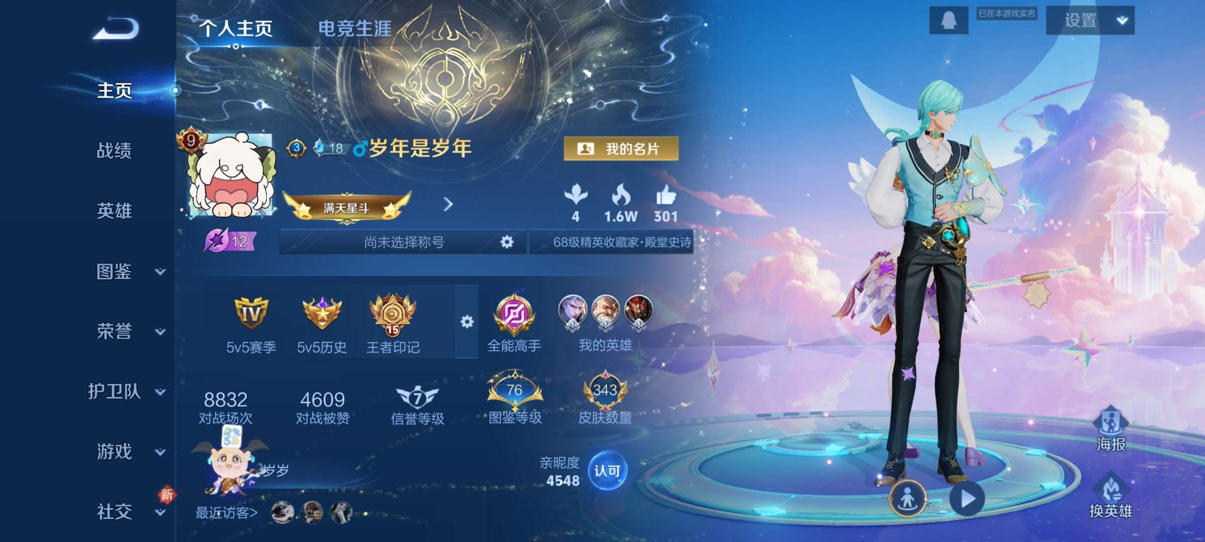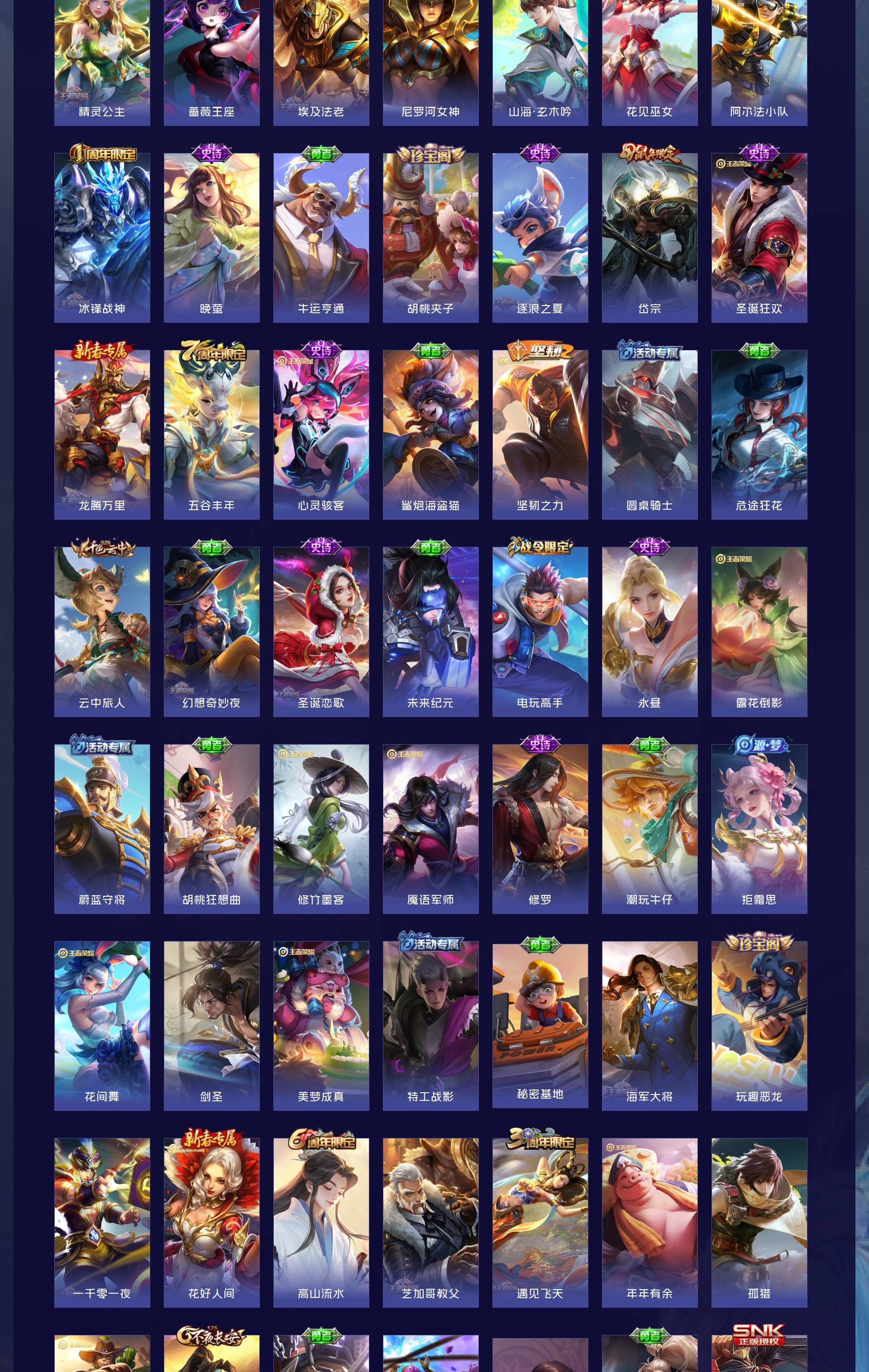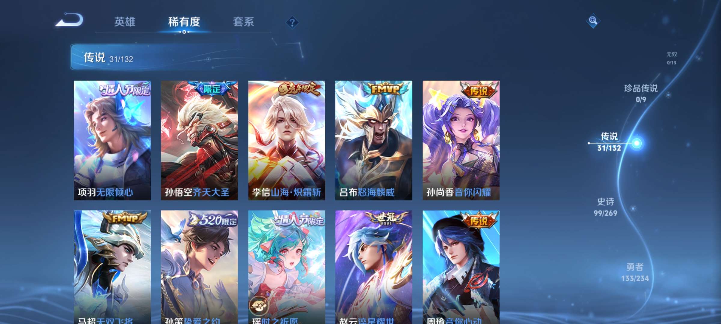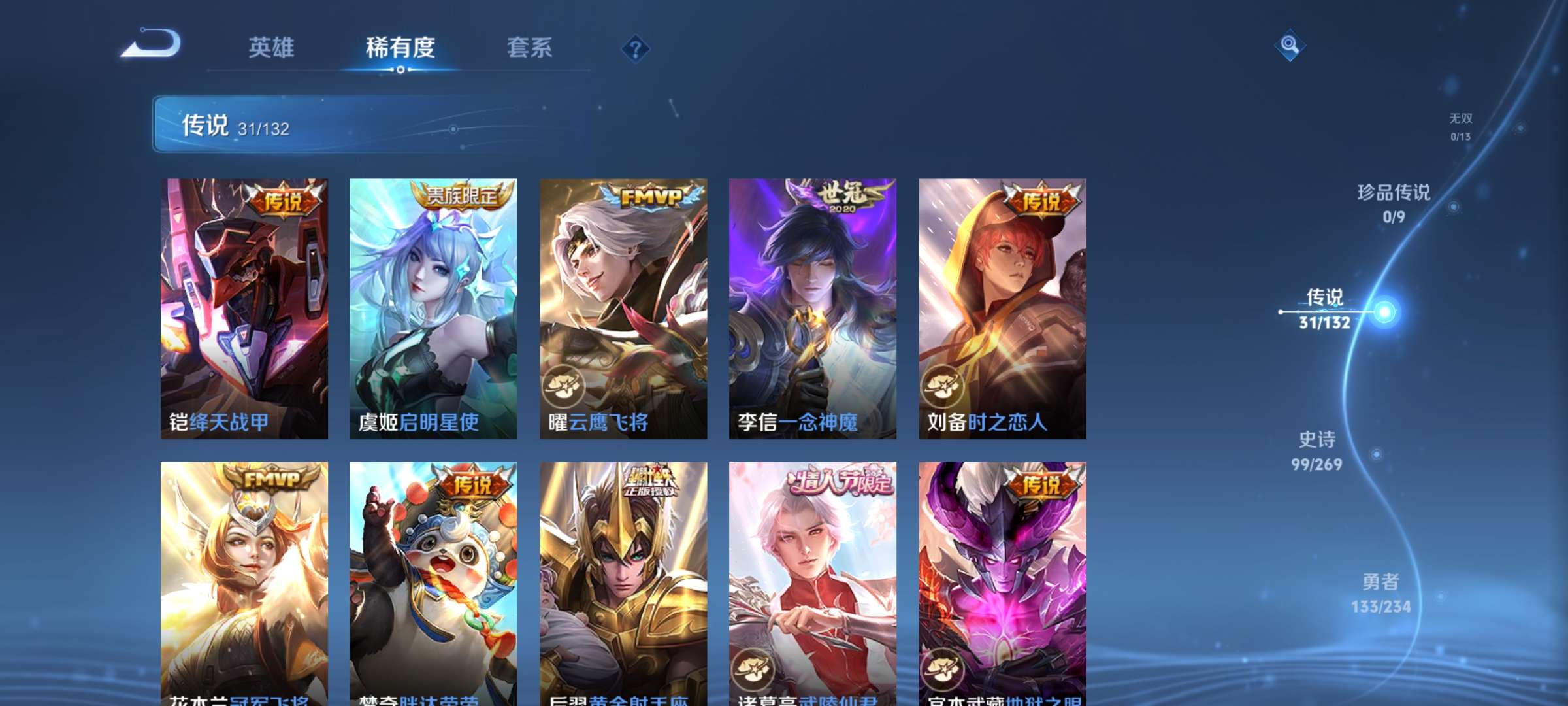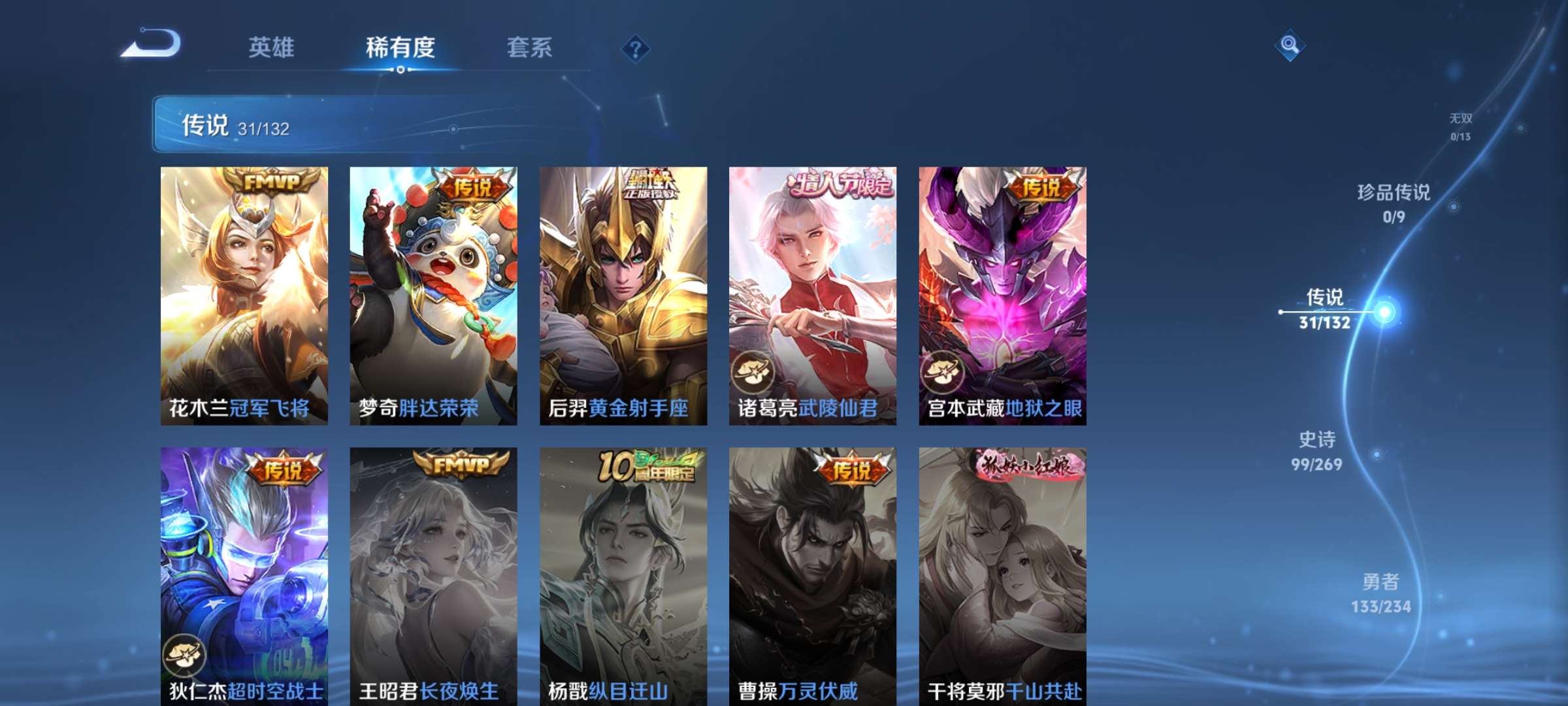 V9 皮肤343 英雄128 至尊星耀 荣耀典藏1 传说30 其他皮肤317