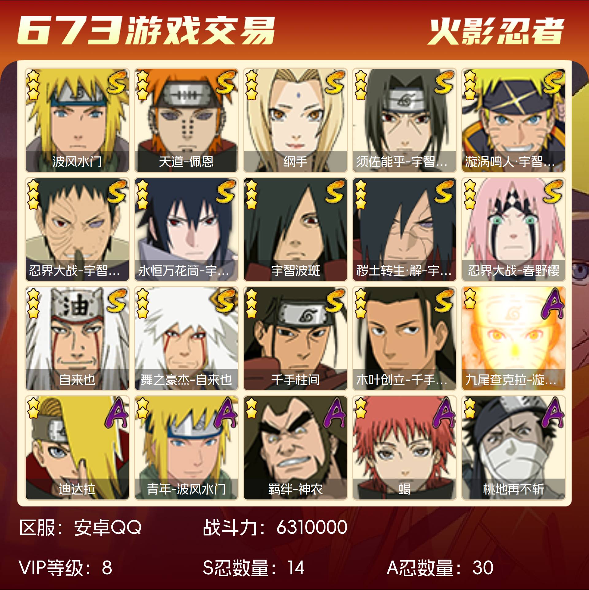 角色等级140 金币2149 战斗力6310000 S忍14 A忍30 5星S忍者10 8 段位暗部