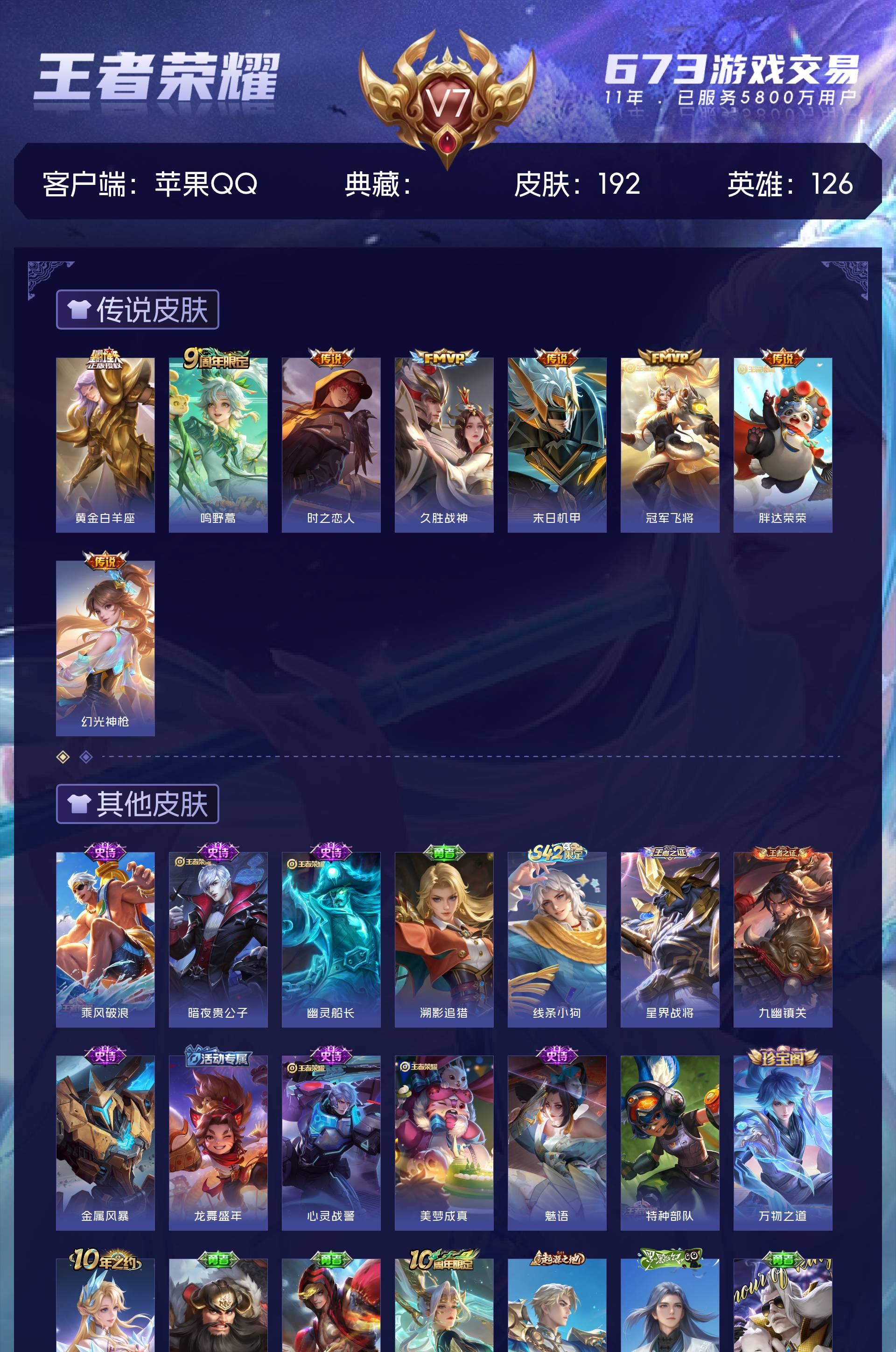 V7 皮肤192 英雄126 非凡王者 星传说1 传说8 其他皮肤190