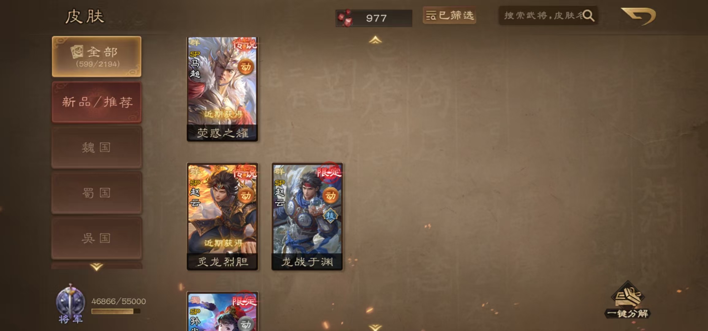 武将皮肤都是根据个人喜好收集的,非资深玩家,主要山河图