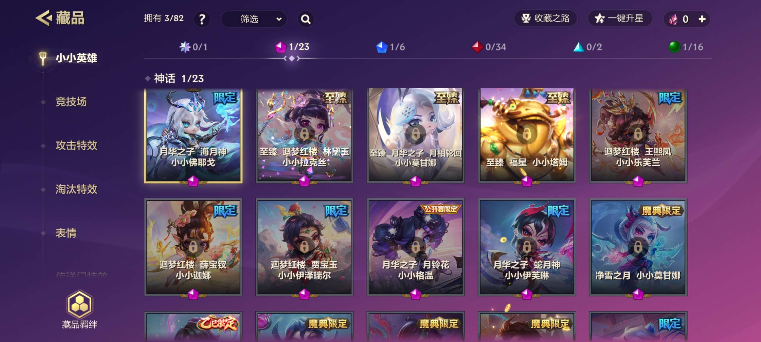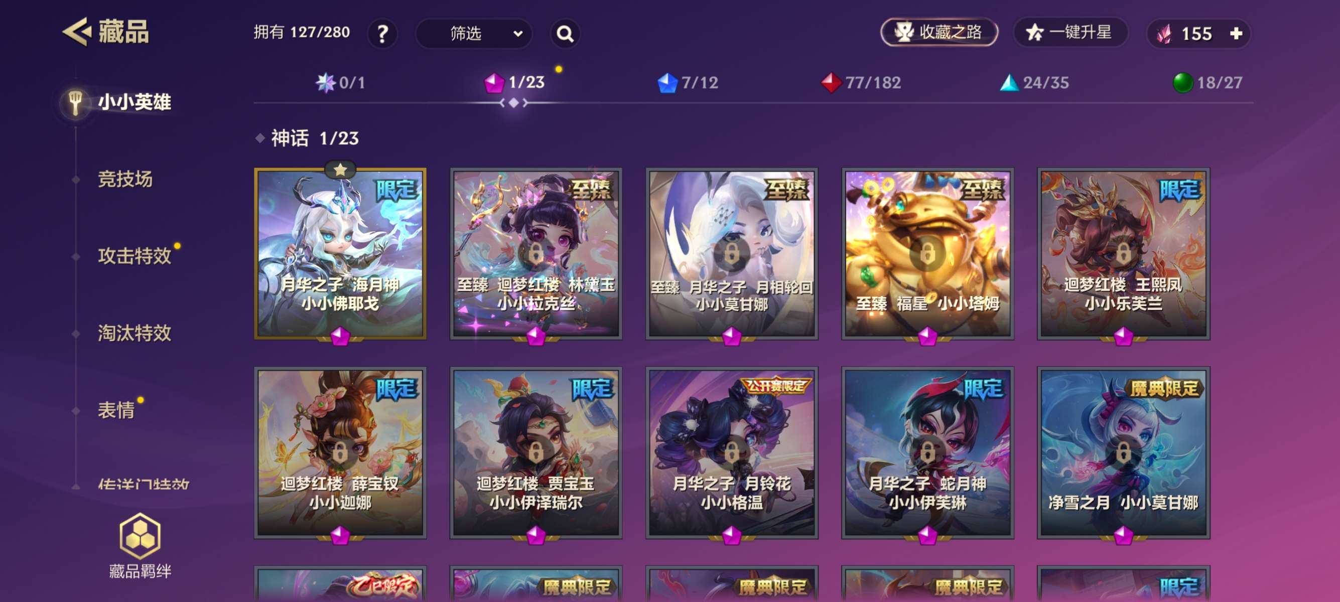 玩了很久的账号,成就几乎满了,小小英雄很多