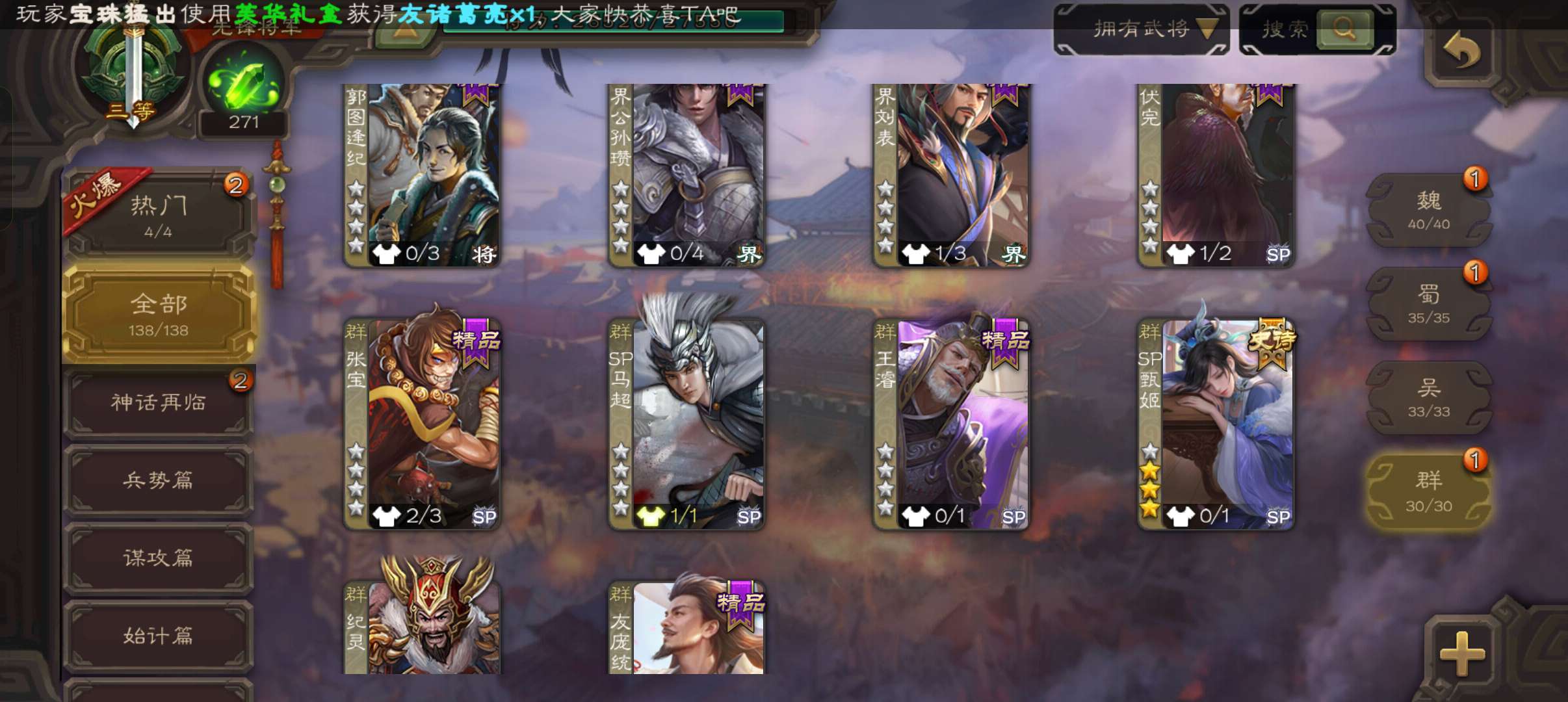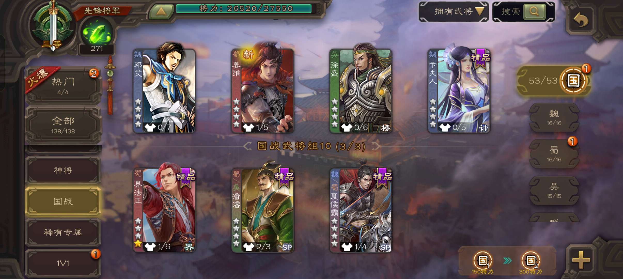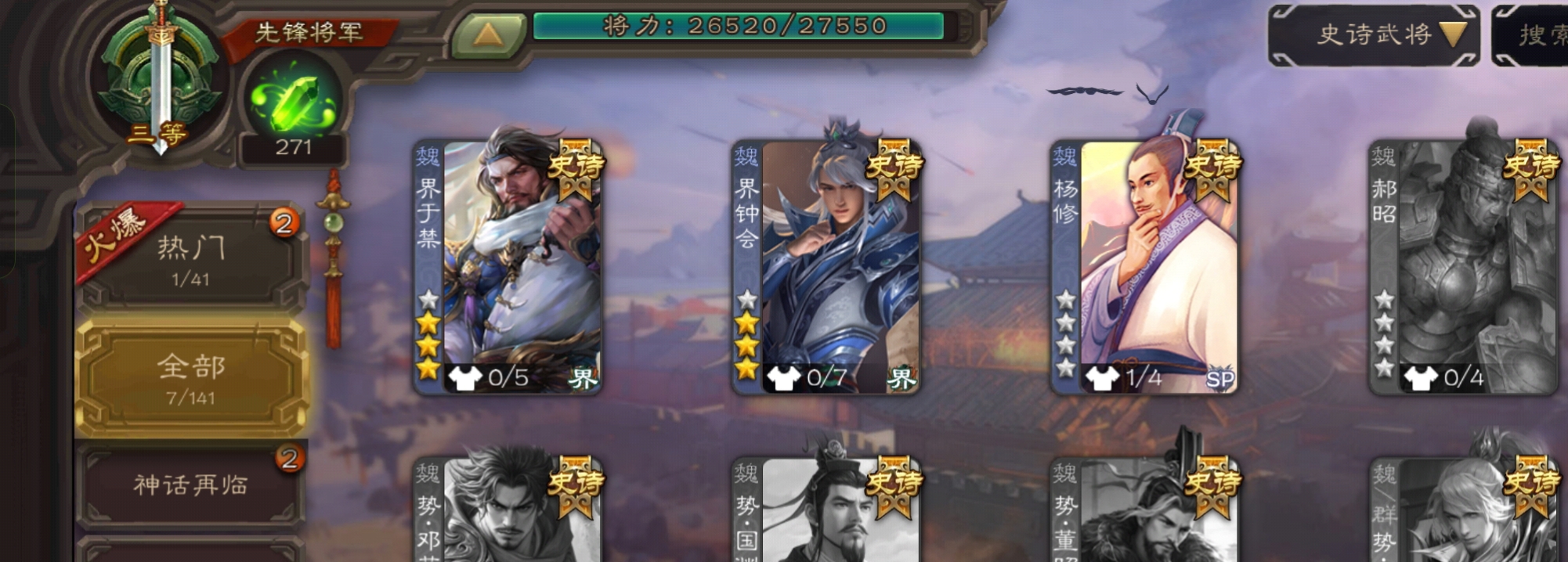 7史诗先锋,5万豆,sp甄姬界钟会神吕布界于禁谯周杨修左慈,甘夫人谋高顺张翼138将