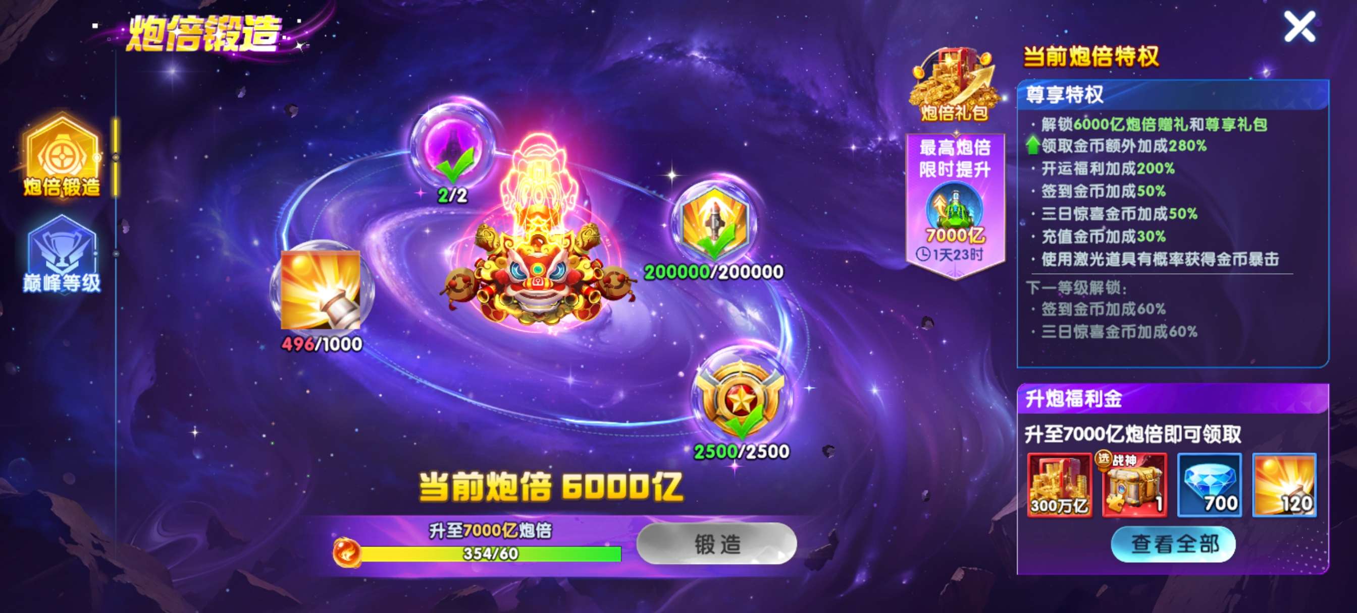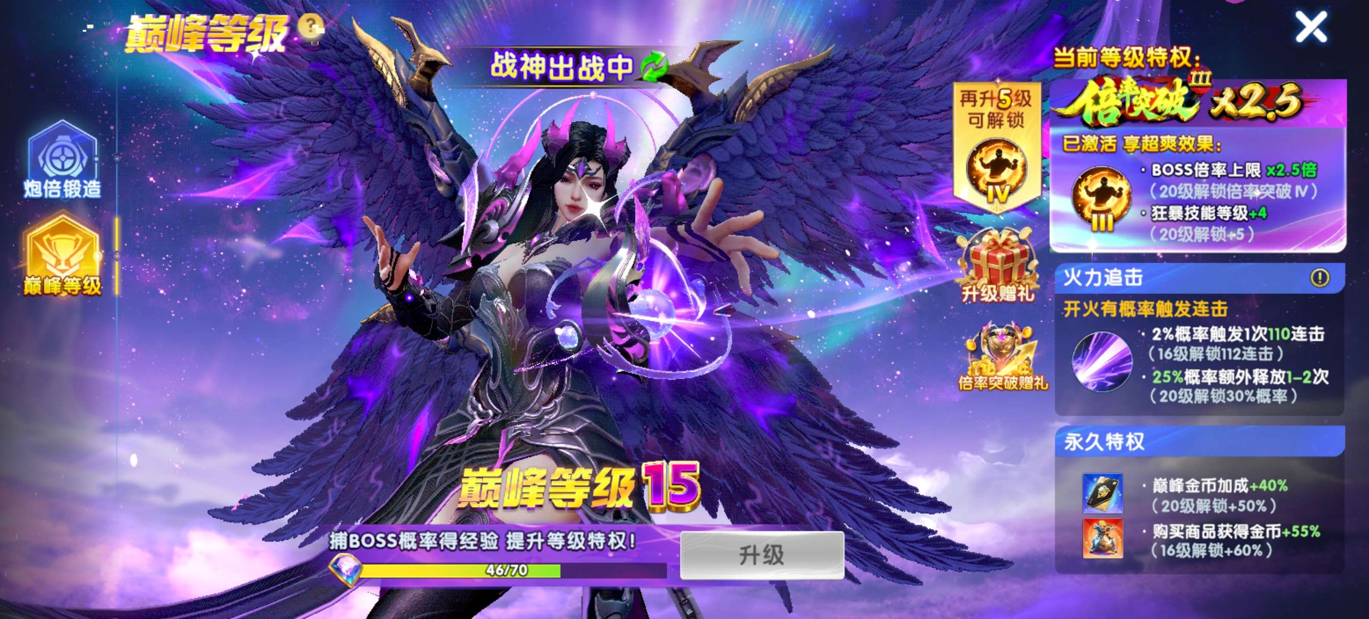 捕鱼大作战小米版本,原60亿炮,虚70忆炮,金币8.3兆,巅峰15级,破产回15,低价出售。