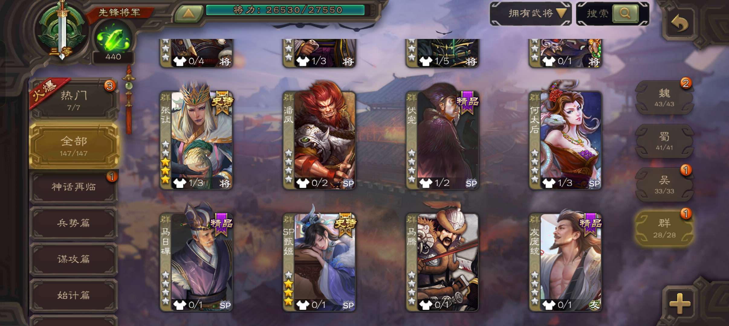 7史诗先锋,4.6万羽毛,sp甄姬神刘备金皮张让吴景嵇康杨修左慈,神吕蒙甘夫人关银屏谋高顺崔琰势陈到