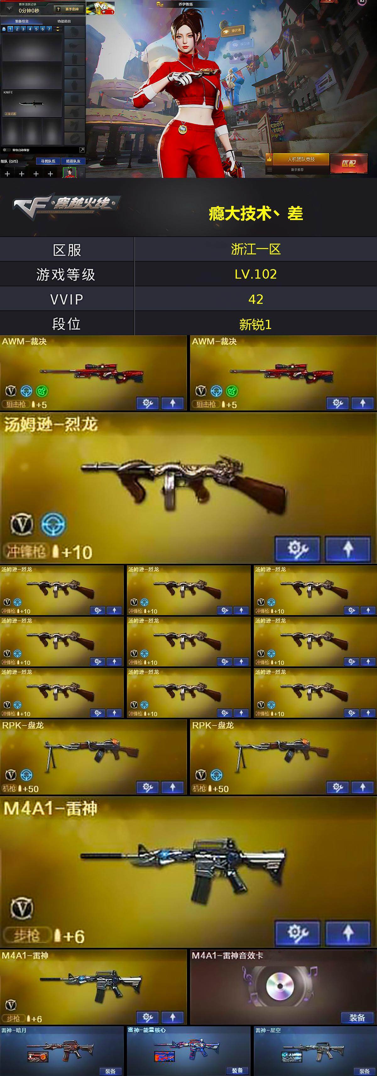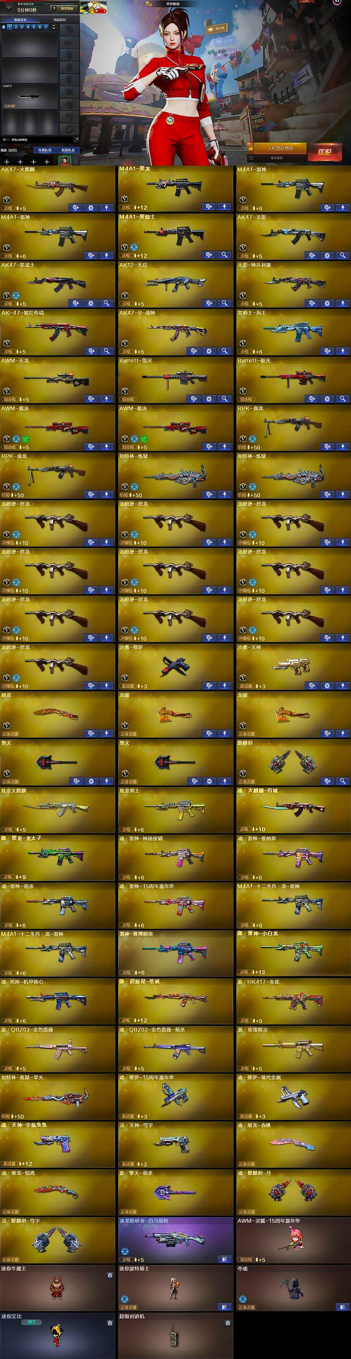 【热门武器】:M4A1-黑骑士,汤姆逊-烈龙*10,RPK-盘龙*2,加特林-炼狱*2,沙鹰-修罗