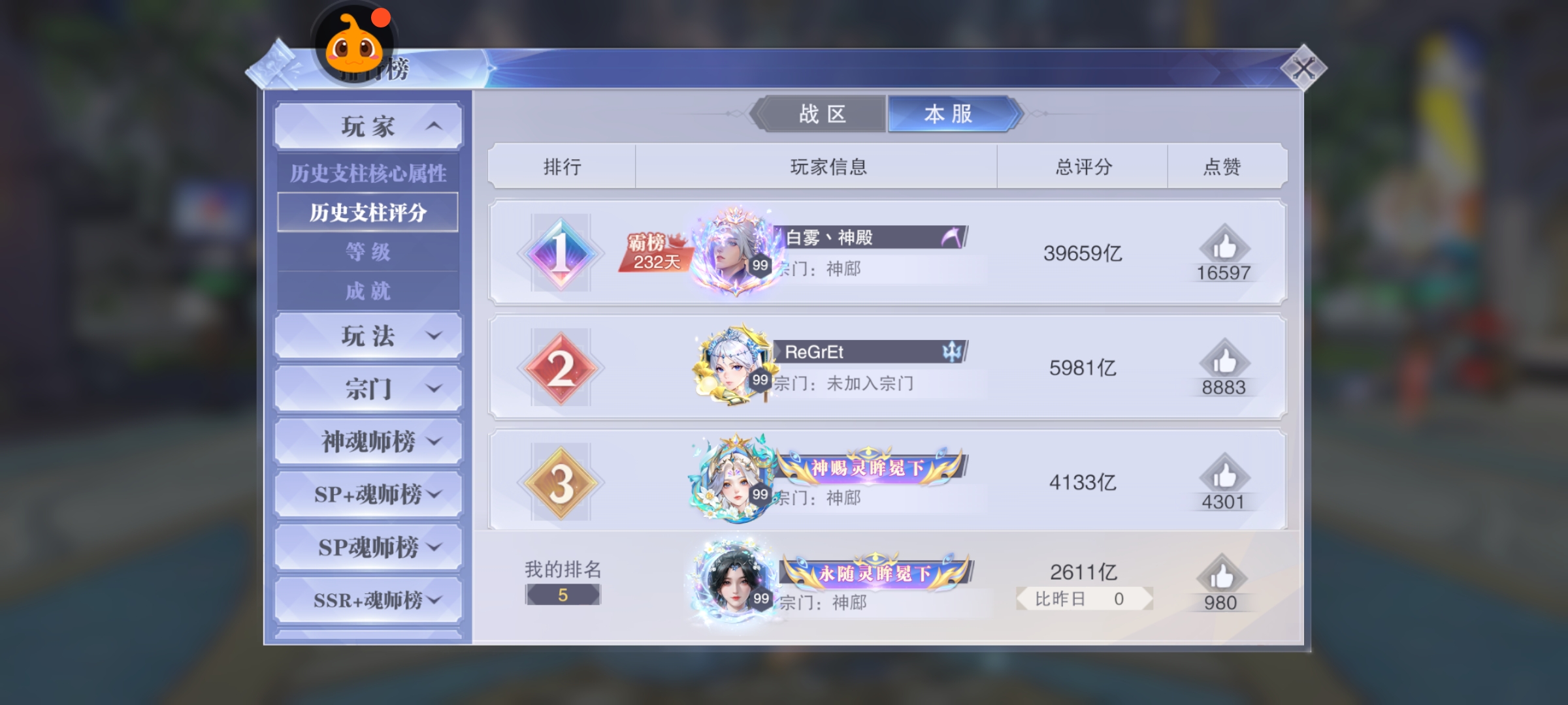 3450亿大供奉 榜五!红胸针!15神器4真神器霍雨浩3级融合技2sp魂灵!3sp战魂器