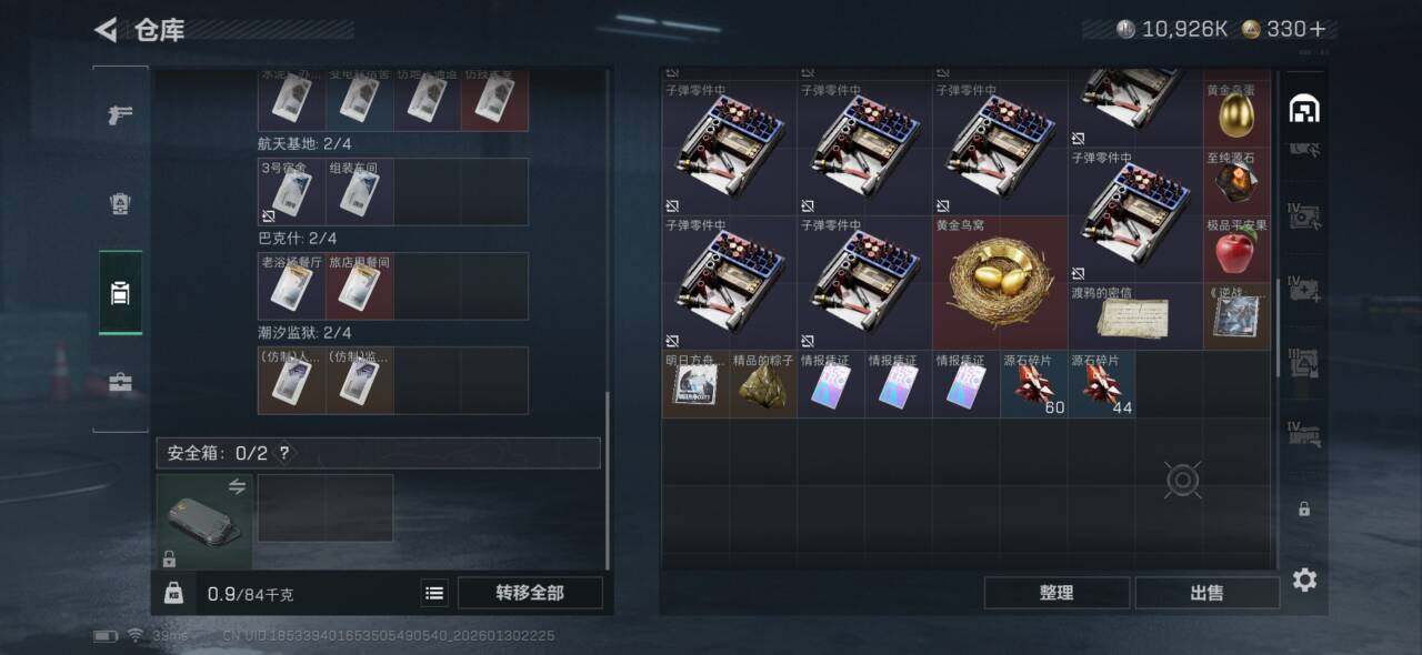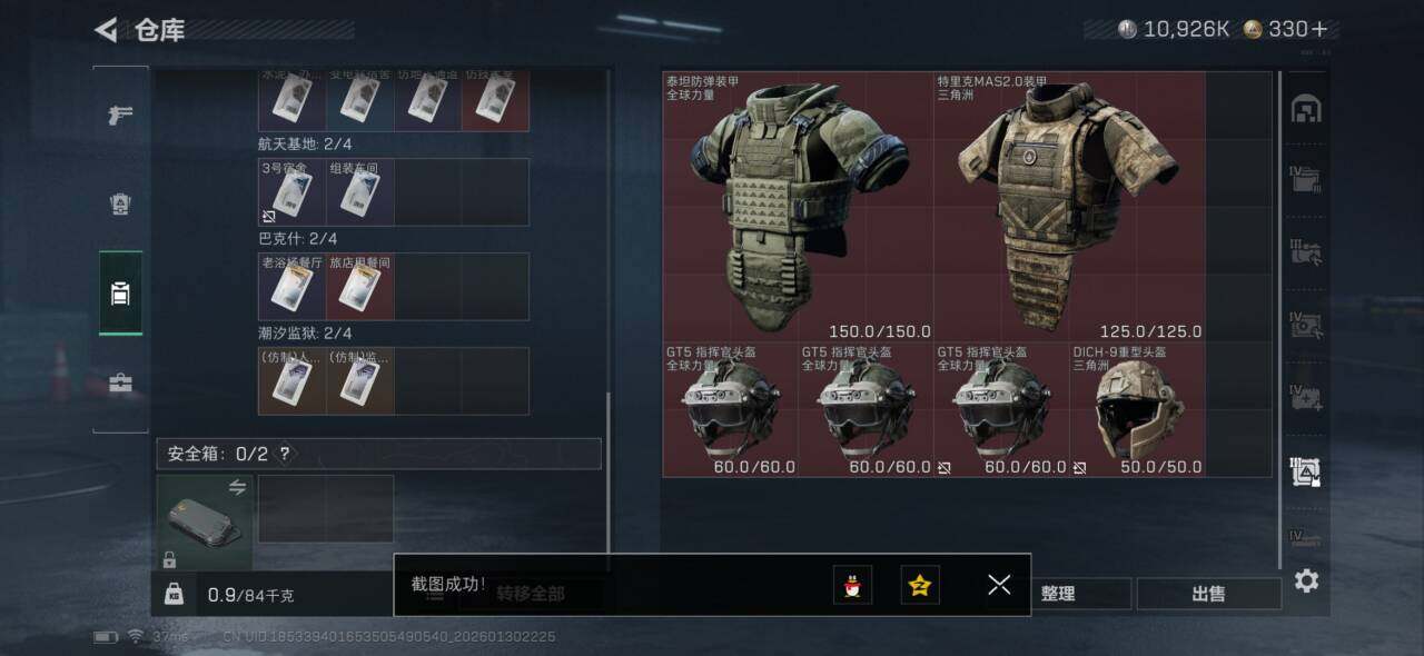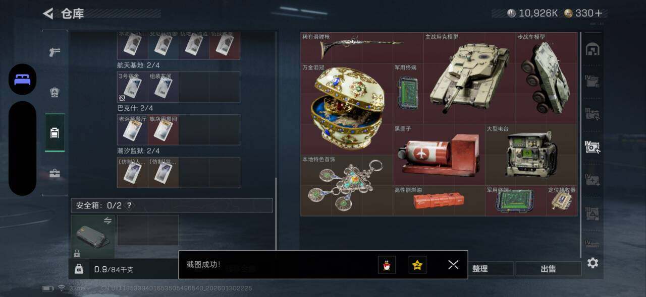 【SJZYH1332】总资产(M):82M/哈夫币(K):10926K/哈夫币(K):10926K/传说枪皮数:14/全面战场等级:9_段位:列兵/烽火地带等级:60_段位:铂金/蛊-能天使午夜邮差/骇爪-维什戴尔/红狼-电锯惊魂/近战-黑鹰/M4A1突击步枪-阿米娅/AK-12突击步枪-特斯拉线圈/SCAR-H战斗步枪-启航/G3战斗步枪-骑士/腾龙突击步枪-捞点薯条/KC17突击步枪-电锯惊魂/Vector冲锋枪-能天使-午夜邮差/UZI冲锋枪-特斯拉线圈/SMG-45冲锋枪-骑士/SR-3