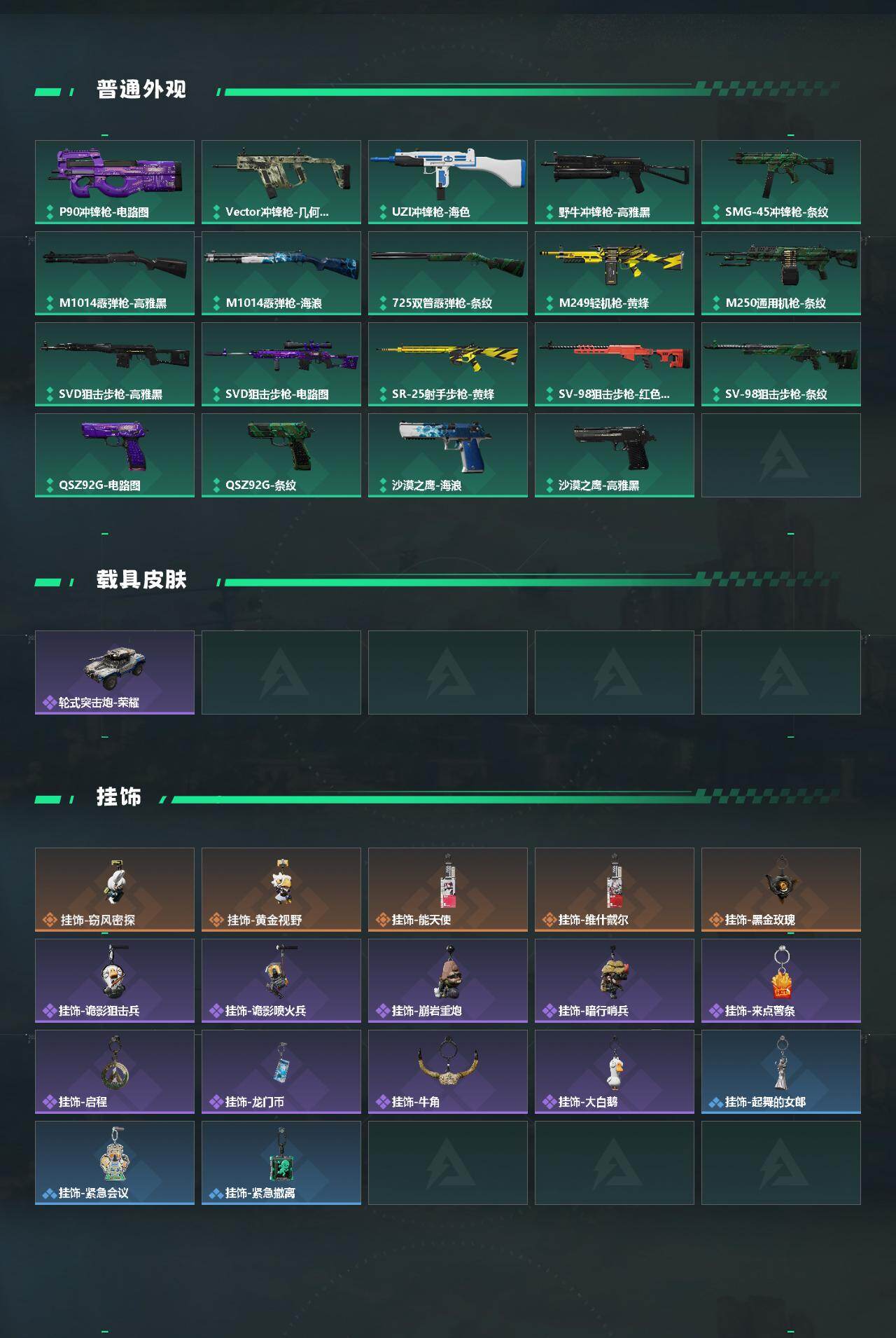 【SJZQH578】总资产(M):24M/哈夫币(K):431K/哈夫币(K):431K/传说枪皮数:15/全面战场等级:1_段位:无段位/烽火地带等级:60_段位:钻石/红狼-蚀金玫瑰/红狼-电锯惊魂/近战-黑鹰/M4A1突击步枪-蚀金玫瑰/M4A1突击步枪-阿米娅/ASh-12战斗步枪-鹅鸭杀/SCAR-H战斗步枪-启航/G3战斗步枪-骑士/CAR-15突击步枪-阿米娅/腾龙突击步枪-捞点薯条/KC17突击步枪-电锯惊魂/Vector冲锋枪-能天使-午夜邮差/勇士冲锋枪-能天使-午夜邮差/Q