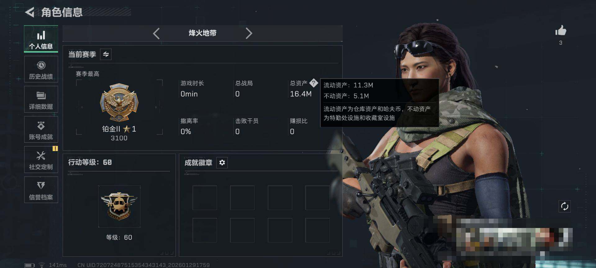 【SJ7372】总资产(M):16M/哈夫币(K):3466K/哈夫币(K):3466K/传说枪皮数:6/全面战场等级:24_段位:上等兵/烽火地带等级:60_段位:铂金/骇爪-维什戴尔/红狼-电锯惊魂/露娜-金牌射手/近战-黑鹰/SG552突击步枪-运动员/SCAR-H战斗步枪-启航/G3战斗步枪-骑士/CAR-15突击步枪-阿米娅/KC17突击步枪-电锯惊魂/R93狙击步枪-维什戴尔/AUG突击步枪-天命/K416突击步枪-冬日风情/AUG突击步枪-蝮蛇/M7战斗步枪-百步穿杨/G3战斗步枪