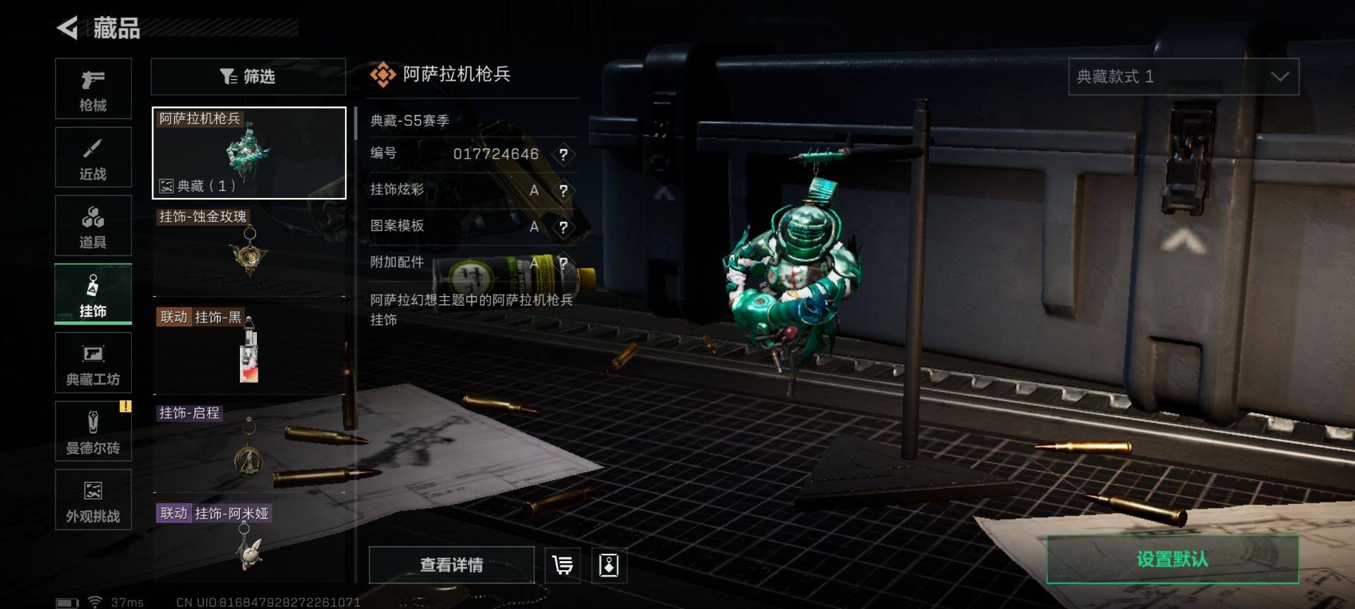 【SJ7368】总资产(M):8M/哈夫币(K):186K/哈夫币(K):186K/传说枪皮数:12/全面战场等级:14_段位:列兵/烽火地带等级:60_段位:铂金/红狼-电锯惊魂/近战-黑鹰/M4A1突击步枪-阿米娅/AK-12突击步枪-特斯拉线圈/SCAR-H战斗步枪-启航/CAR-15突击步枪-阿米娅/腾龙突击步枪-捞点薯条/KC17突击步枪-电锯惊魂/UZI冲锋枪-特斯拉线圈/SR-3M紧凑突击步枪-特斯拉线圈/勇士冲锋枪-能天使-午夜邮差/M250通用机枪-几何解构/AWM狙击步枪-捞