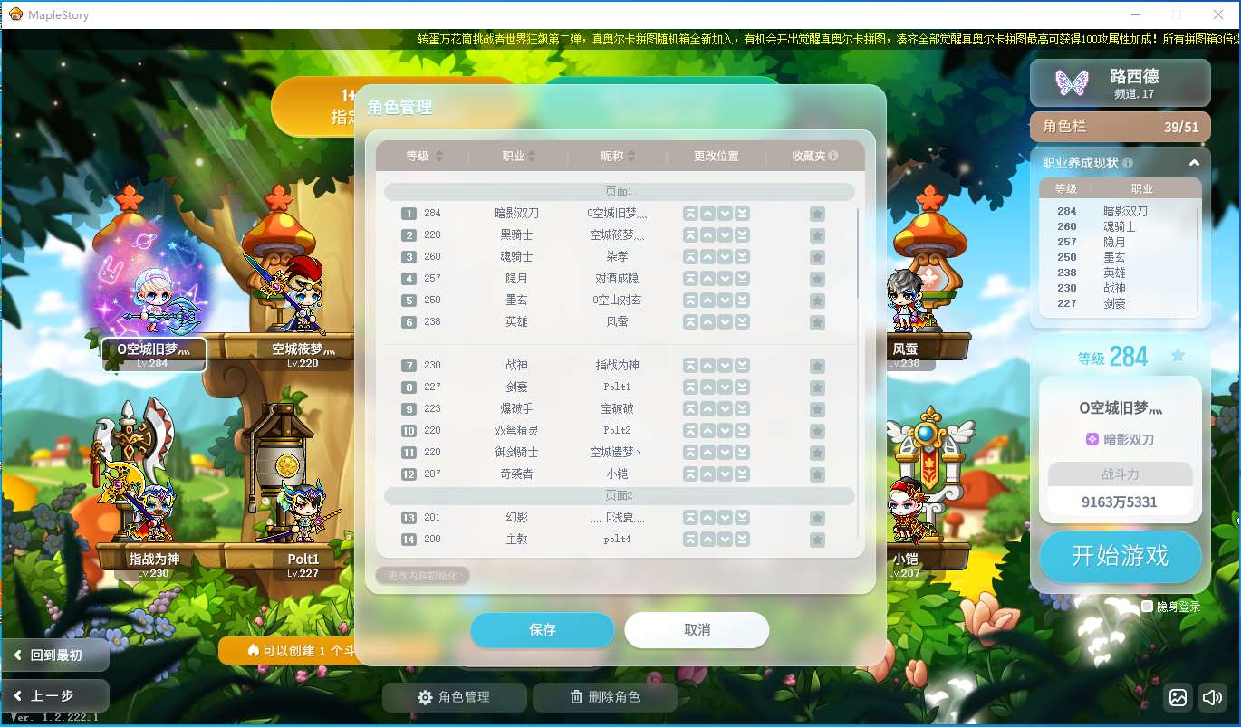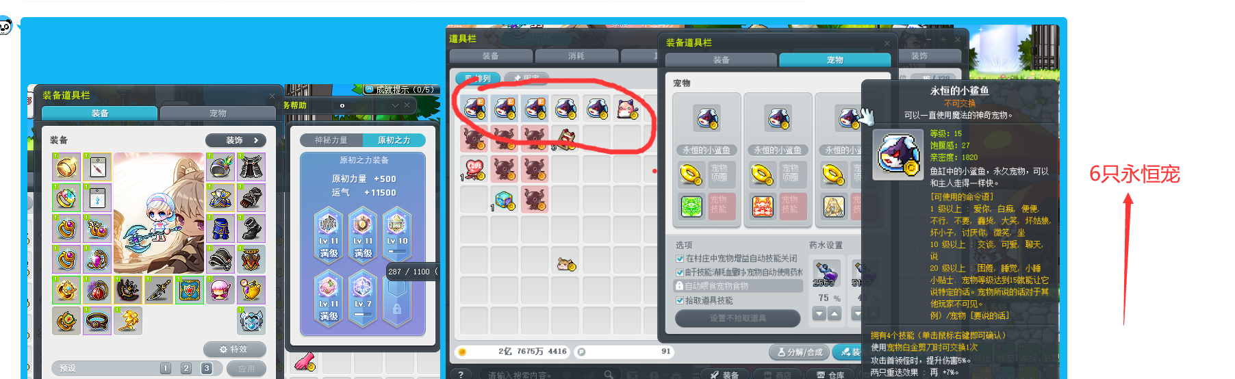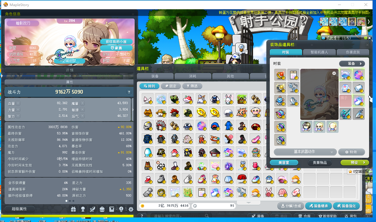 暗影双刀近1亿战力8000联盟6个永恒宠花瓶号时装无数22星创世武器51角色位12个空位具体看图