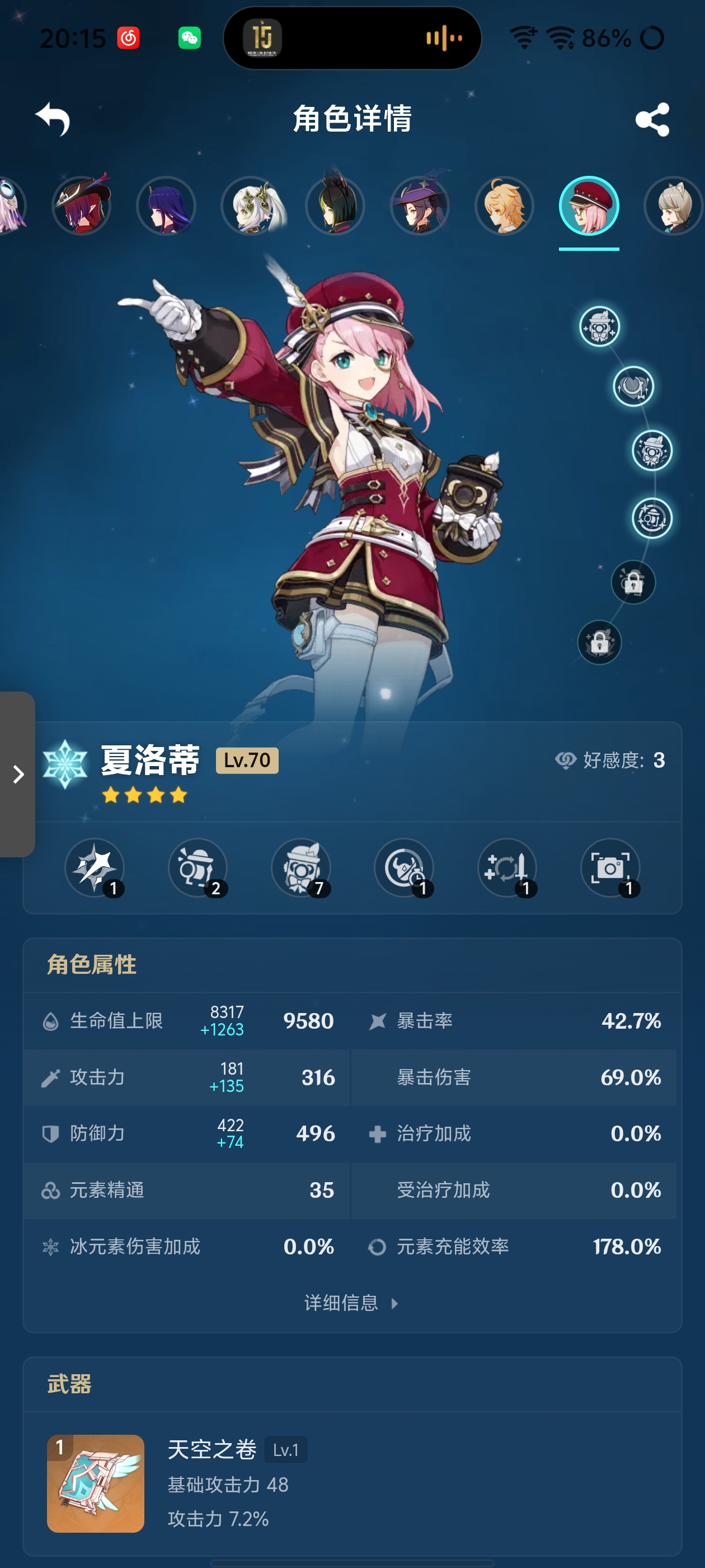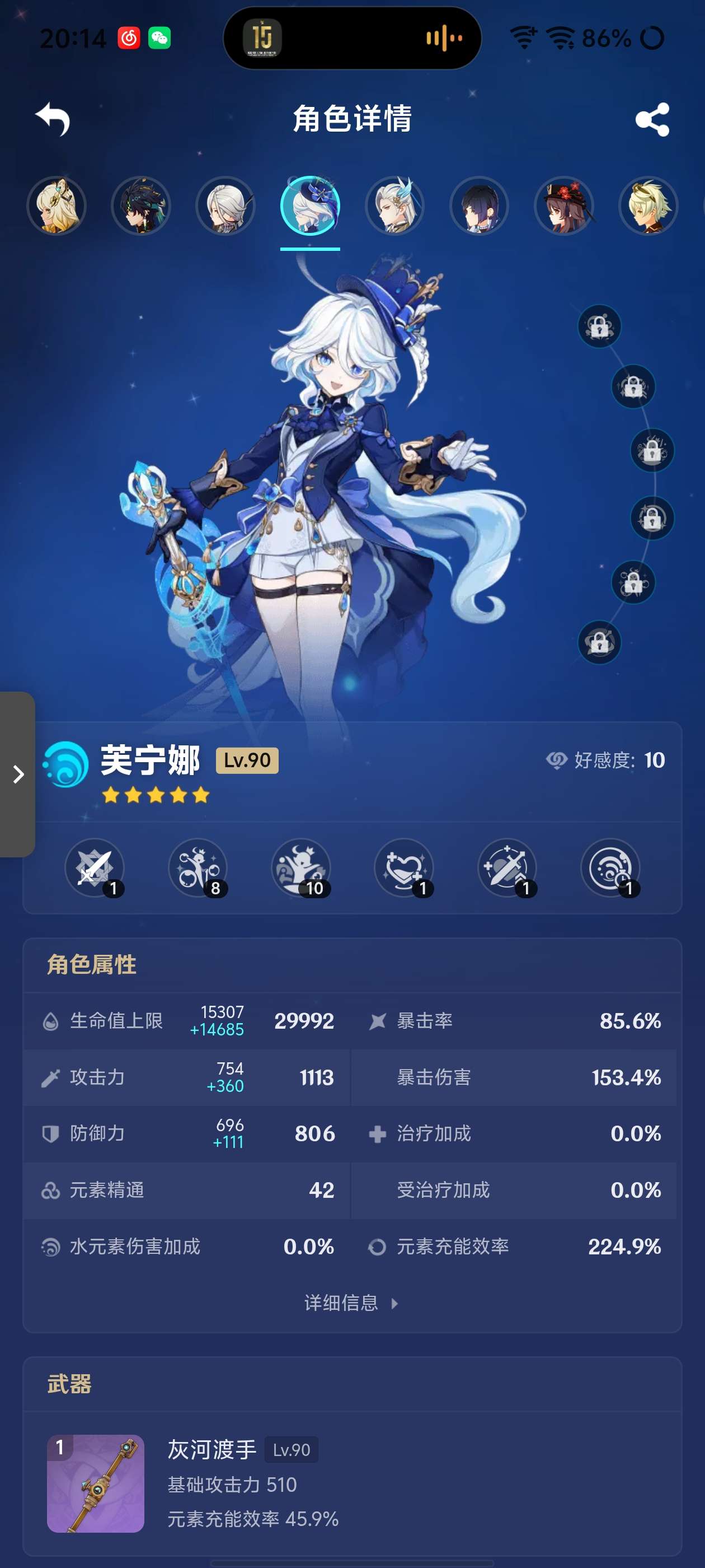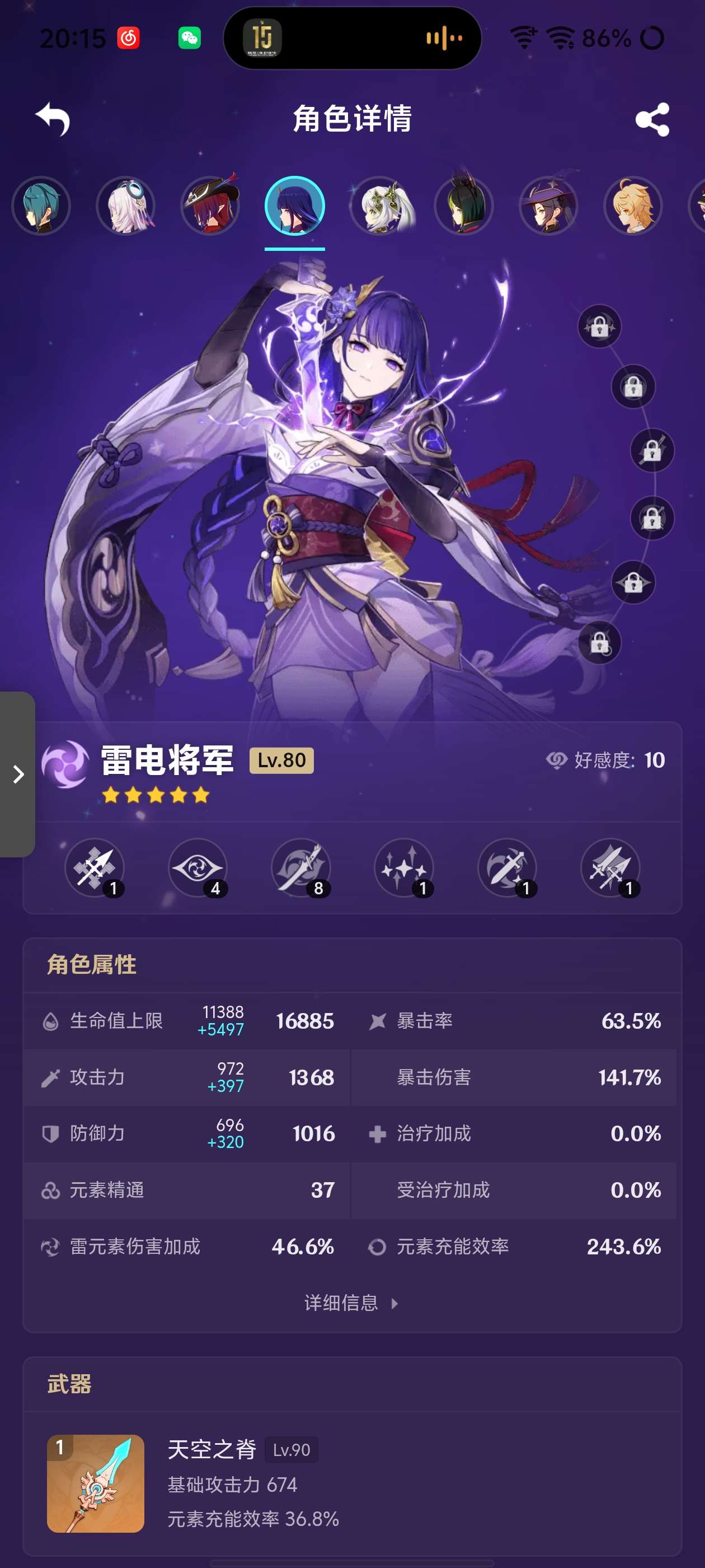 原神成品号,58级,练度总体可以,35金,五星武器4把,在角色截图里可以看到,因为游戏已经删了