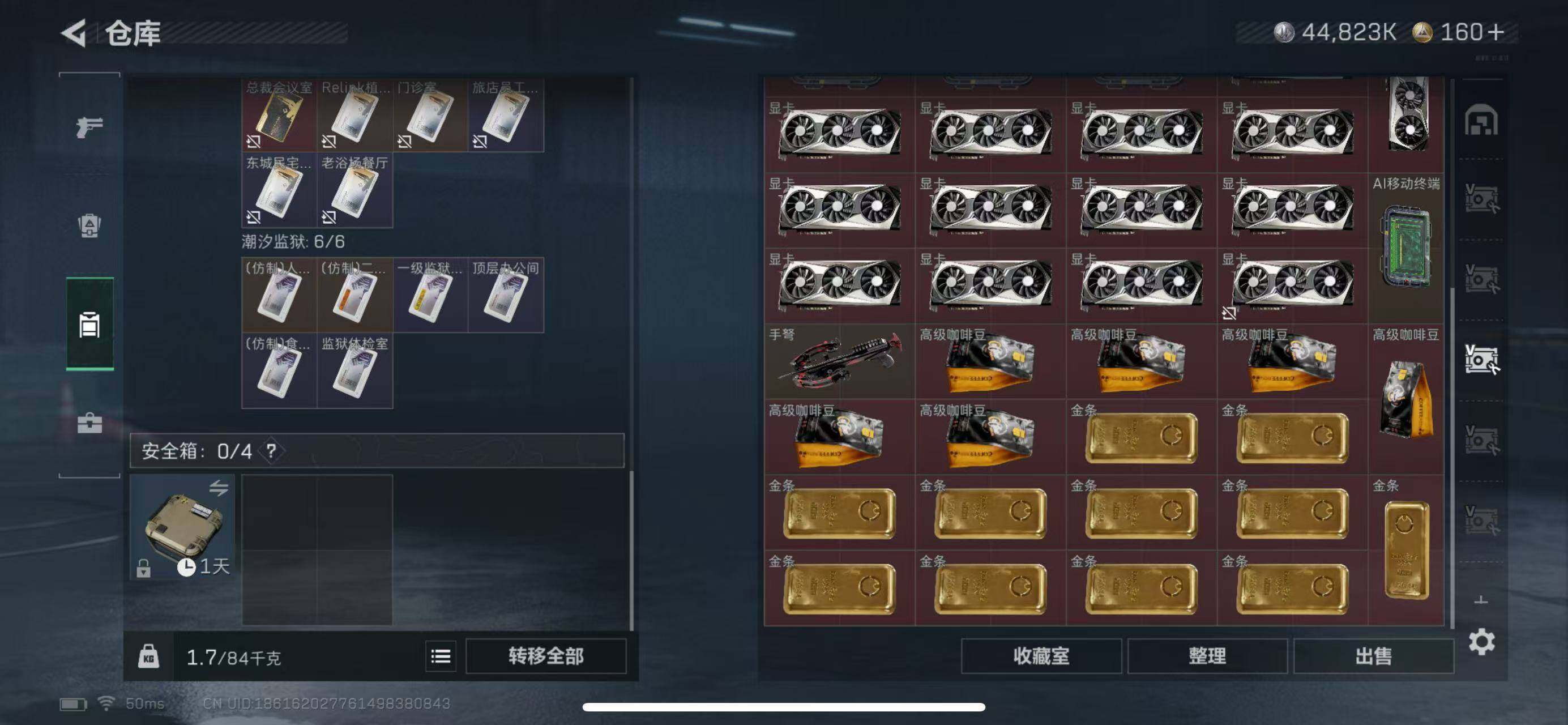 【SJ1002】无封禁 行动等级:60 总资产:295.3M 哈夫币:4481.3W 安全箱:进阶安全箱4(2x2) 三角币:0 三角券:160