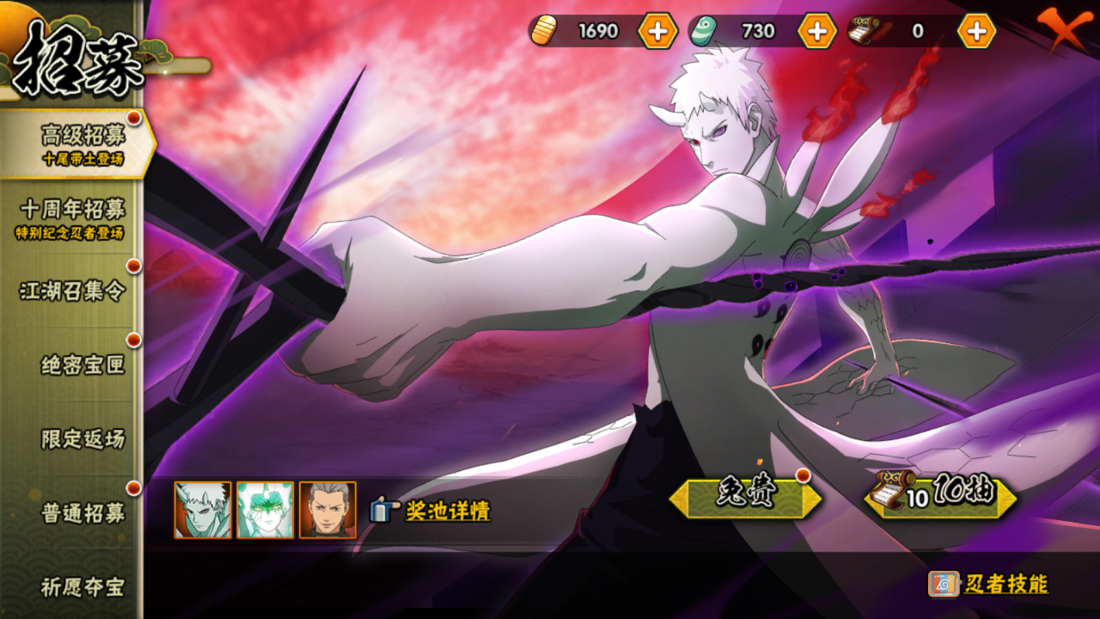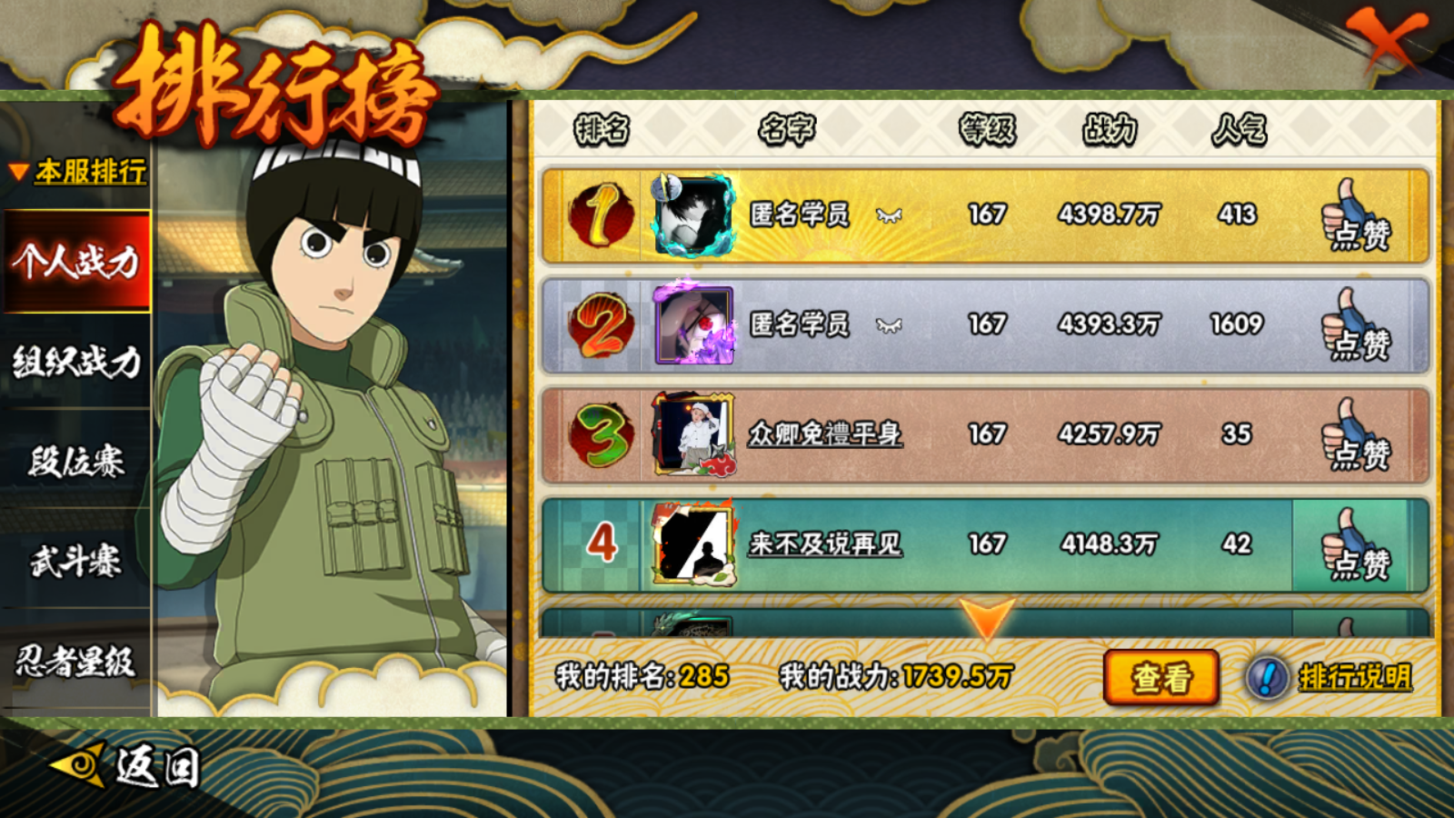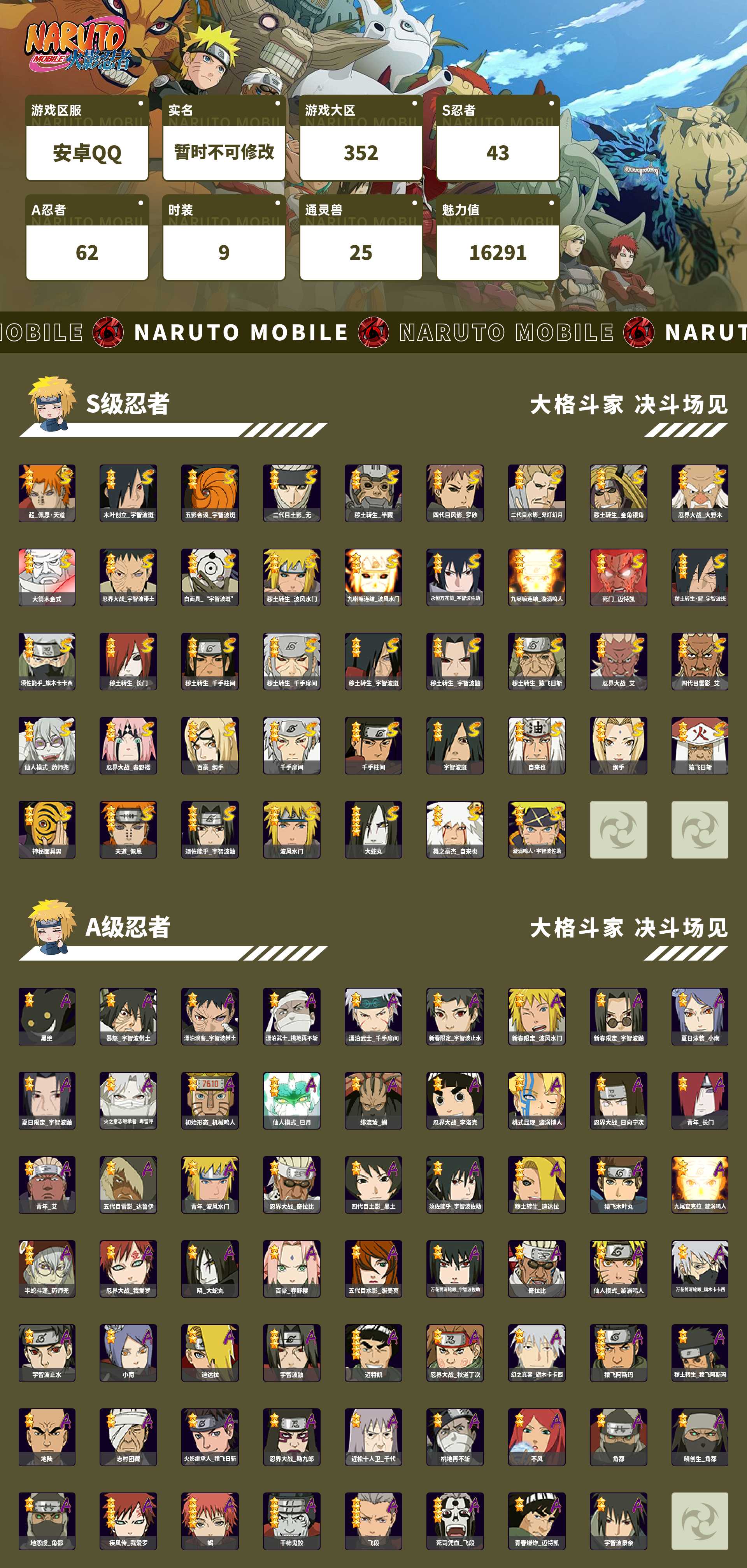 1739W战力超哥创斑/43S+298直购A暴怒带土、10个198直购A(带黑绝)/62A+3个98直购通灵