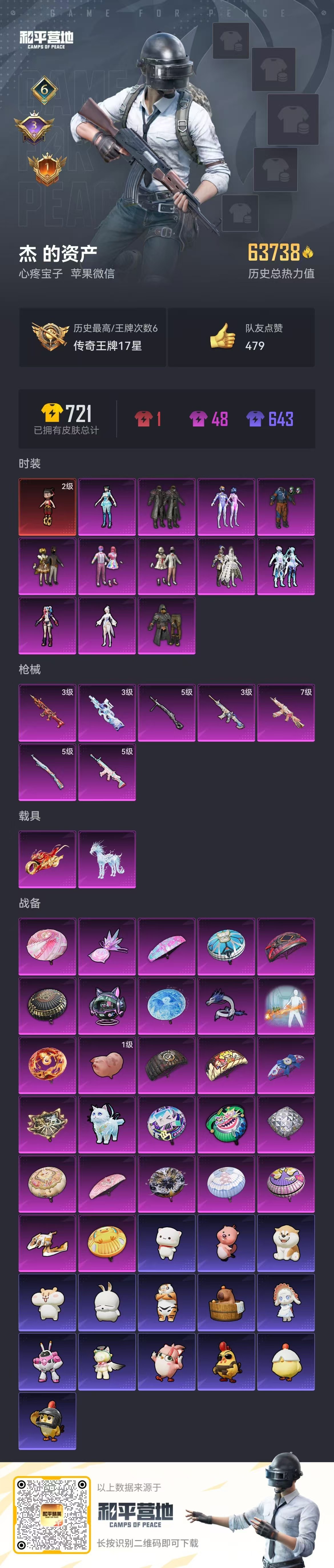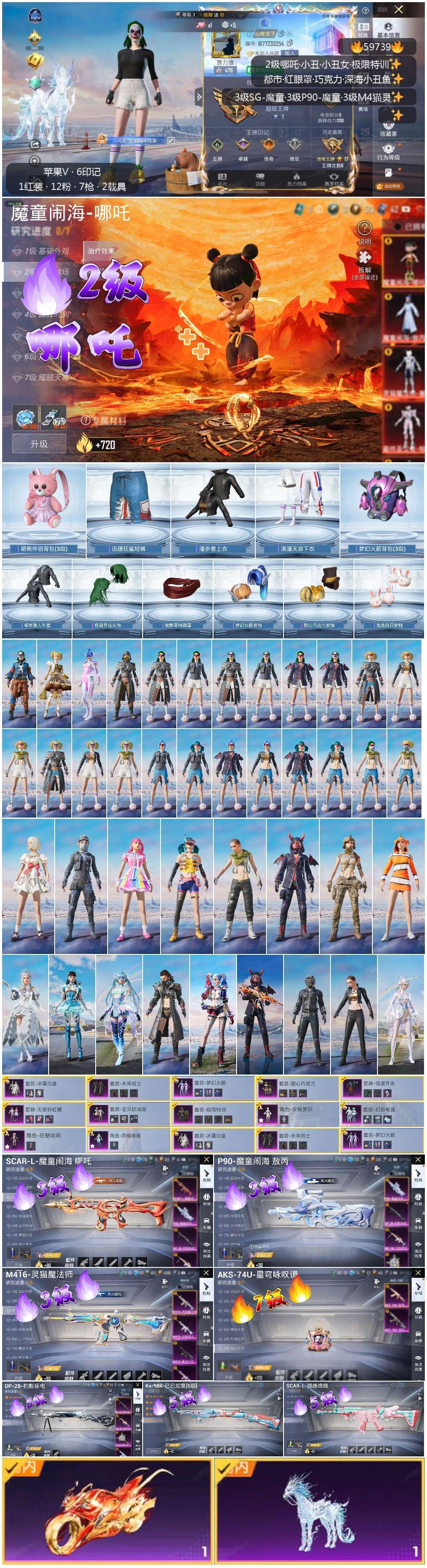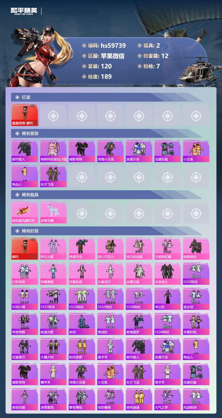 hs59739 苹果微-6王牌印记-1红装-12粉装-7特效枪-2载具-63738热力值-120套