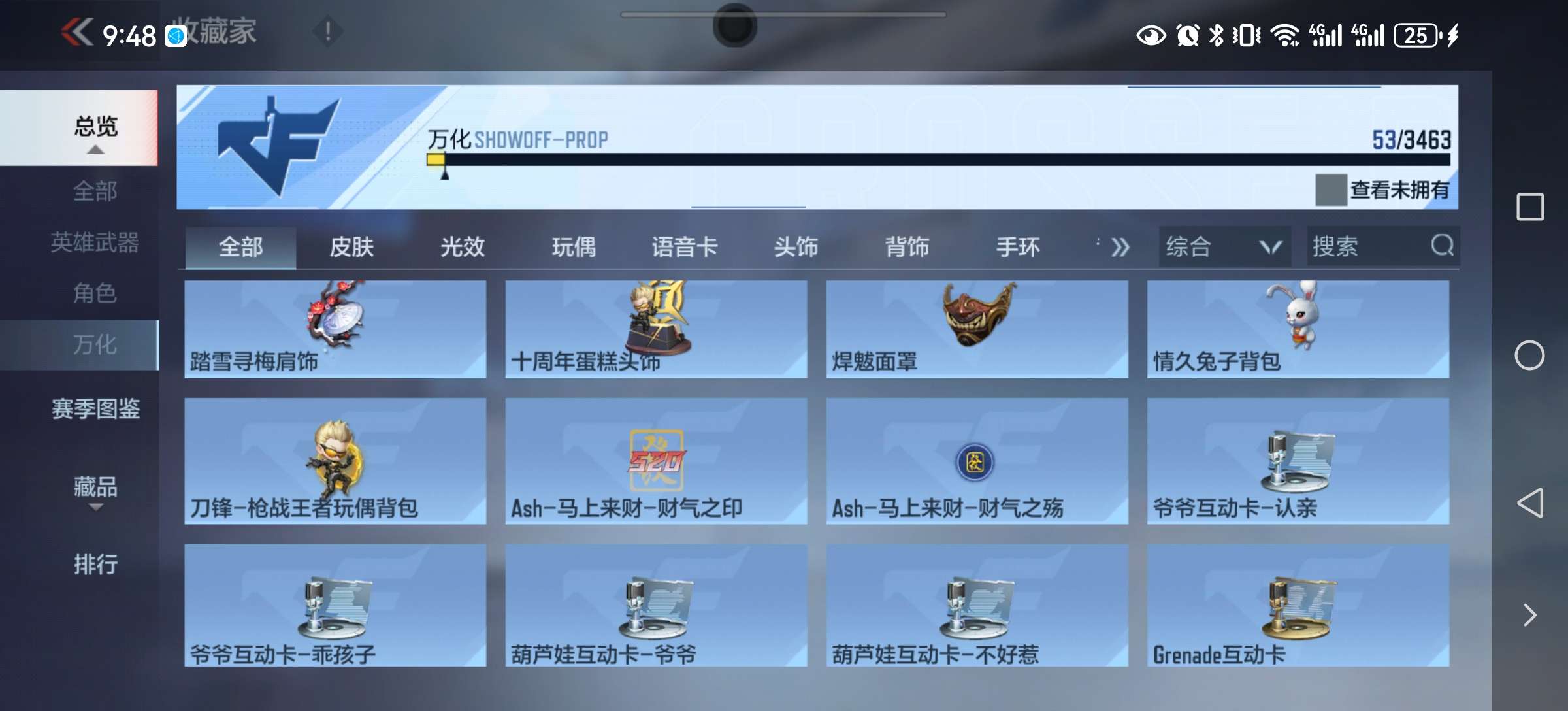 12.5万钻石53把英雄武51钥匙赏金币205等级206大量挑战卡碎片战绩比较好