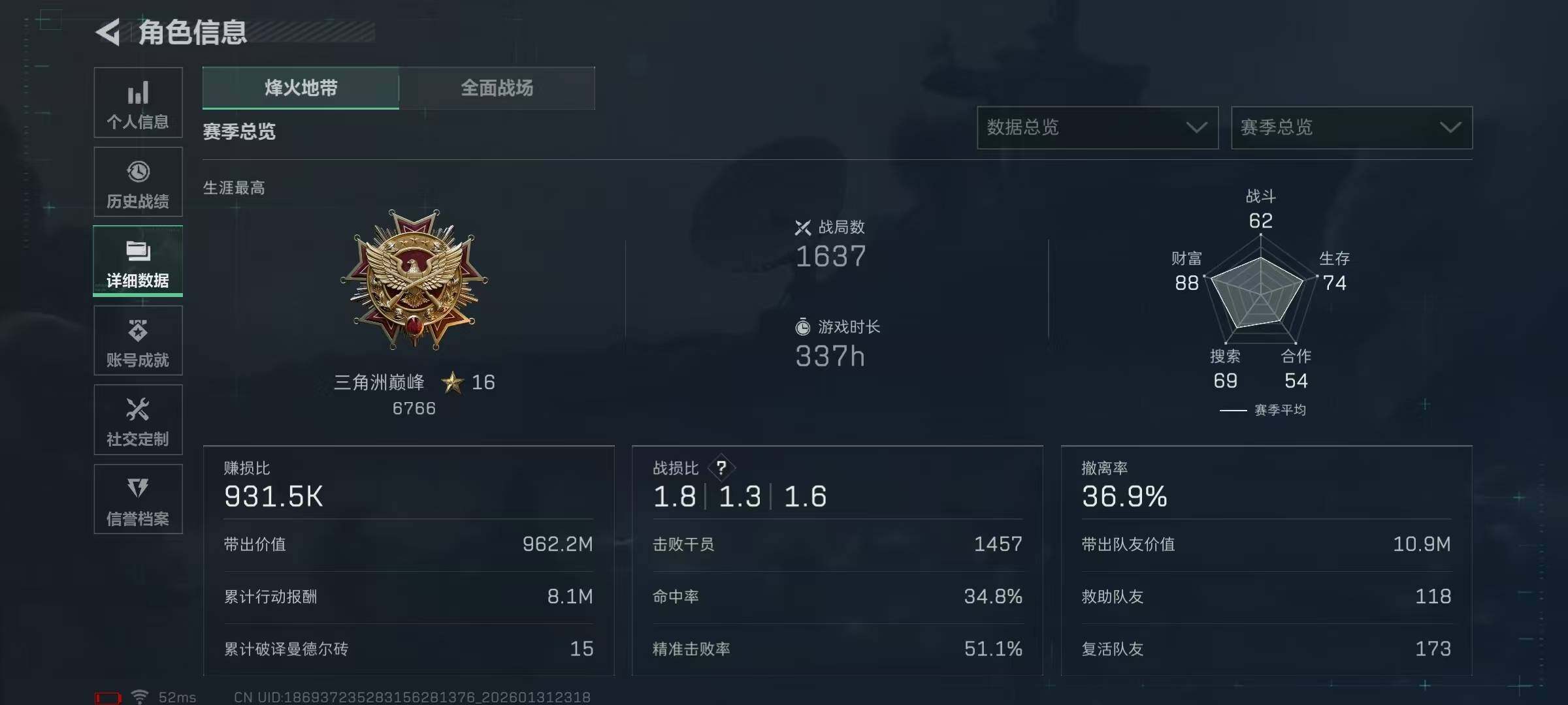 【SJ1010】【怜悯有二次带55发AW】60级/总资197M/流资167M/刀皮(怜悯)红狼(蚀金玫瑰+电锯惊魂)蜂医(送葬人无题密令)露娜(黑天际线)/8级仓库6级体力6级负重1级潜水/55发AW子弹+41发其他红弹