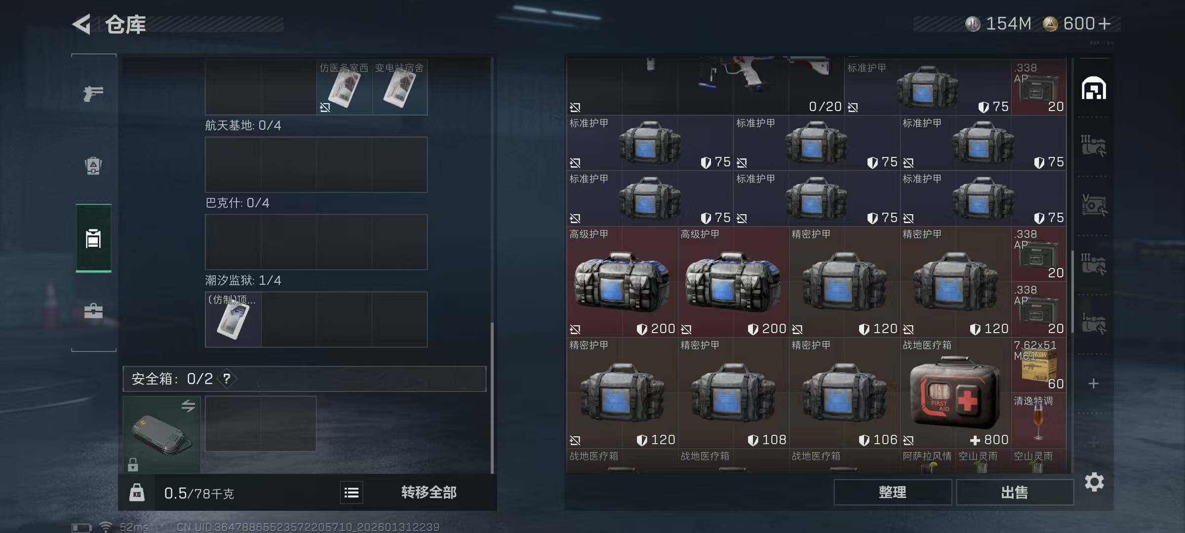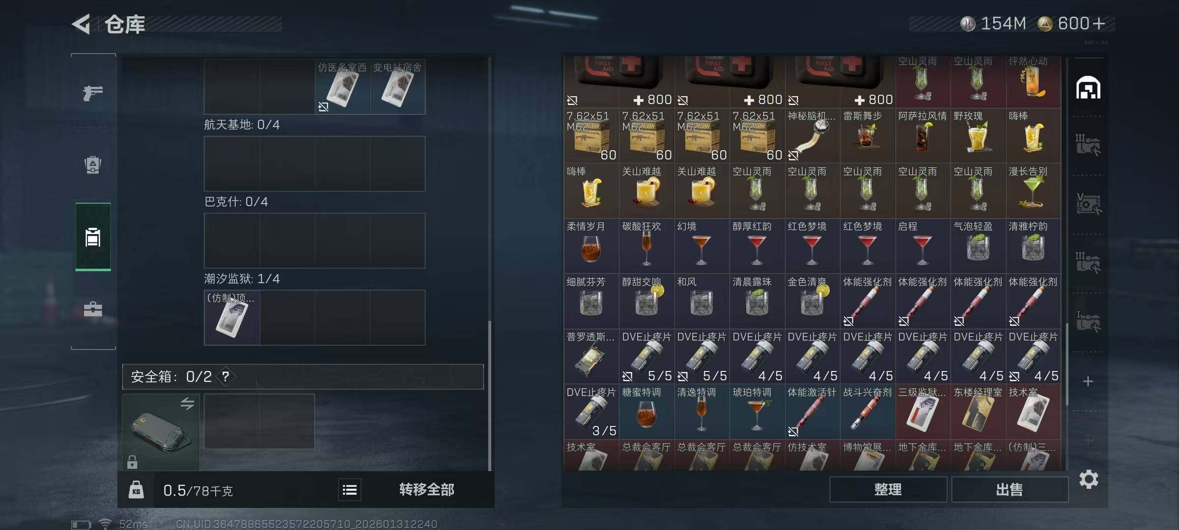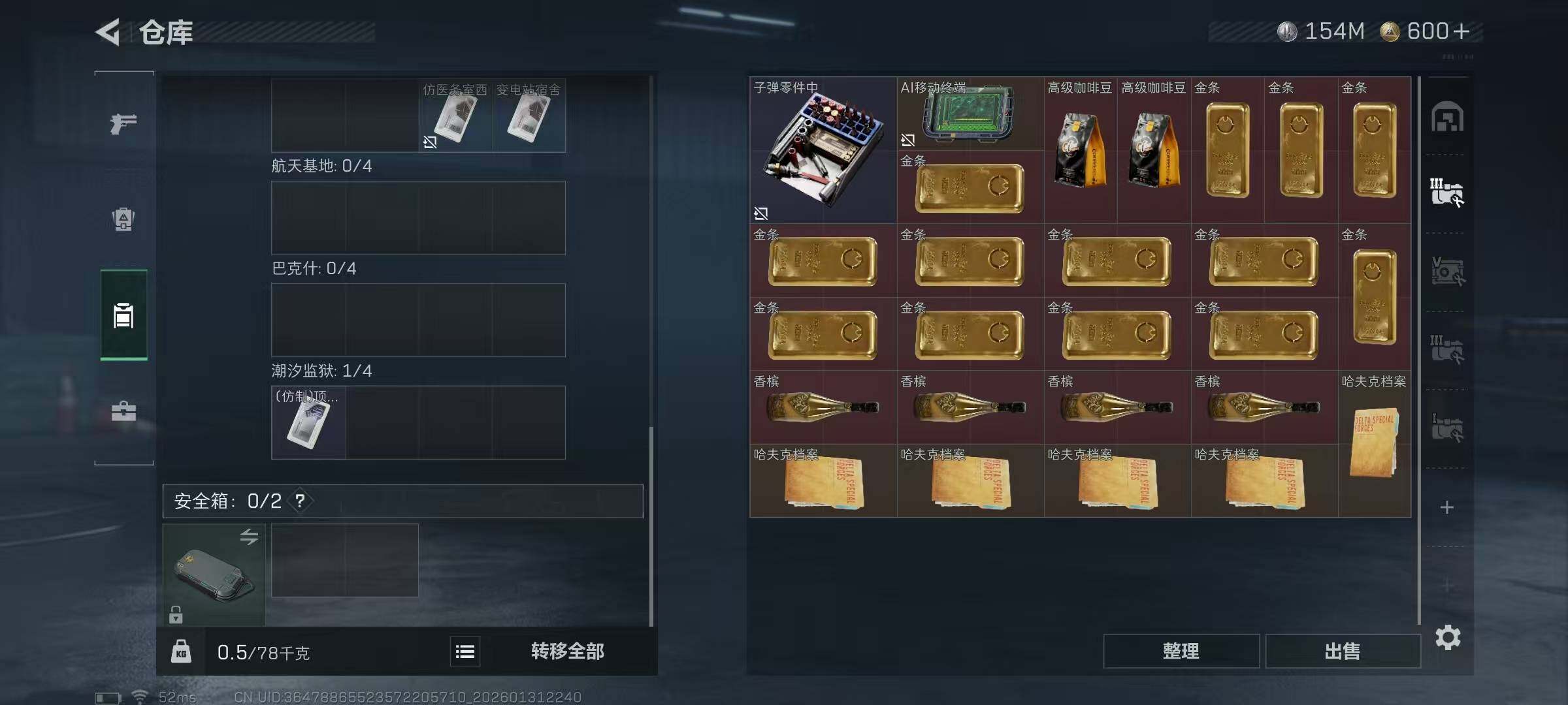 【SJ1003】【无封禁有二次 纯币154M60发AW子弹】60级/总资255M/流资241M/600点卷/红狼(蚀金玫瑰+电锯惊魂)骇爪(维什戴尔)/7级仓库6级体力4级负重1级潜水