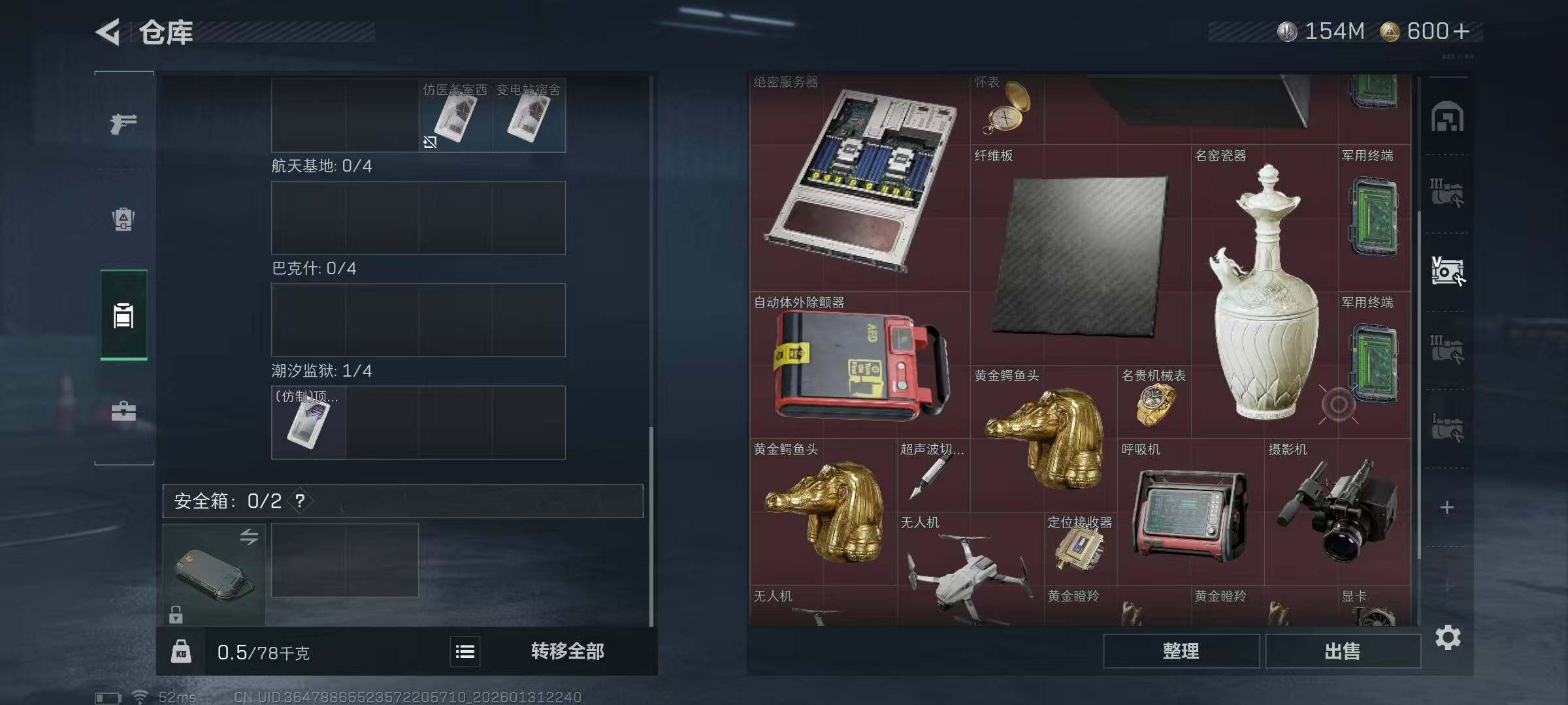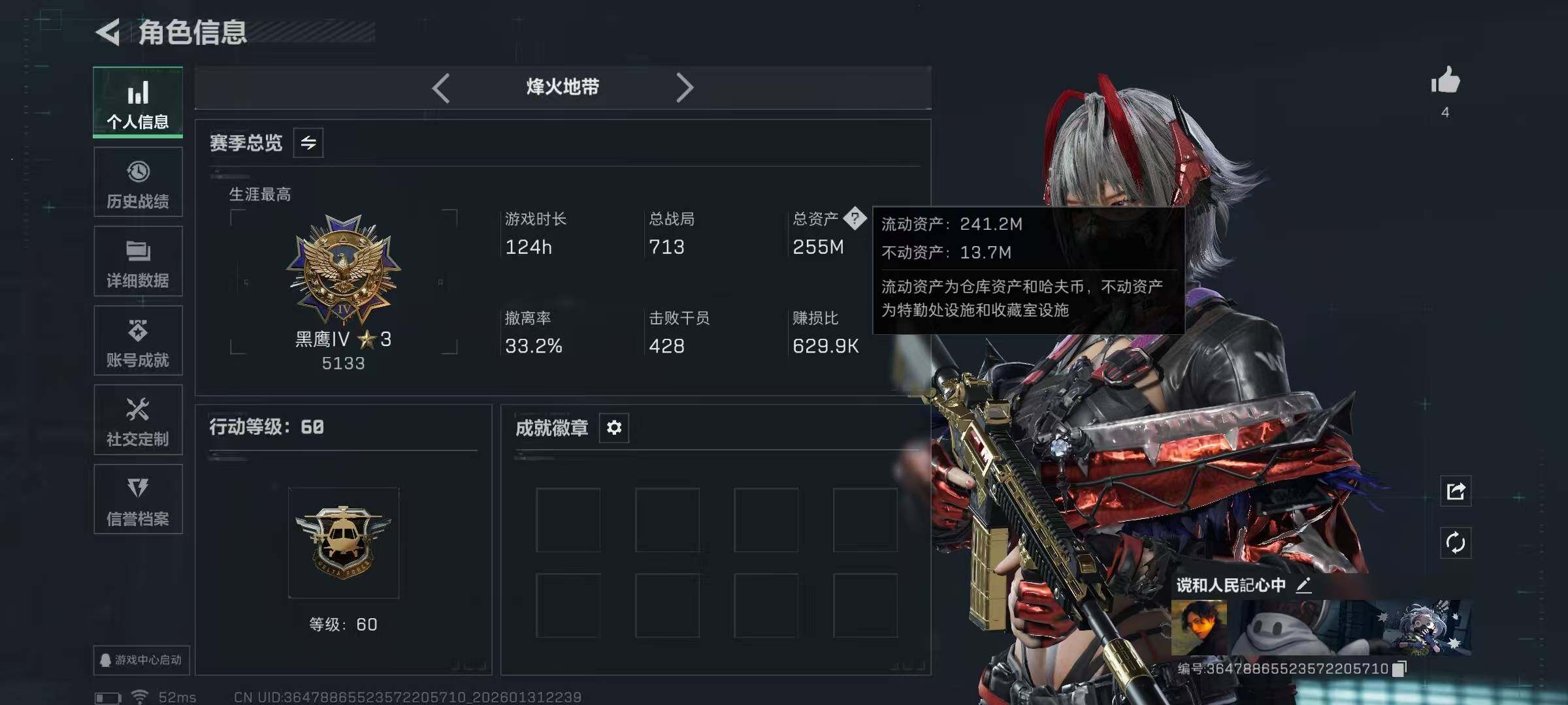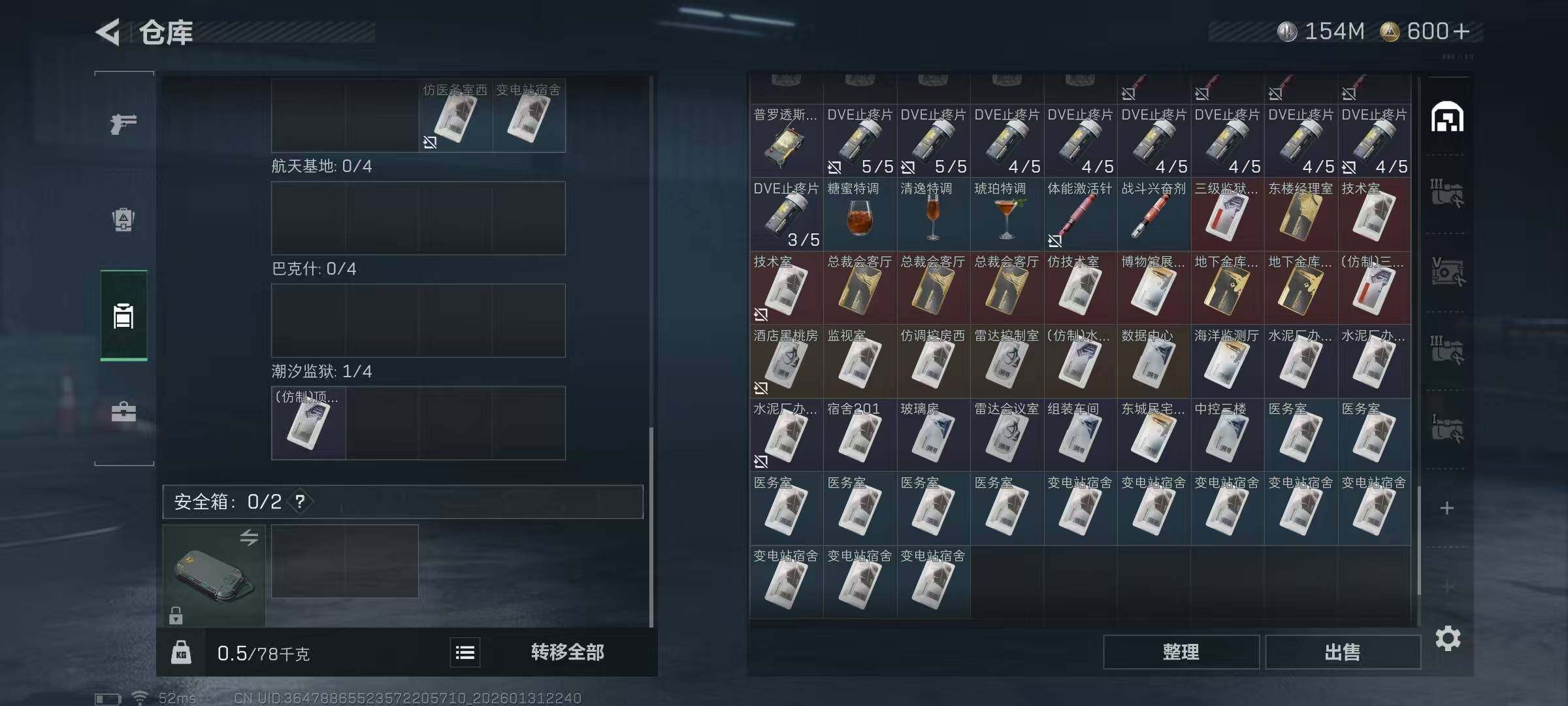【SJ1003】【无封禁有二次 纯币154M60发AW子弹】60级/总资255M/流资241M/600点卷/红狼(蚀金玫瑰+电锯惊魂)骇爪(维什戴尔)/7级仓库6级体力4级负重1级潜水