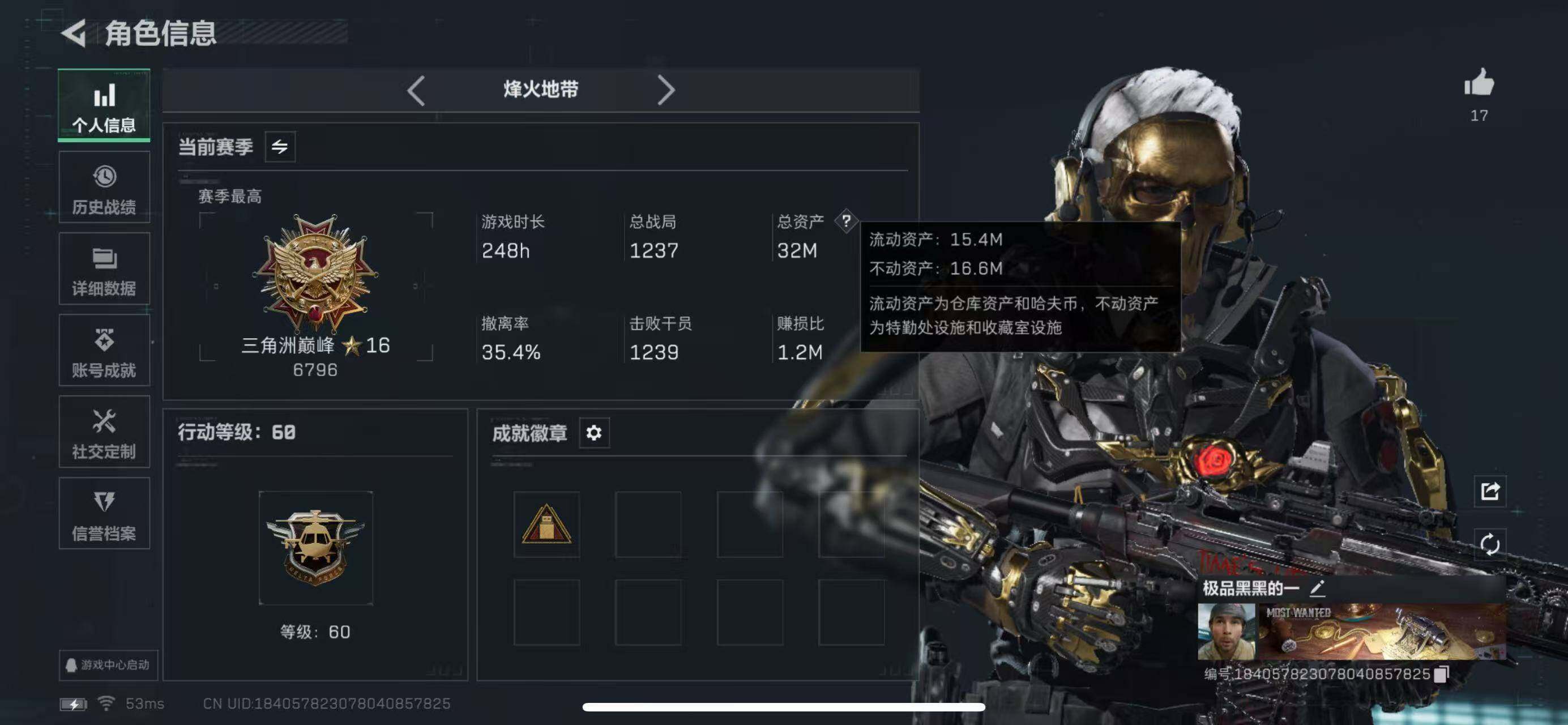 行动等级:60 总资产:31.0M 哈夫币:250.6W