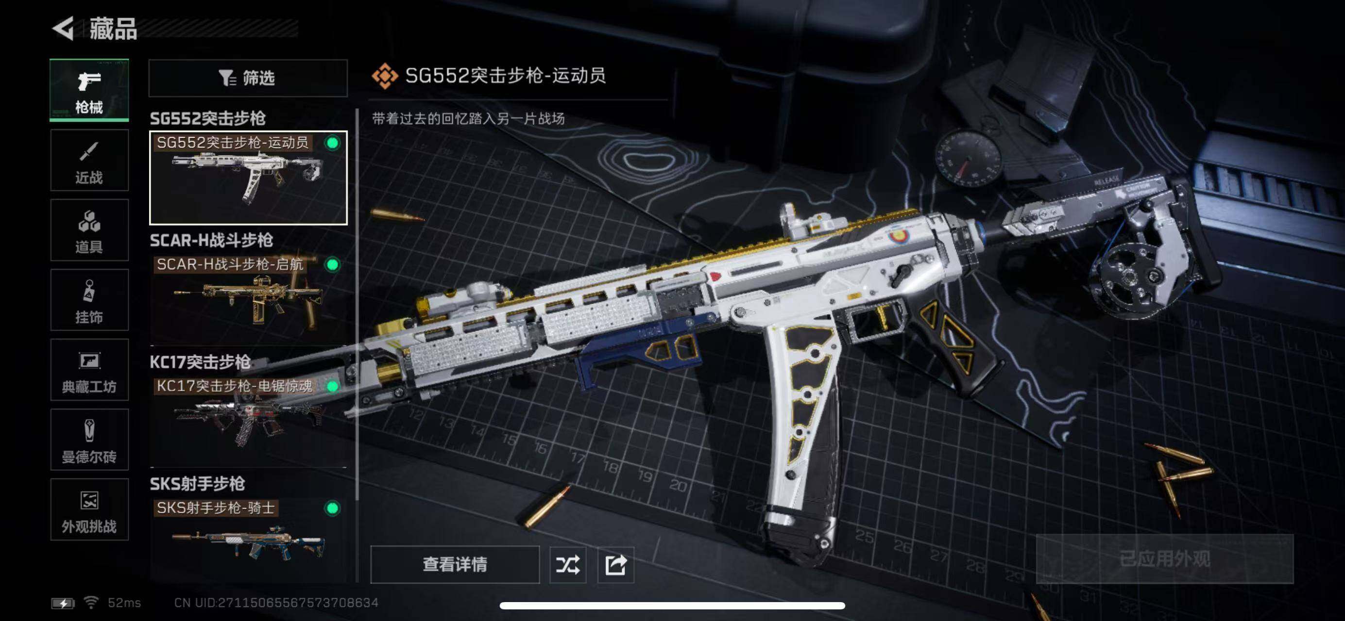 【传说外观】:SG552突击步枪-运动员,SCAR-H战斗步枪-启航,KC17突击步枪-电锯惊魂,R93狙击步枪-维什戴尔