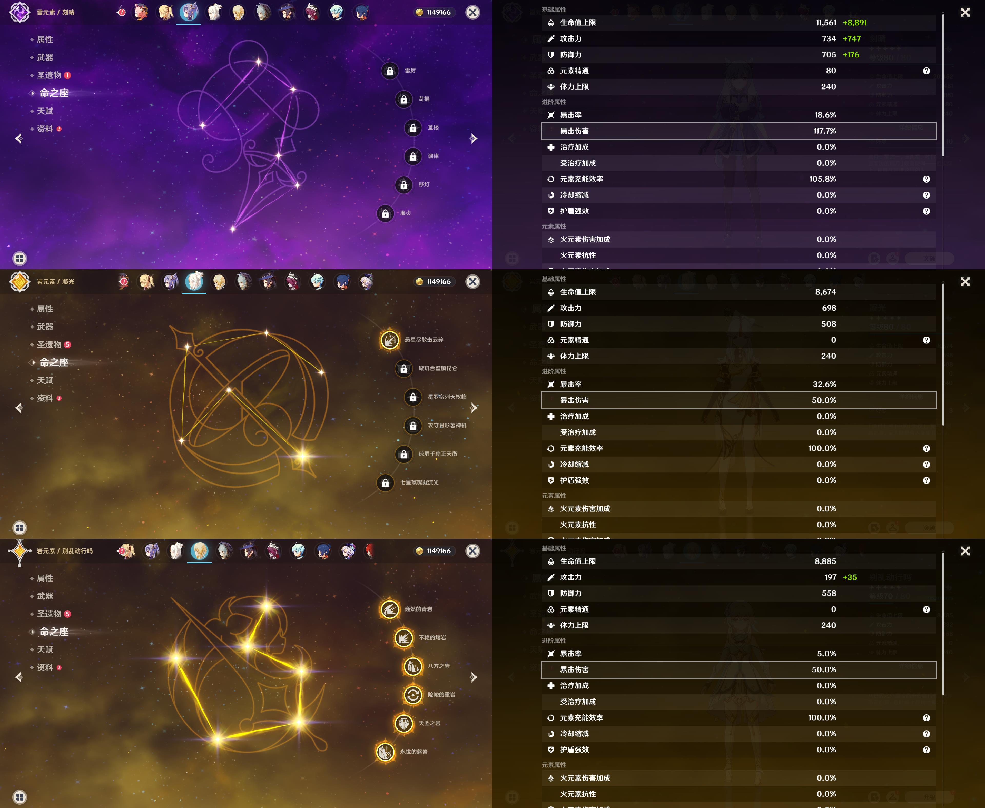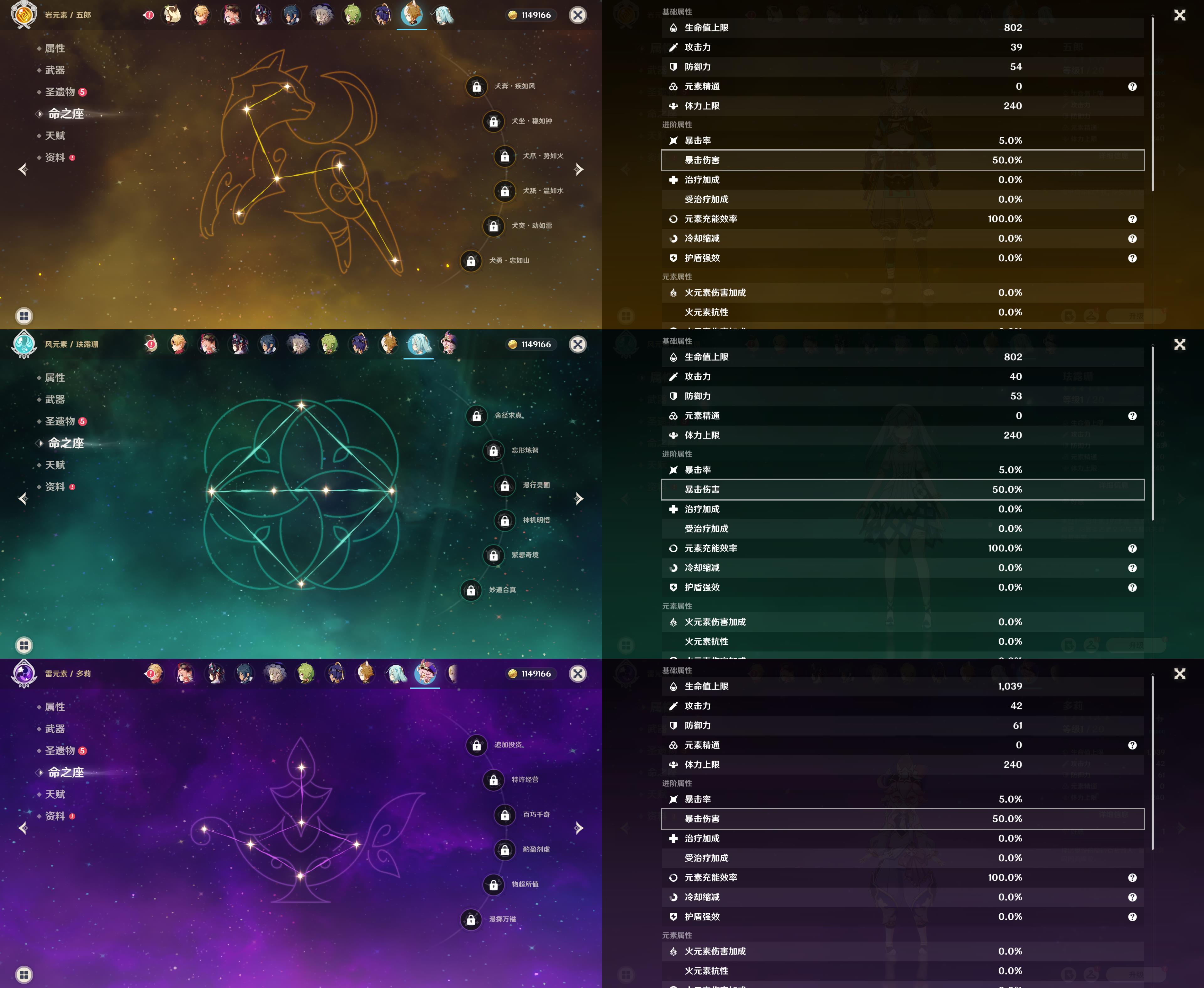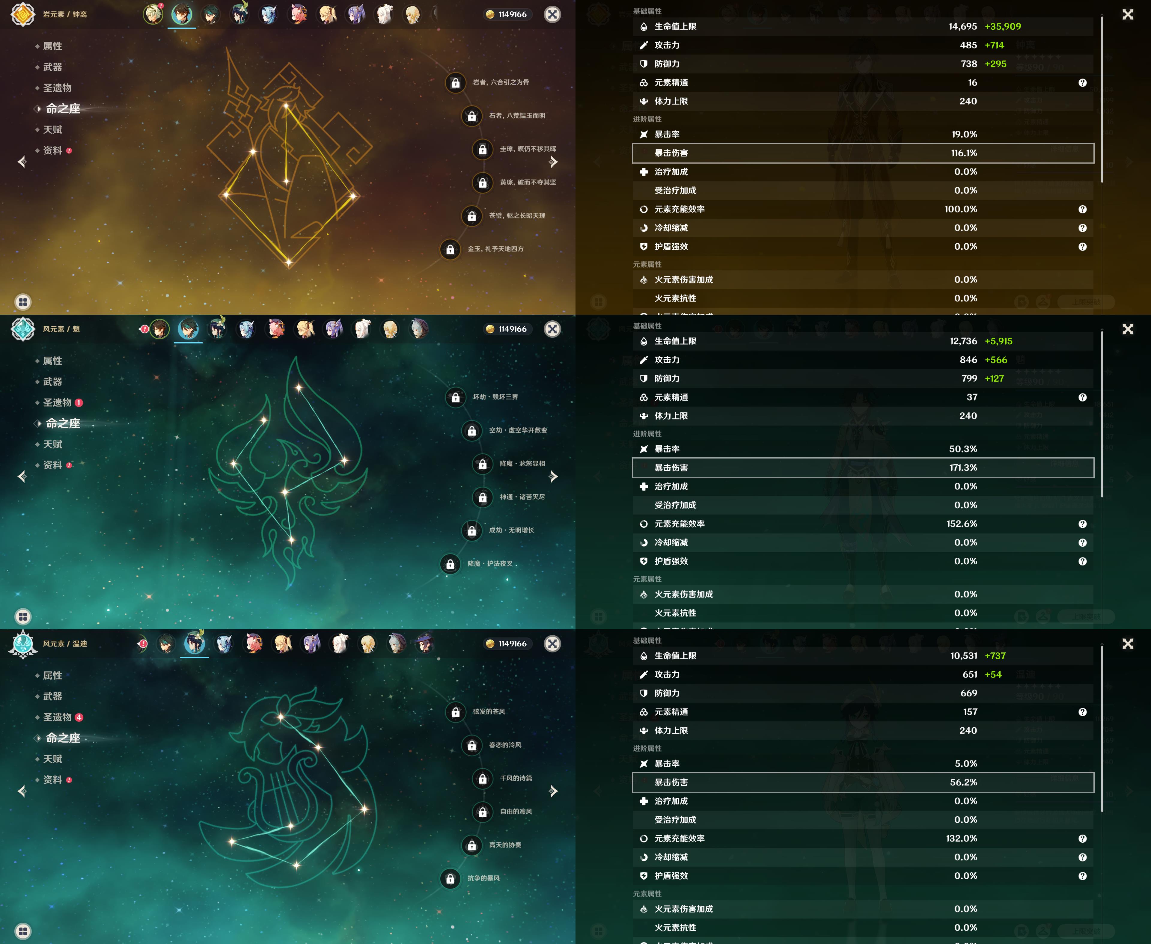 56级/17黄/女主/11个五星角色/3个五星武器/胡桃/钟离/魈/温迪/1命优菈/刻晴