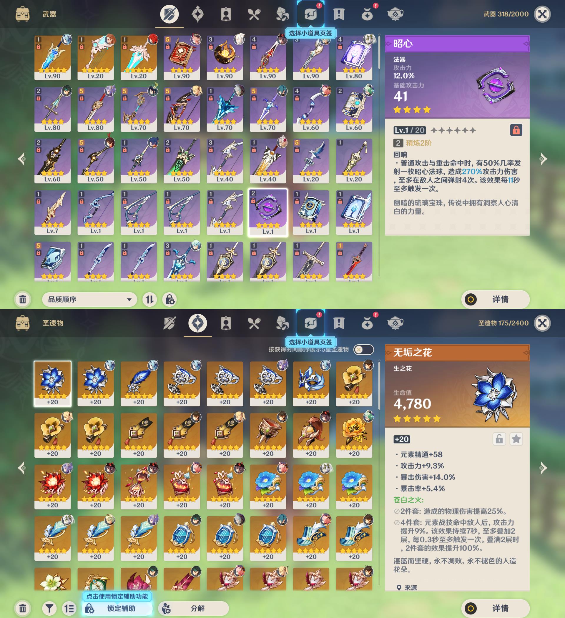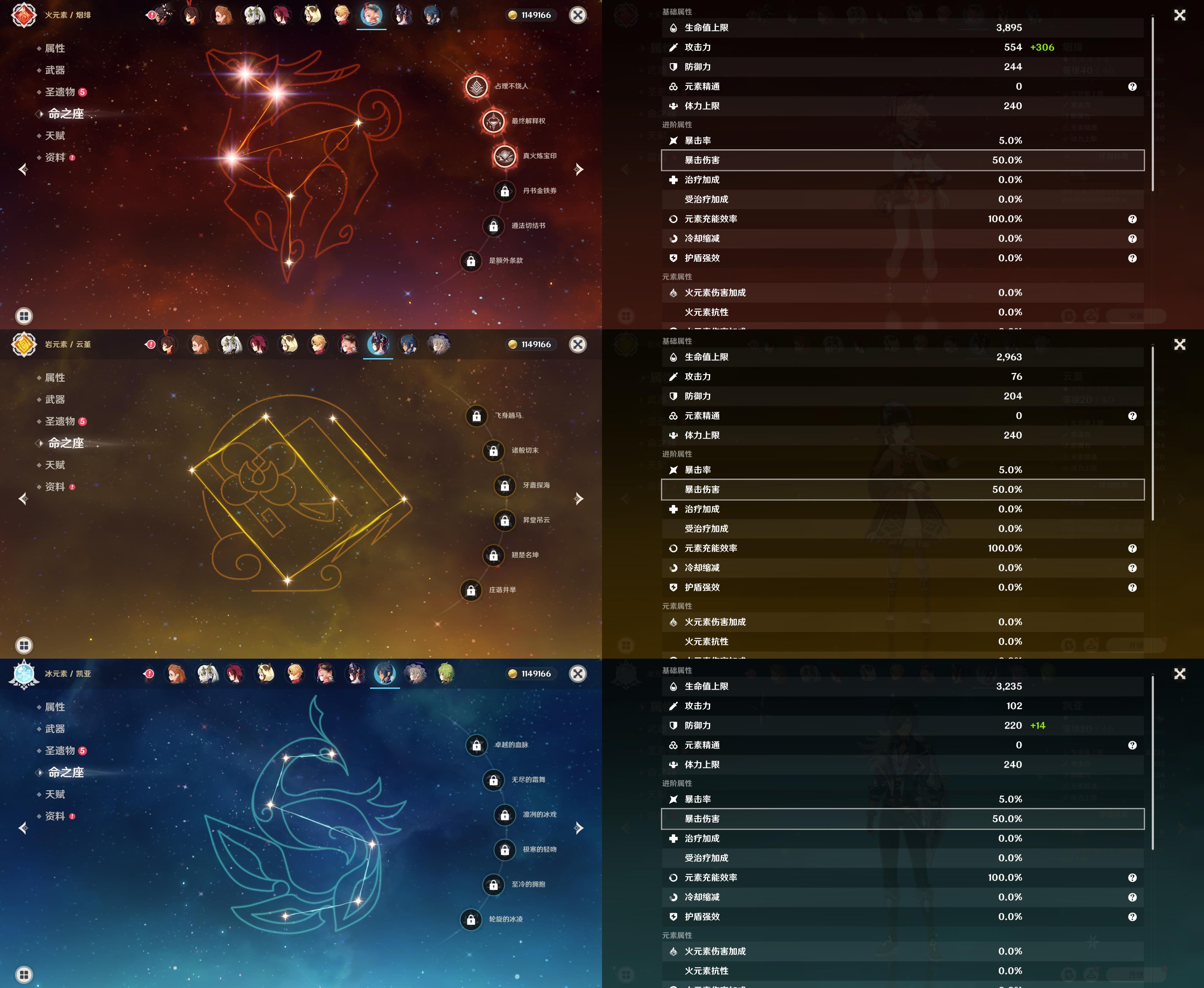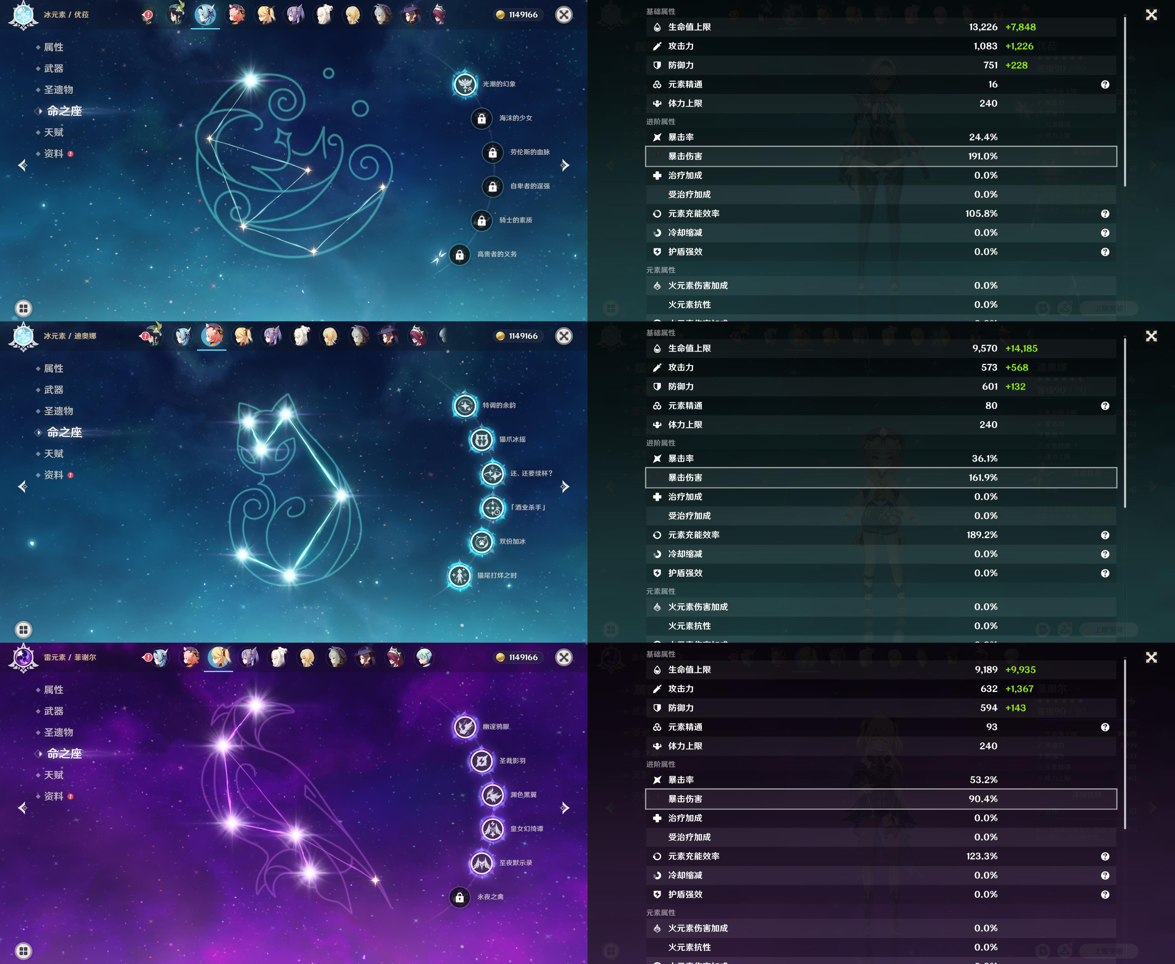 56级/17黄/女主/11个五星角色/3个五星武器/胡桃/钟离/魈/温迪/1命优菈/刻晴