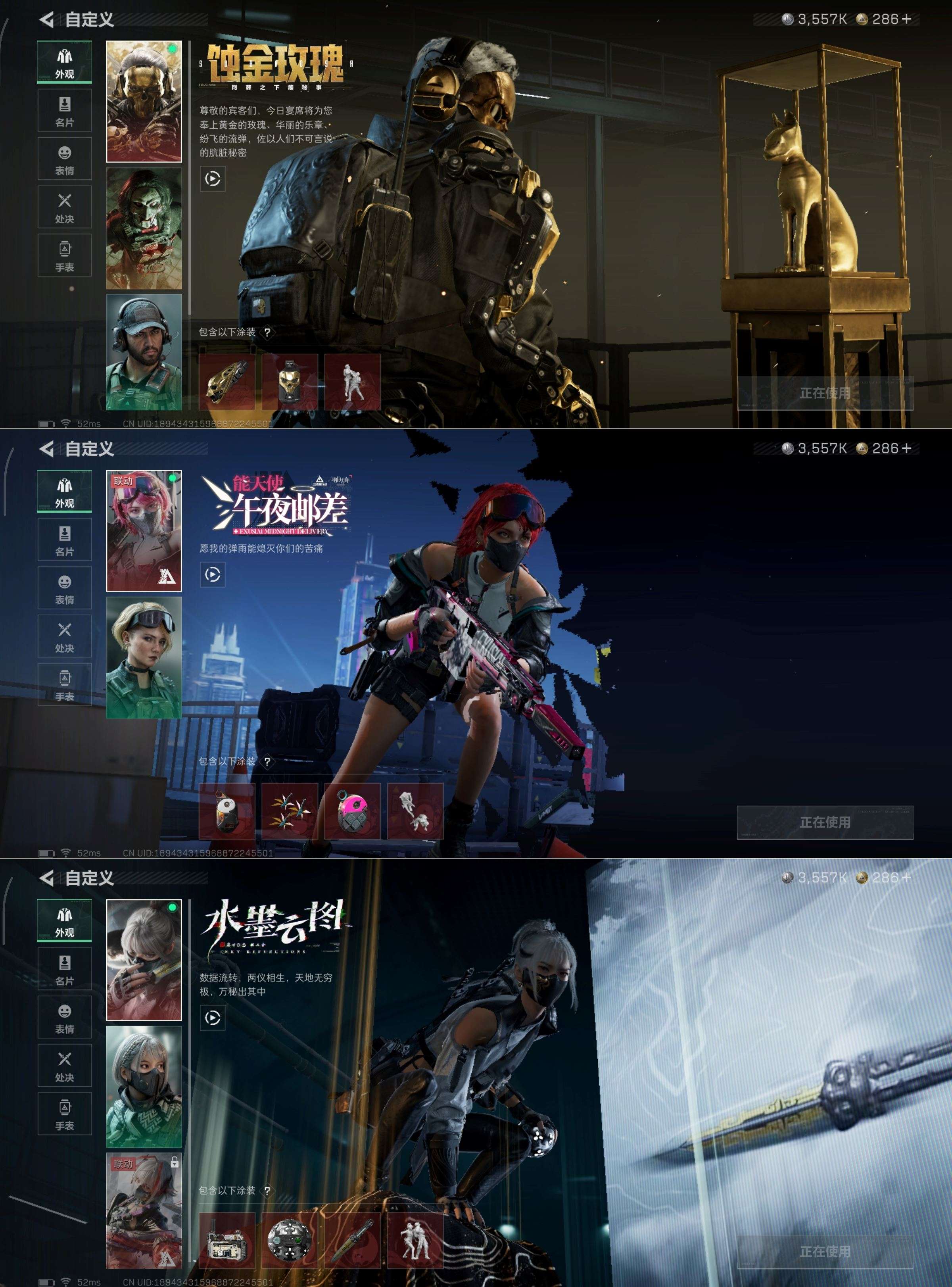 MSJ3398【水墨云图 蚀金玫瑰 信条】三端互通-总价值67.02M-哈夫币723.46K-烽火地带等级60-烽火地带段位铂金【干员皮肤】骇爪-水墨云图 红狼-蚀金玫瑰 红狼-电锯惊魂 蛊-能天使·午夜邮差【近战武器】黑鹰 信条【枪皮】AUG突击步枪-常青藤 AK-12突击步枪-淘金者 M4A1突击步枪-猛兽 AK-12突击步枪-旧工业 AS Val突击步枪-地平线 K416突击步枪-暗鸦 M4A1突击步枪-粉色涂装 M4A1突击步枪-高雅黑 M4A1突击步枪-海色 M4A1突击步枪-繁盛 M