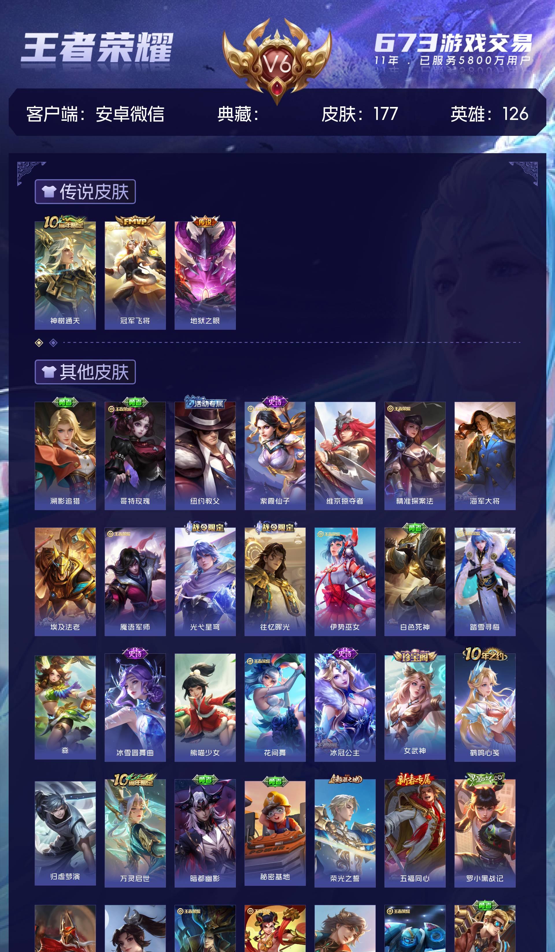 V6 皮肤177 英雄126 绝世王者 传说3 其他皮肤179