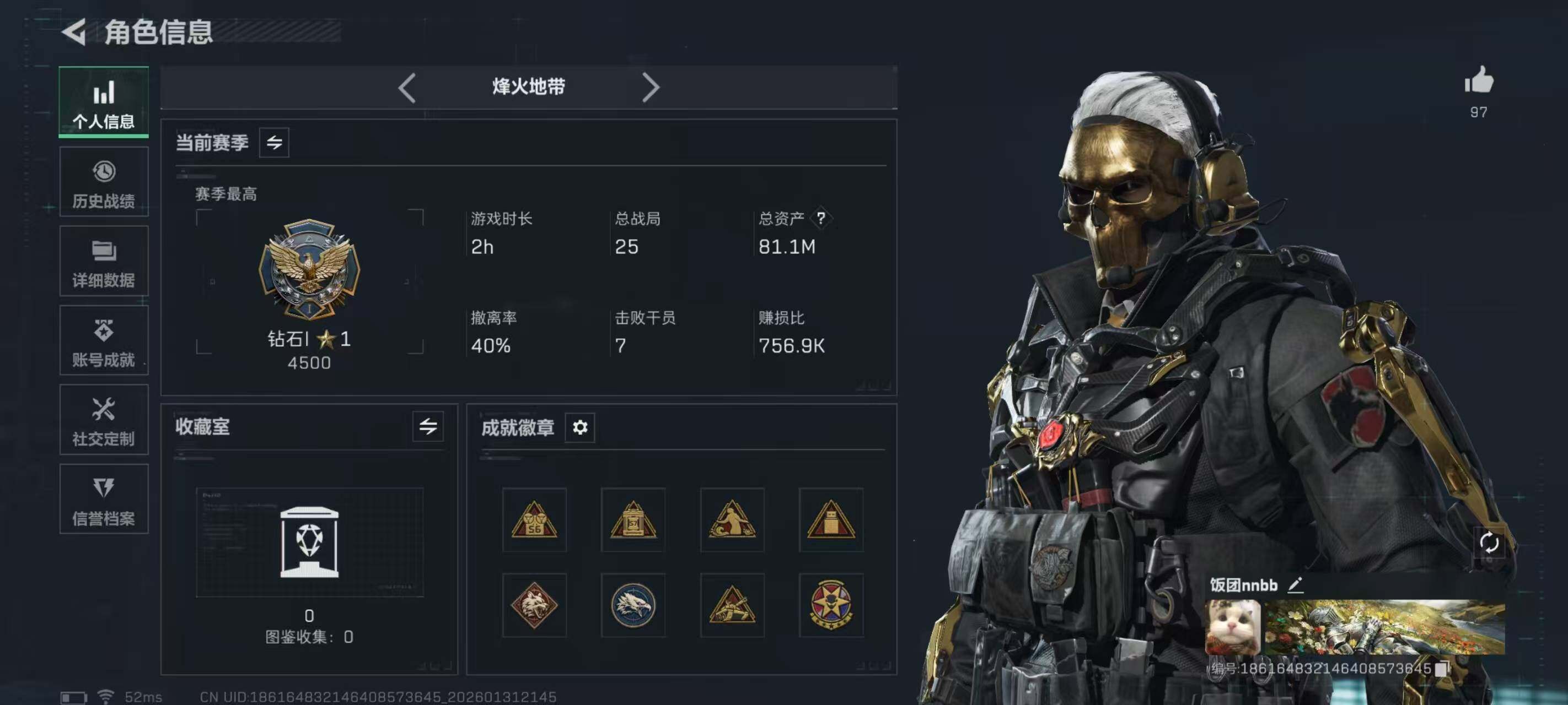 LJ4996总资产81.1M哈弗币14840K近战武器-北极星,近战武器-信条红狼蚀金玫瑰,露娜黑天际线,红狼电锯惊魂,蜂医送葬人无题密令,深蓝不破誓约,露娜金牌射手无无AW子弹0发三角币140仓库LV.8基础安全箱靶场LV.6训练中心LV.6无,红狼-蚀金玫瑰,露娜-黑·天际线,红狼-电锯惊魂,蜂医-送葬人·无题密令,深蓝-不破誓约,露娜-金牌射手,近战-北极星,近战-信条