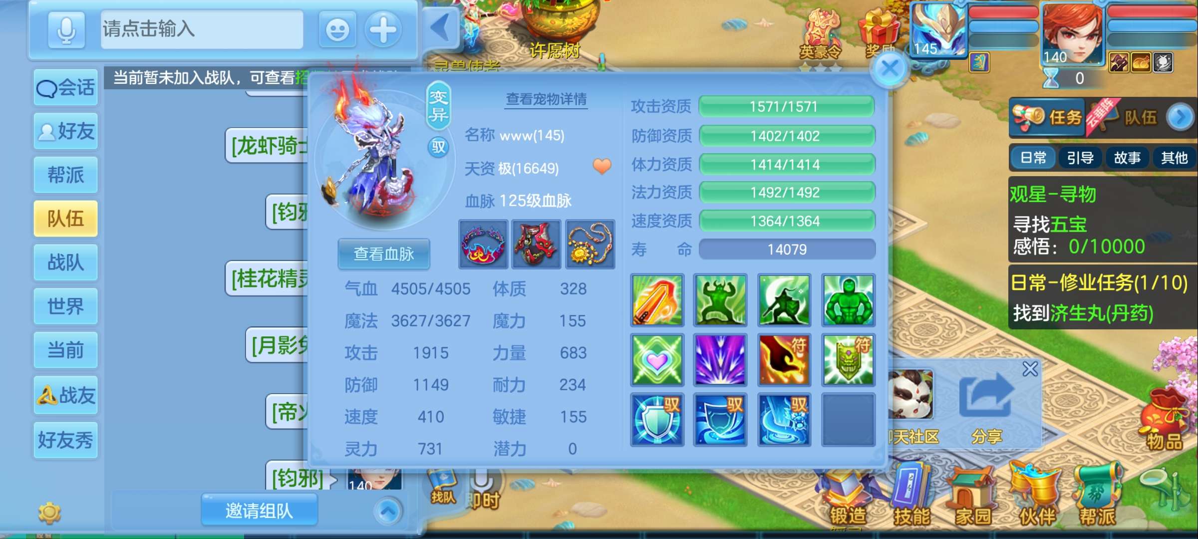 飞升140奶。双高级坐骑宝宝多得用不完。