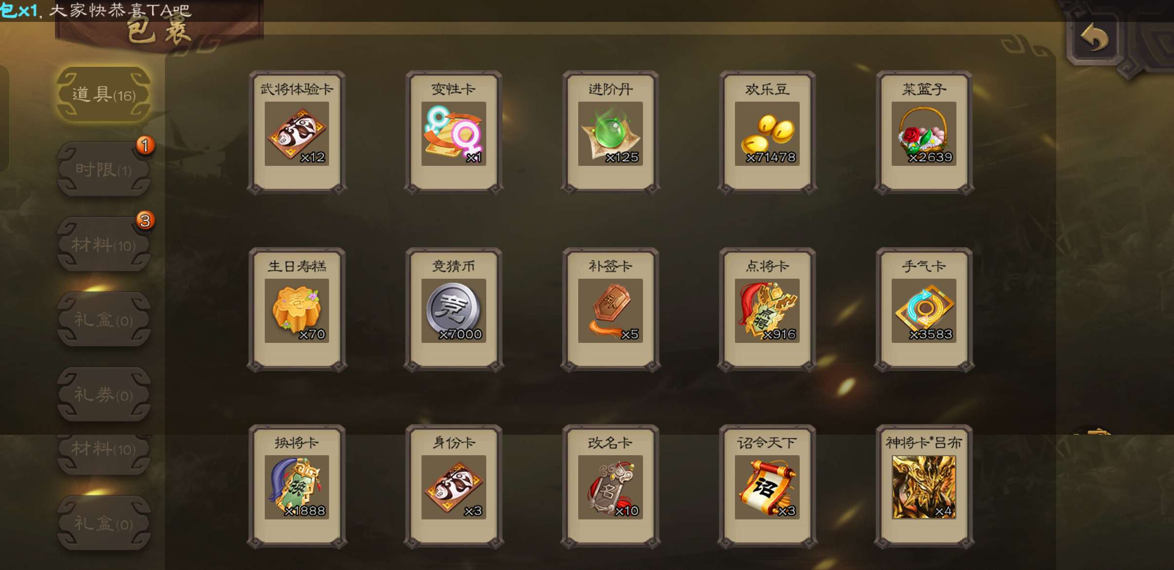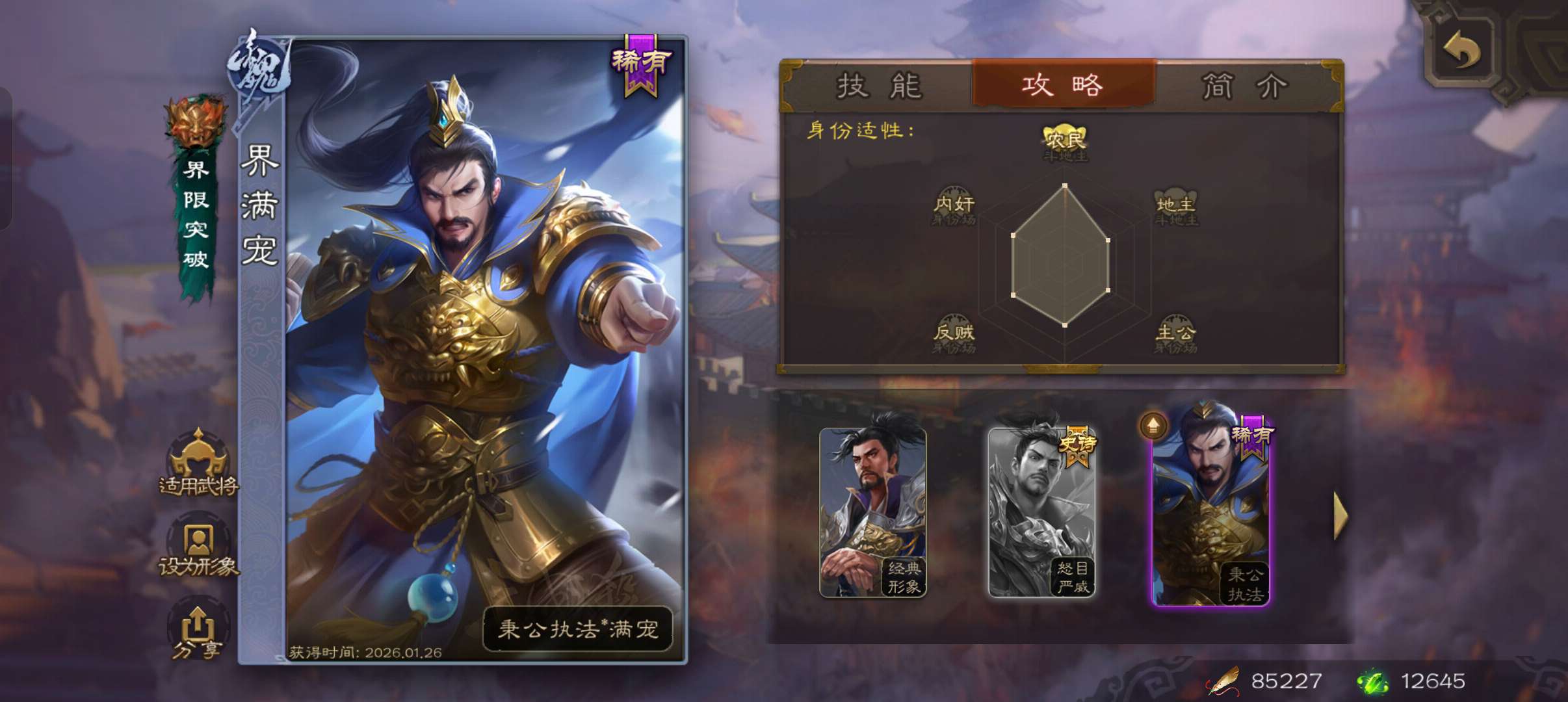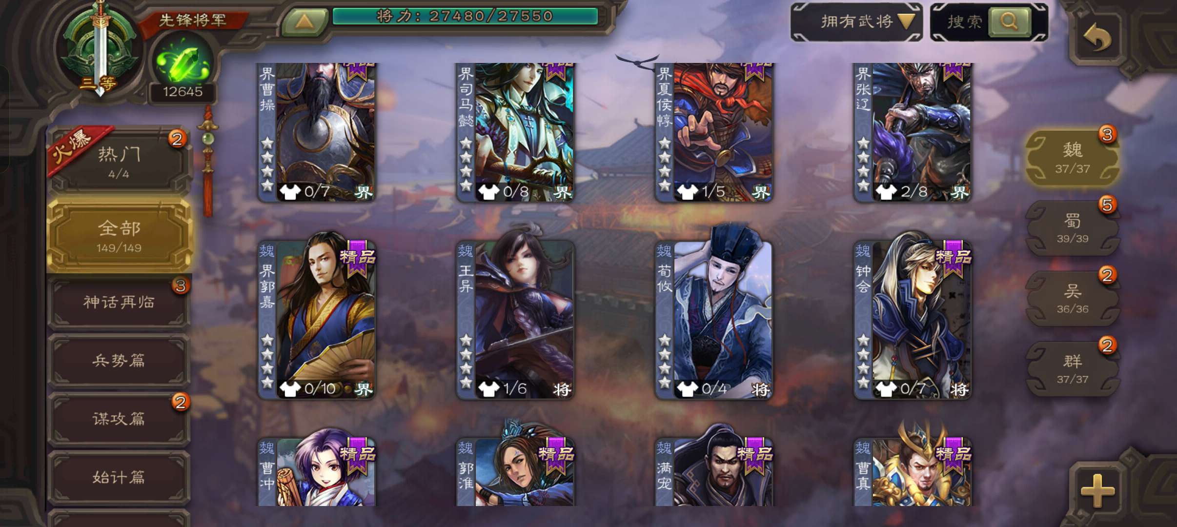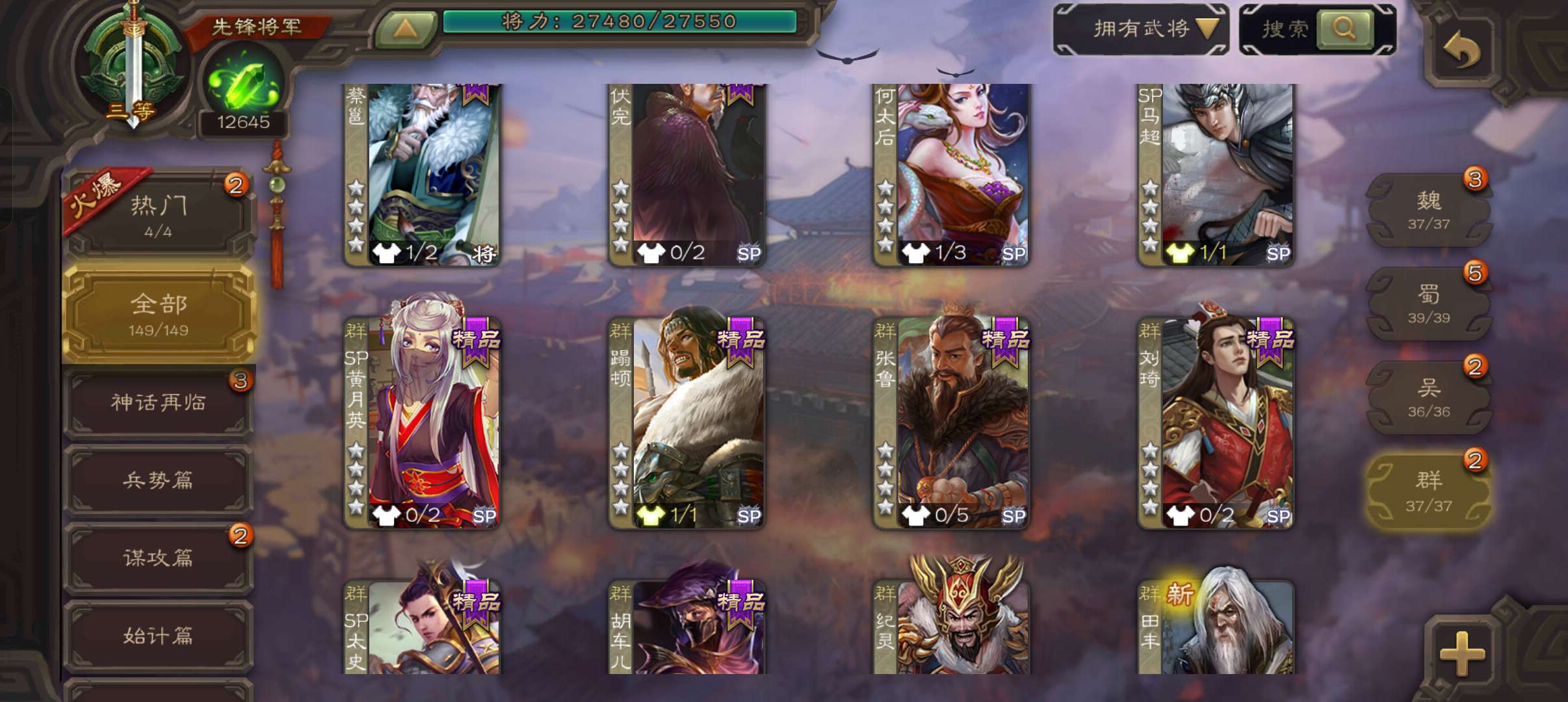 8.5万羽毛1.2万将魂7万豆,大宝界徐盛沮授双史诗先锋,谋韩当谋卢植谋小乔界满宠关银屏149将