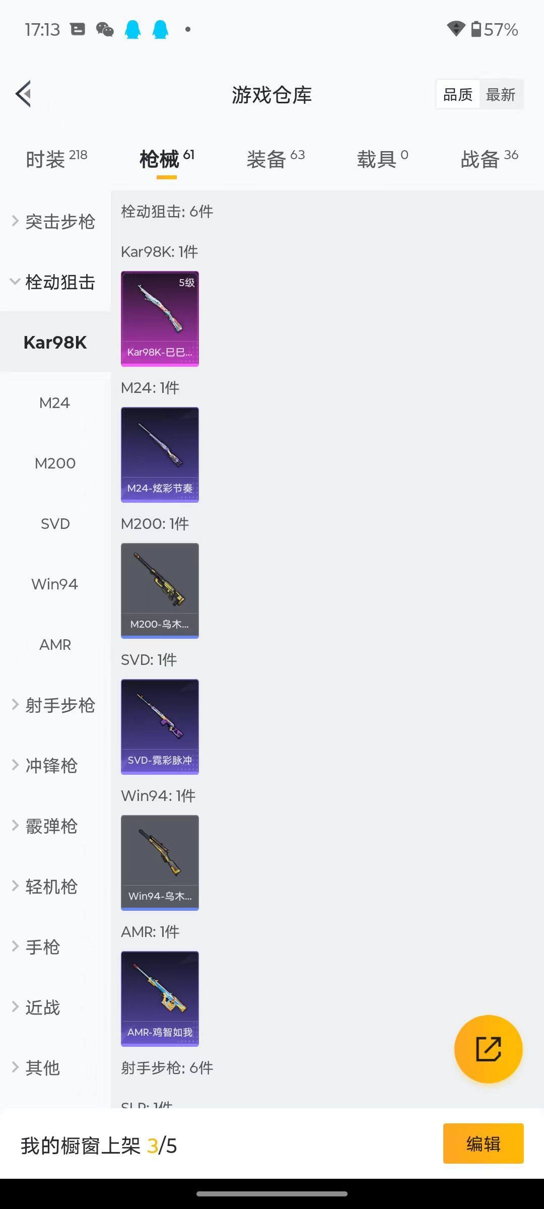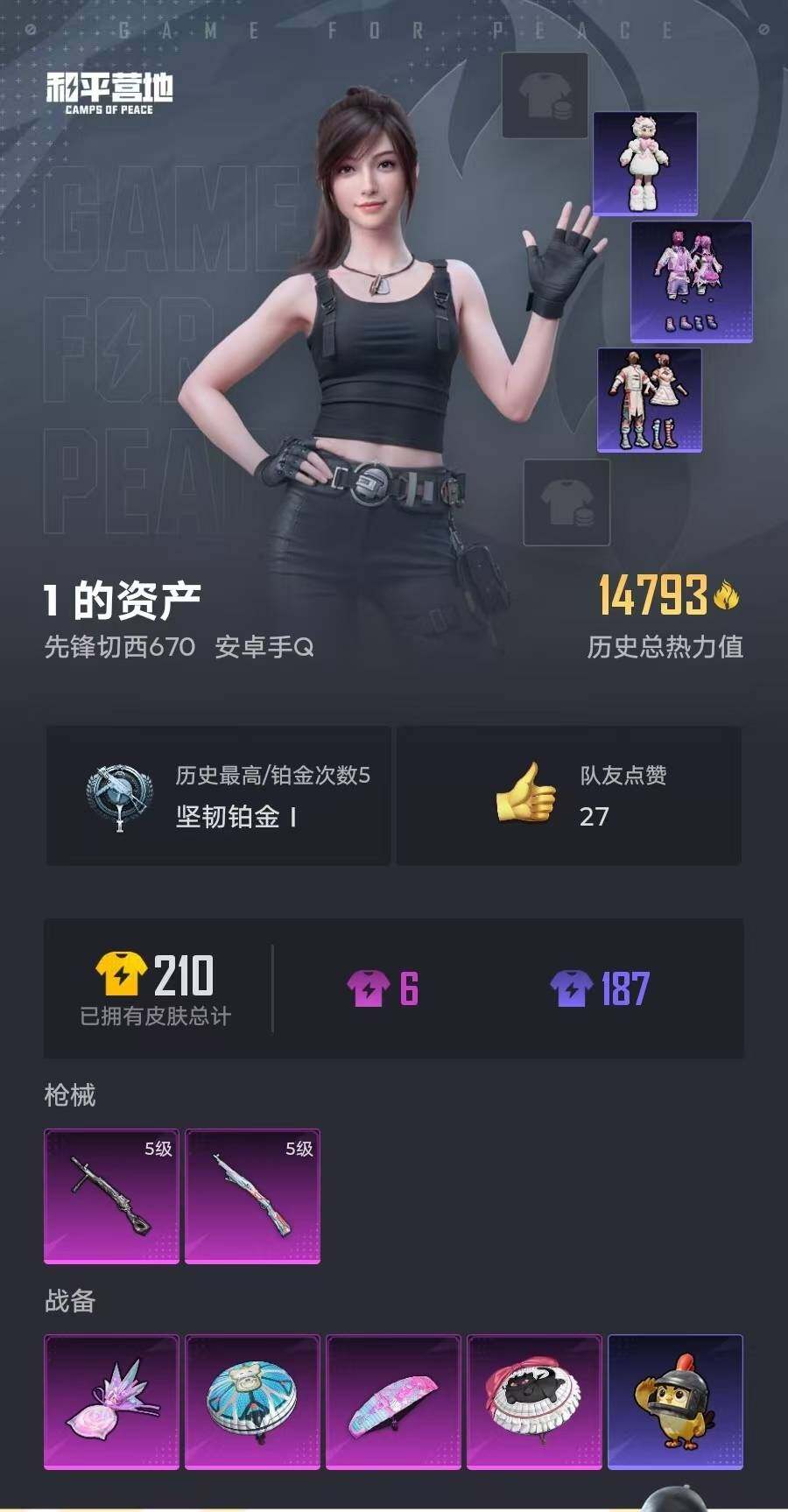 50套装/枪械2/装备63/战备36/热力值14793/五级Kar98K-巳巳