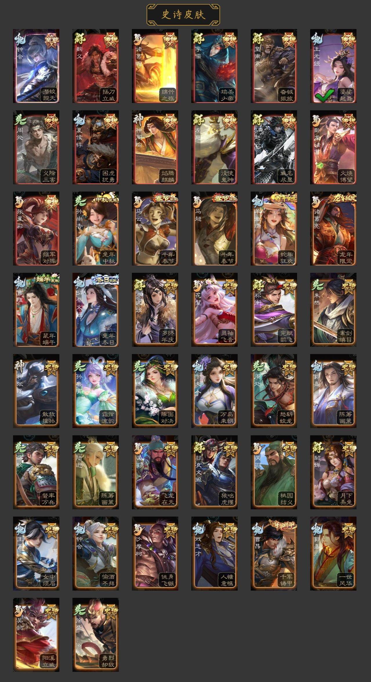 官阶:骠骑将军;VIP等级:VIP7;史诗武将数量:30;动态皮肤数量:19;