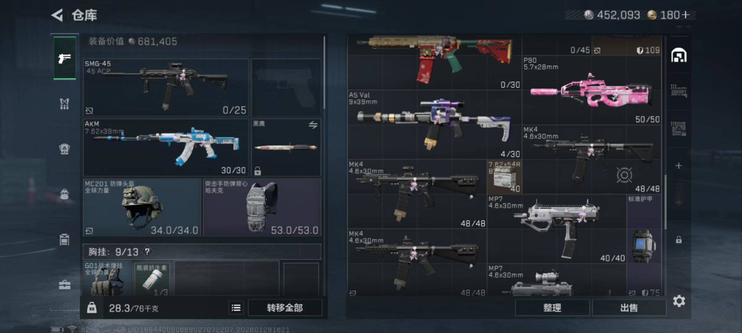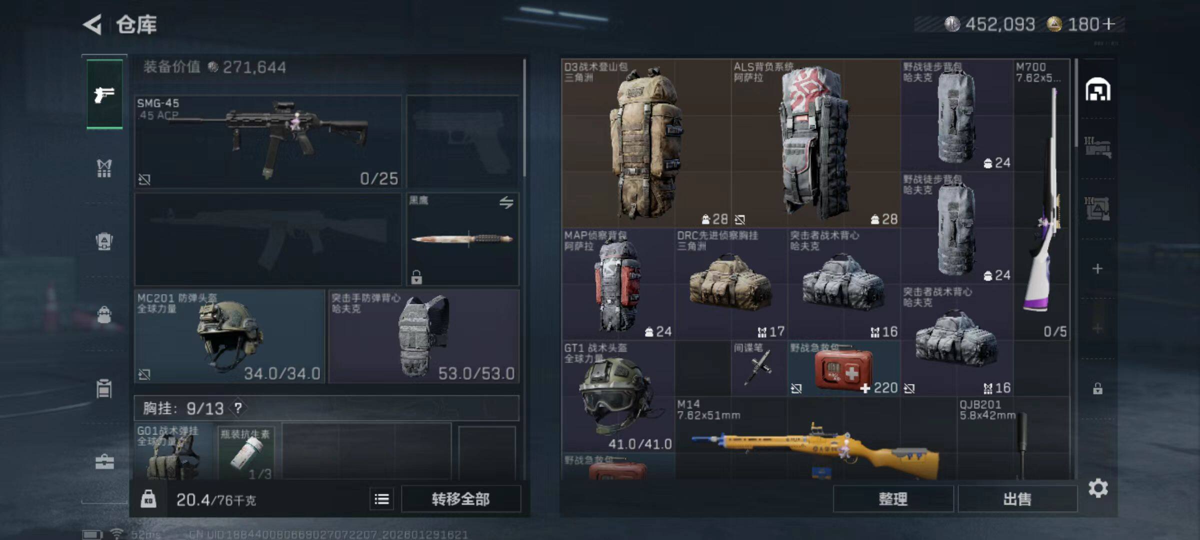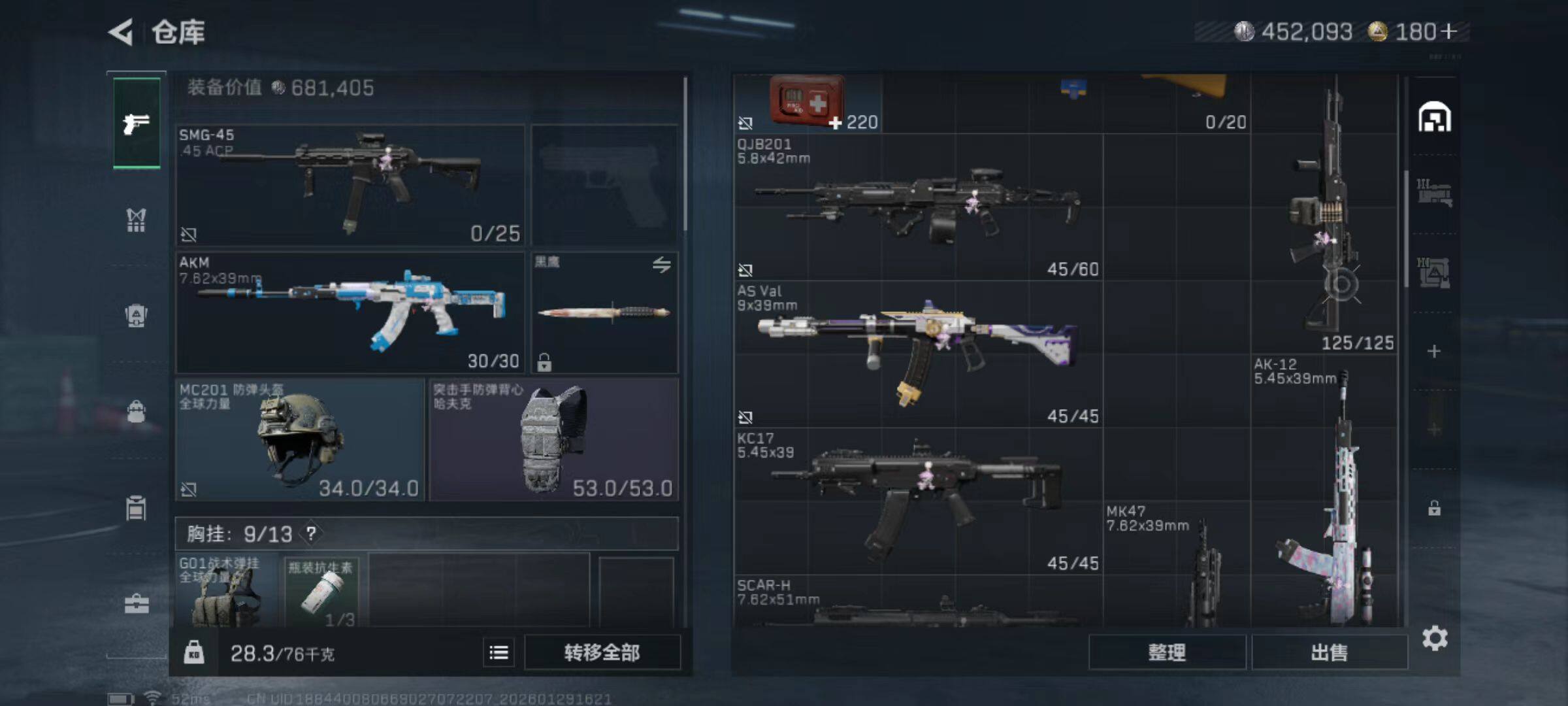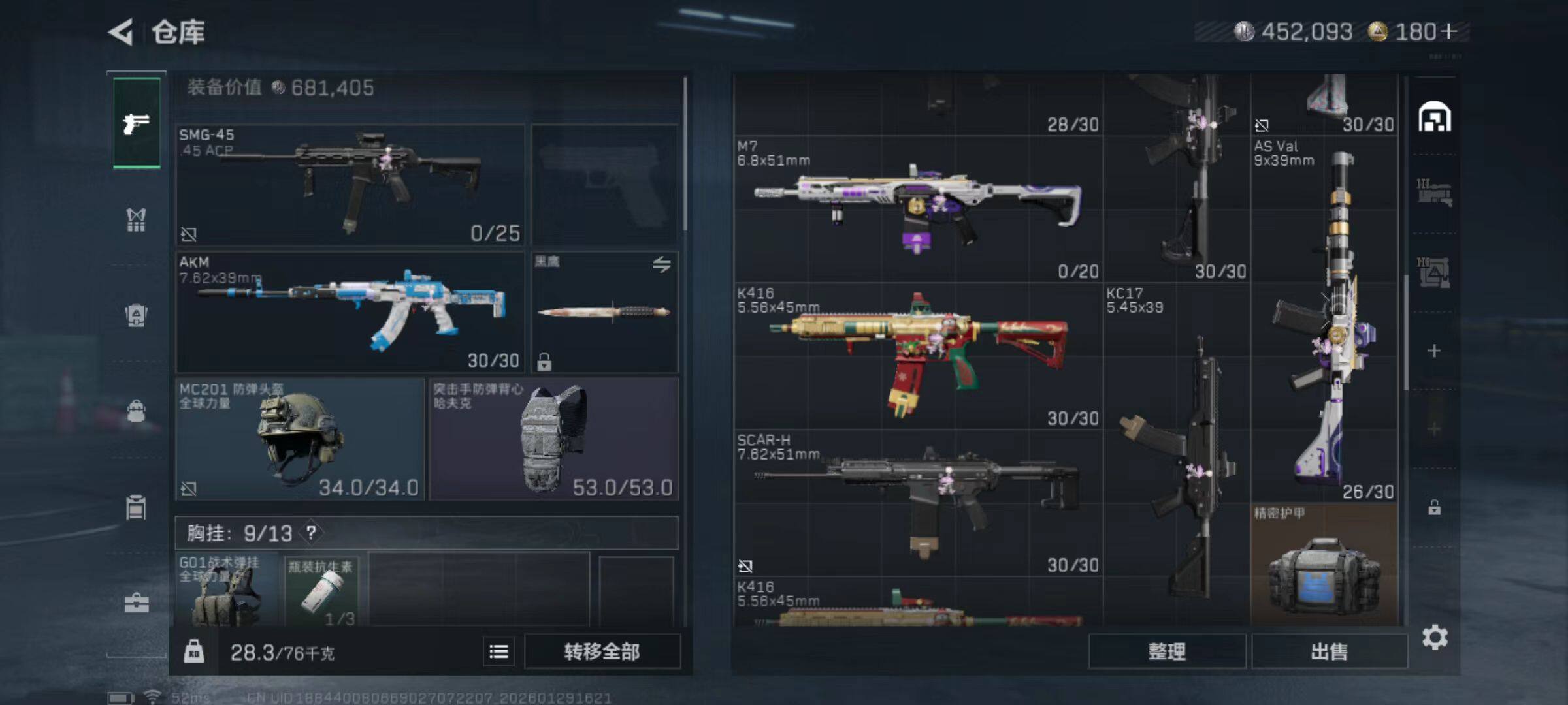 总资产(M):43M/哈夫币(K):452K/哈夫币(K):452K/传说枪皮