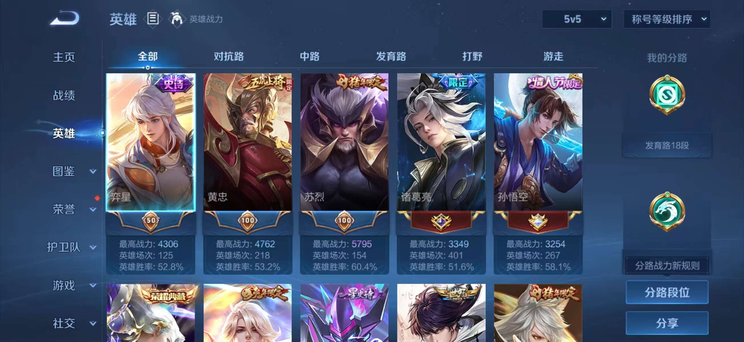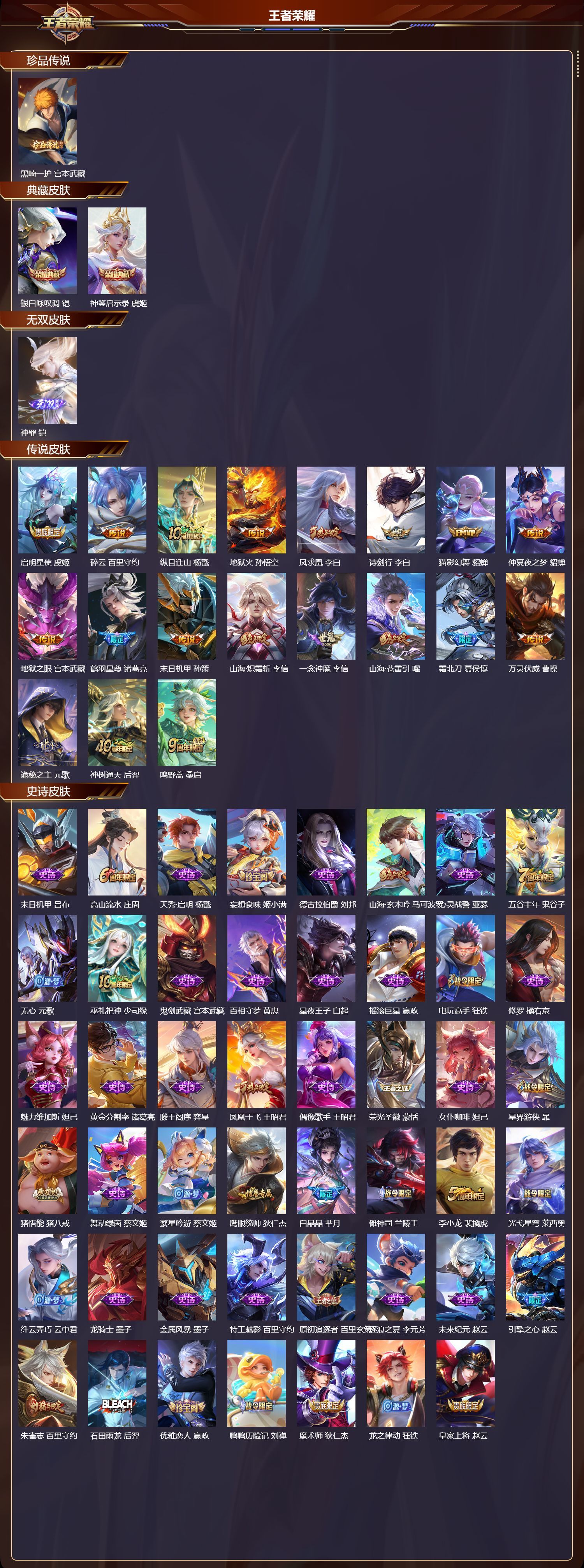 安卓QQ/至尊星耀/321皮肤/128英雄/2典藏/0珍品无双/1无双/1珍品传说/19传说/79史