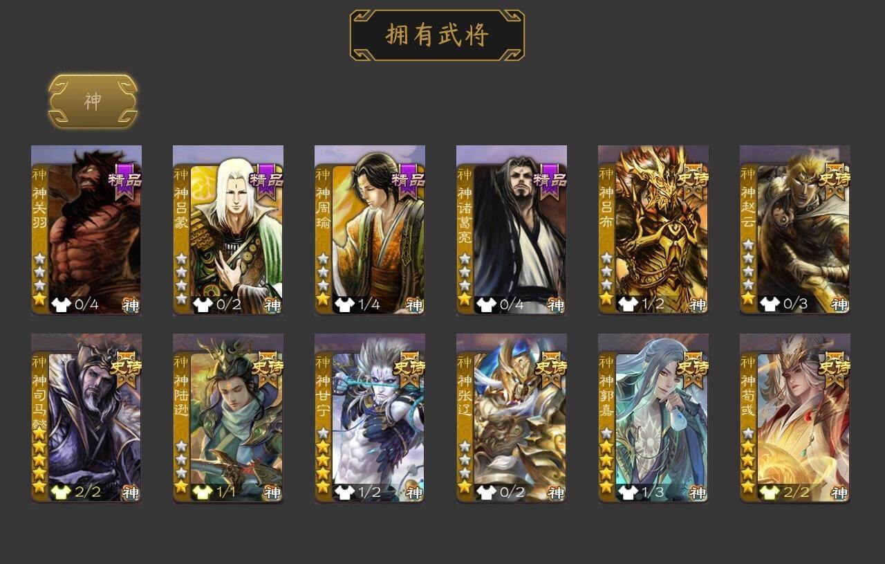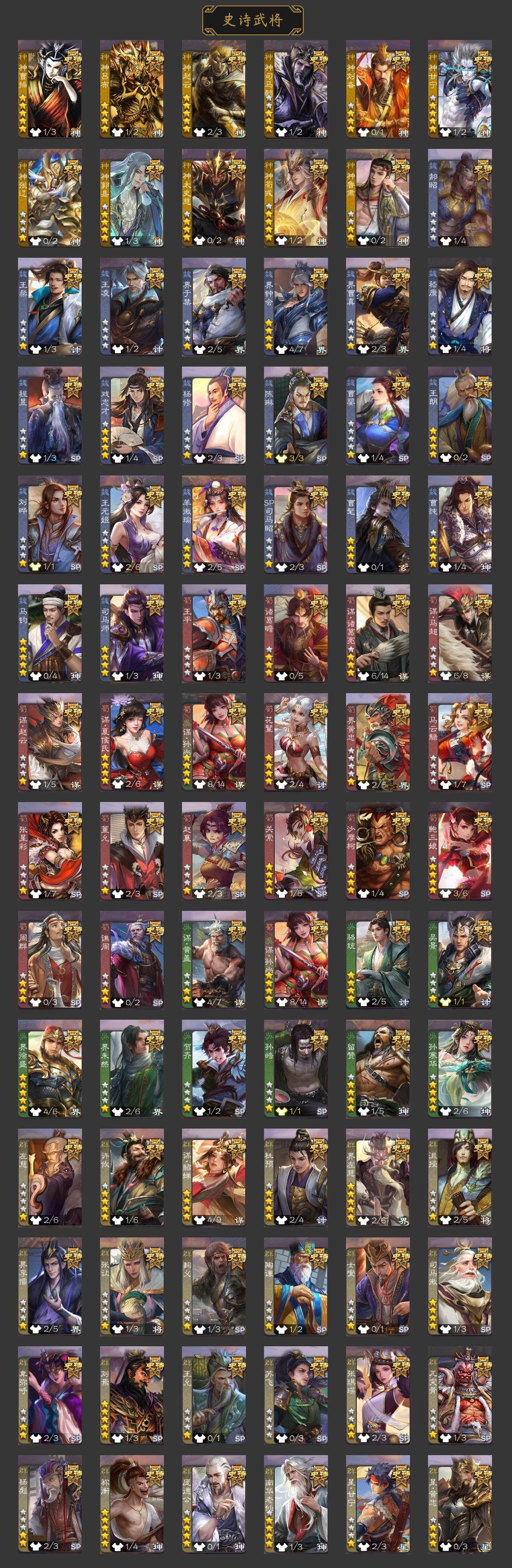 神吕布,神赵云,神司马懿,神陆逊,神甘宁,神张辽,神郭嘉,神荀彧,神诸葛亮,SP司马昭,曹髦,星周不疑,王粲,杨修,羊徽瑜,王元姬,王朗,界钟会,界于禁,界曹真,郝昭,曹婴,曹