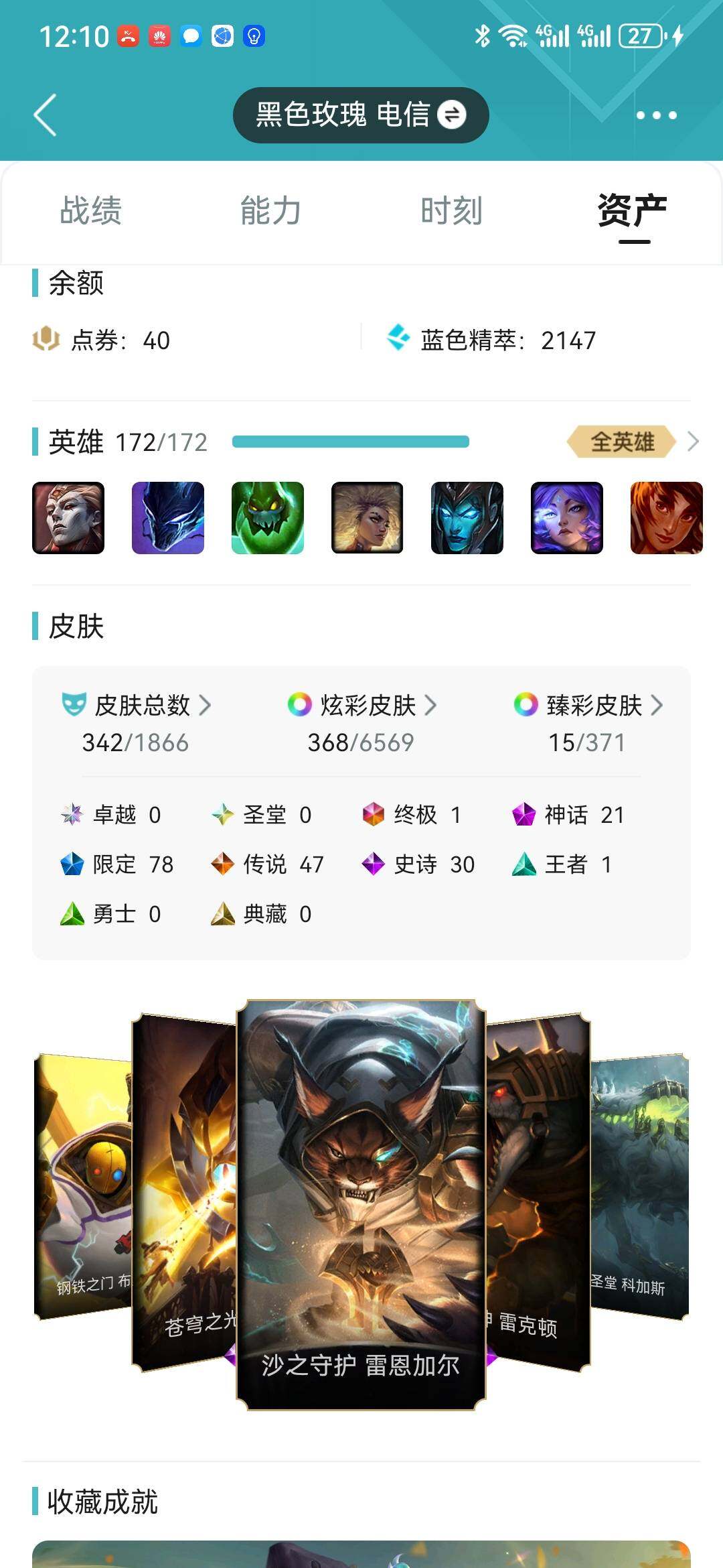 可二次【特价出售/店主推荐】未定级段位-172英雄-342皮肤-368炫彩-1终极-21神话-78限定-47传说-30史诗