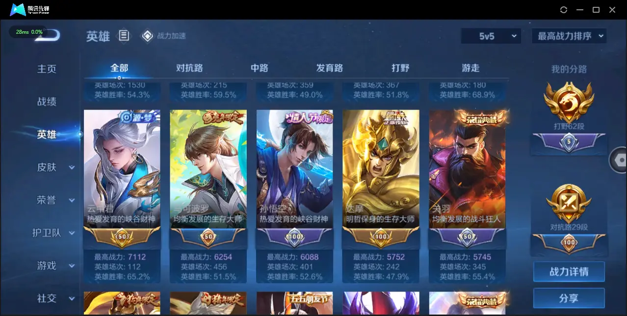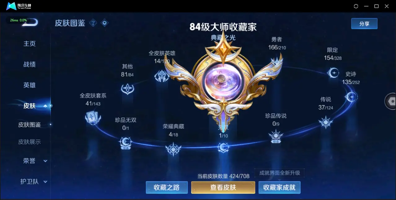 小国李白,打野62段,很多省标皮肤数424典藏皮肤数4无双皮