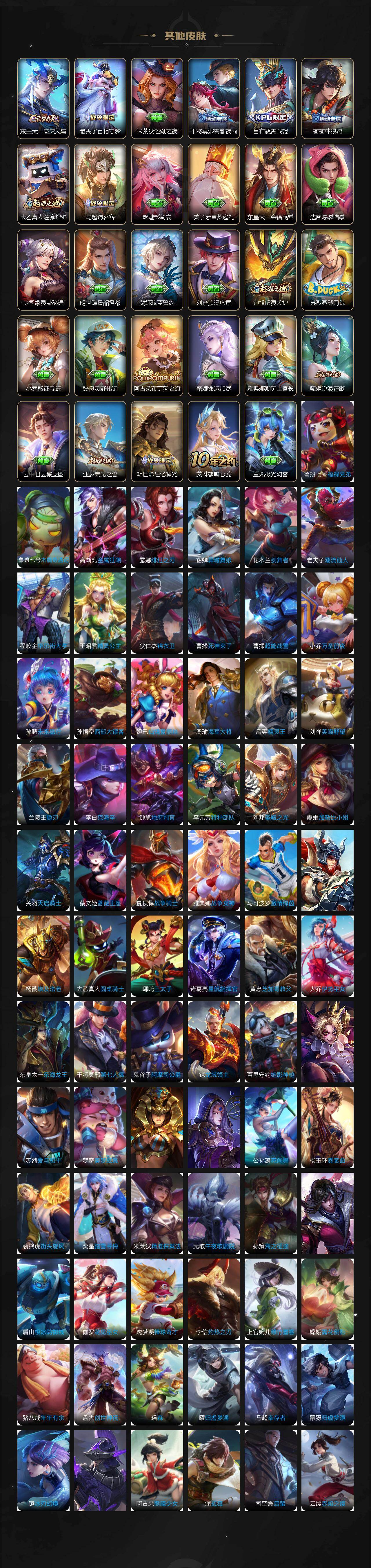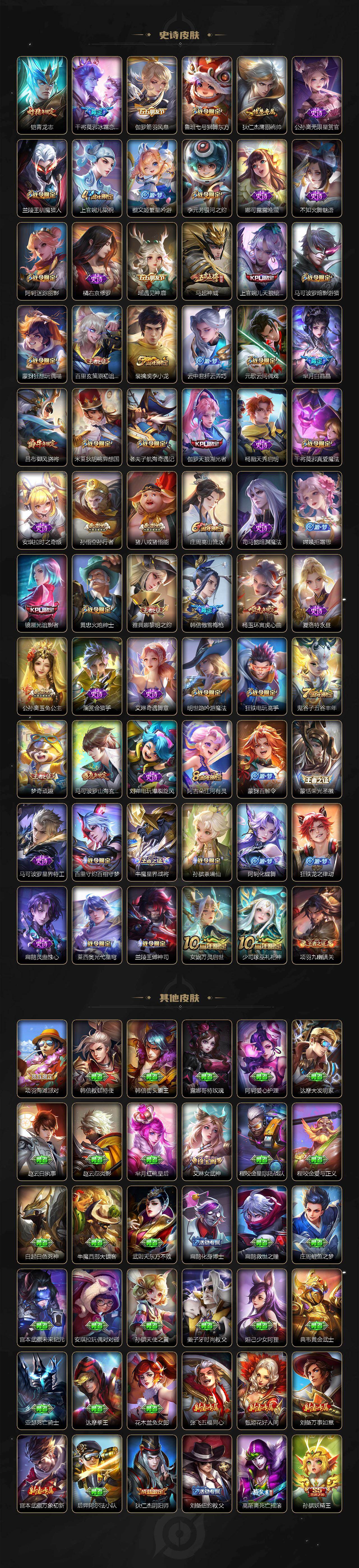 【英雄全皮】:马可波罗全皮,狂铁全皮,猪八戒全皮,马超全皮,影全皮