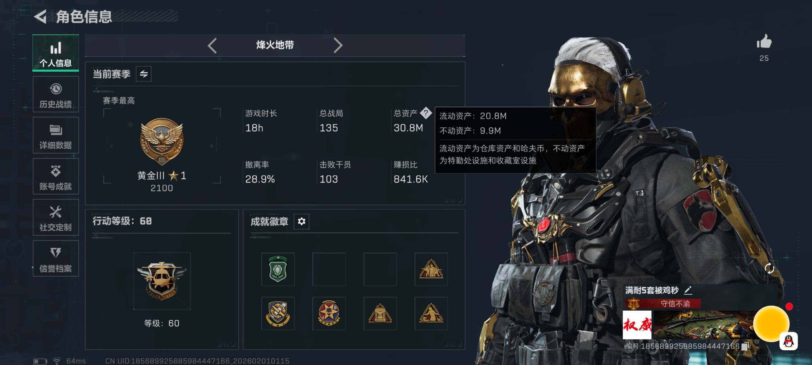 LJ5005总资产30.8M哈弗币170K近战武器-信条,近战武器-黑鹰红狼蚀金玫瑰,露娜金牌射手无无AW子弹0发三角币96仓库LV.6S7顶级安全箱靶场LV.3训练中心LV.6无,红狼-蚀金玫瑰,露娜-金牌射手,近战-信条,近战-黑鹰