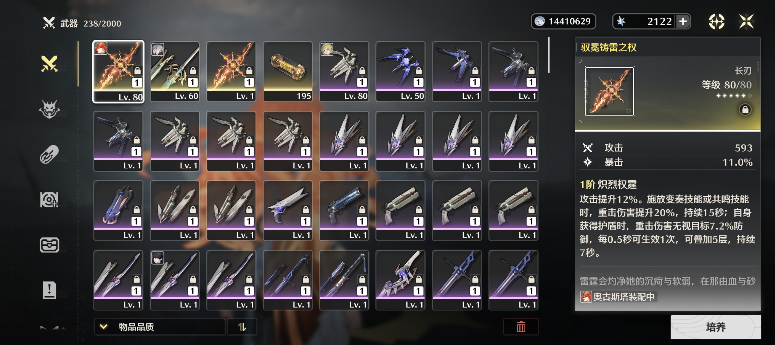 满命太阳,带了一把专武还有一把未精炼,声骸超级毕业,带2100+星声,池子垫了16抽。实拍图