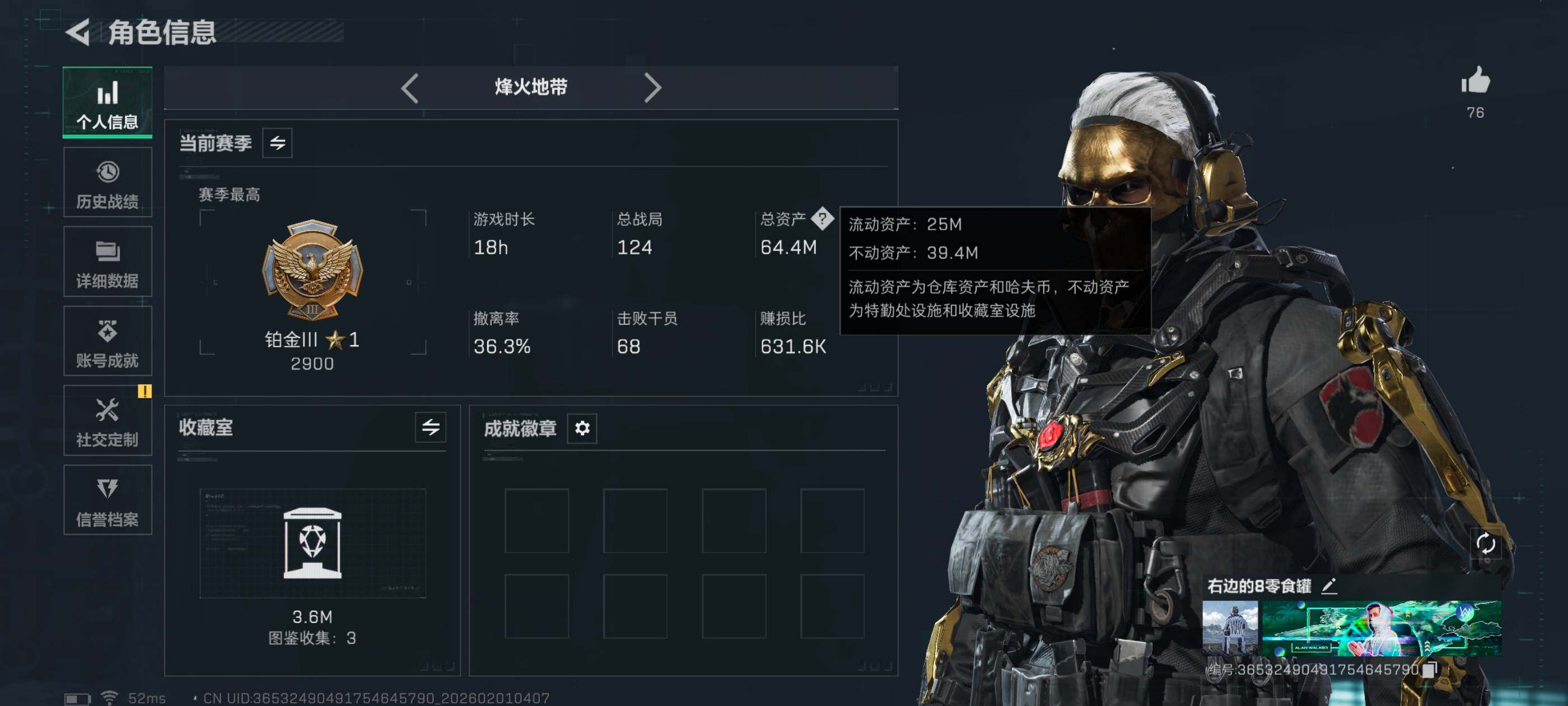 LJ5007总资产64.4M哈弗币921K近战武器-黑鹰红狼蚀金玫瑰,骇爪维什戴尔,露娜金牌射手无无AW子弹0发三角币262仓库LV.8S7顶级安全箱靶场LV.7训练中心LV.7无,红狼-蚀金玫瑰,骇爪-维什戴尔,露娜-金牌射手,近战-黑鹰
