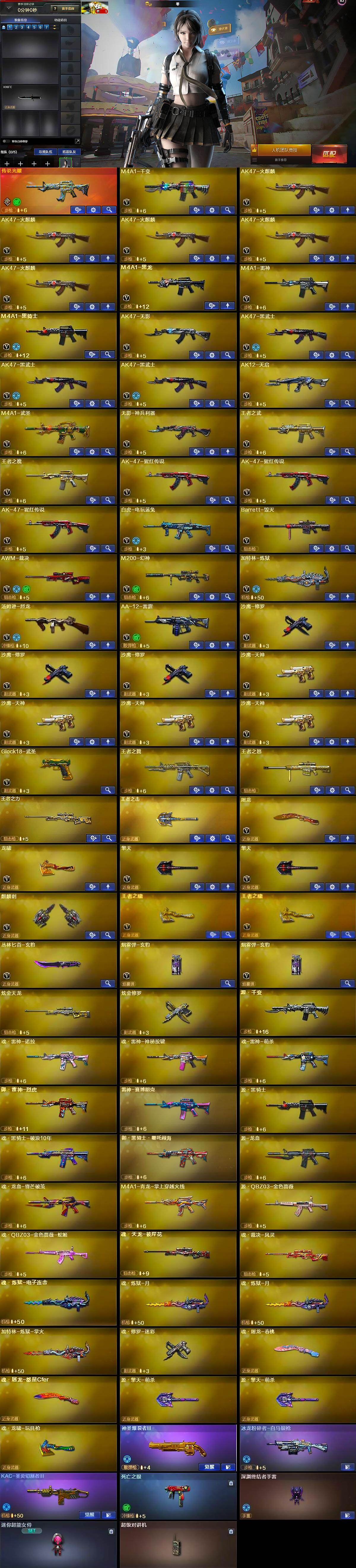 【热门武器】:传说光耀,M200-幻神,死亡之眼,白虎-电玩蓝兔,M4A1-黑骑士,汤姆逊-烈龙,加特林-炼狱,沙鹰-修罗*3