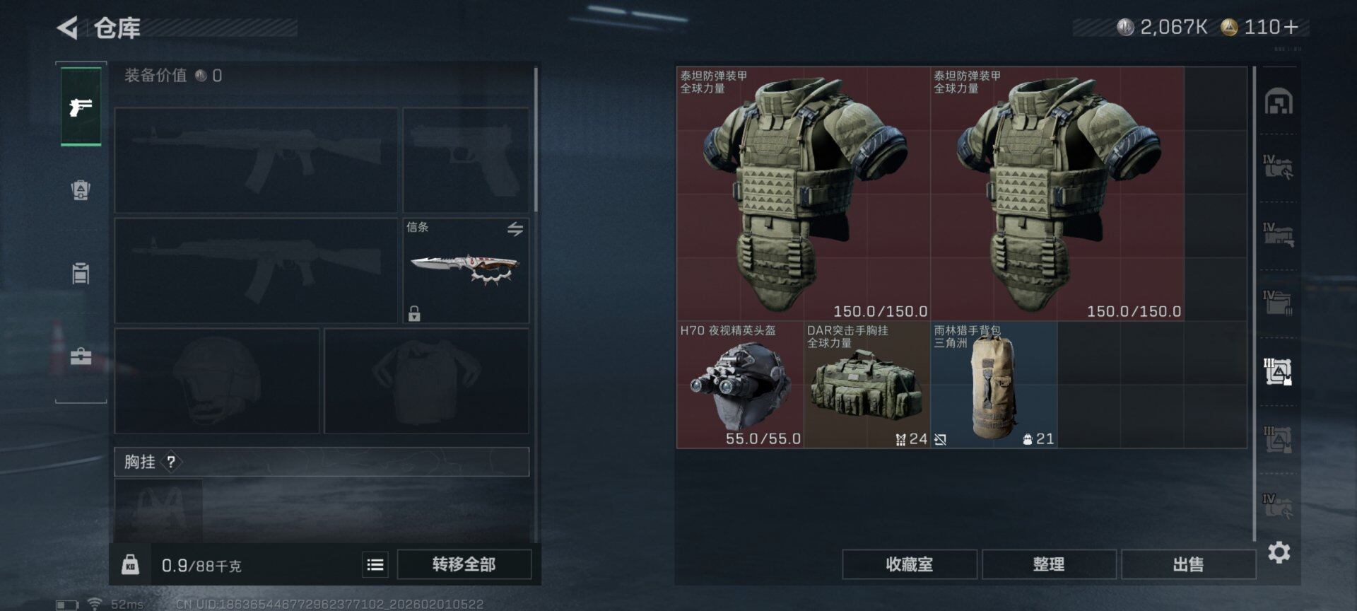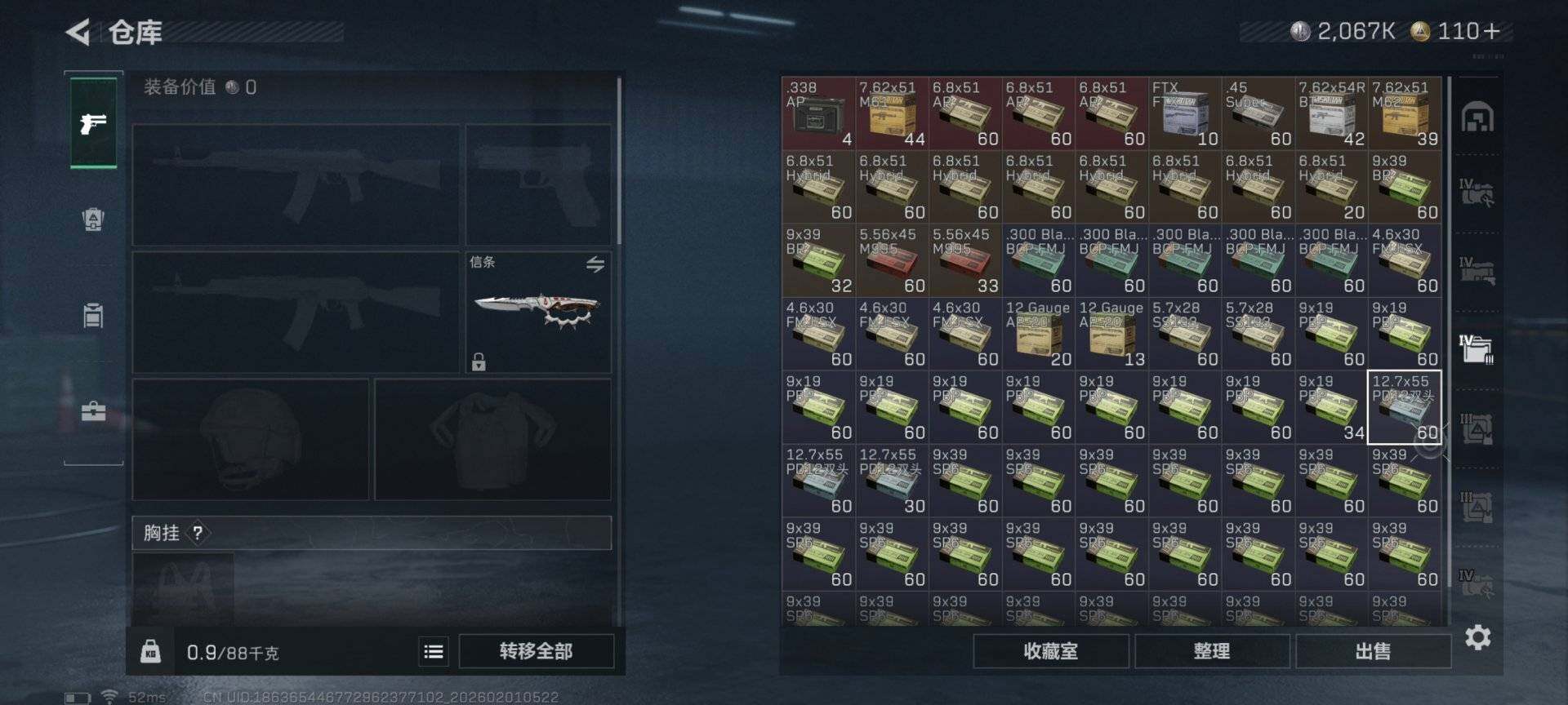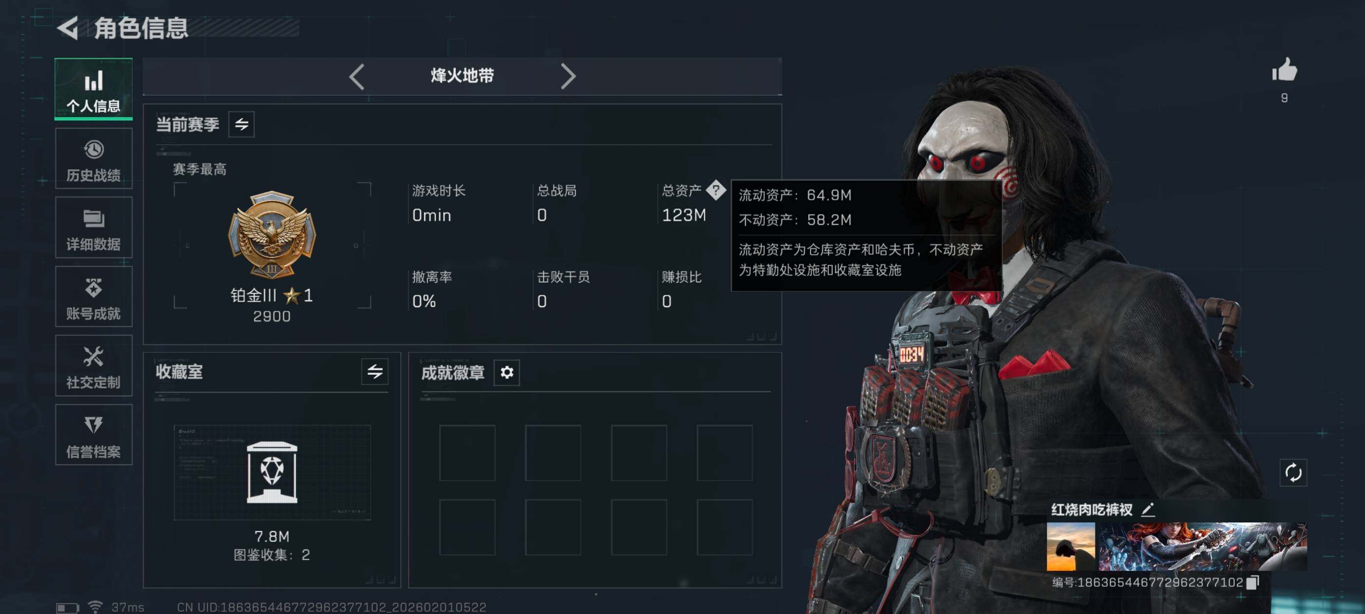 LJ5008总资产123M哈弗币2067K近战武器-信条,近战武器-黑鹰红狼电锯惊魂无无AW子弹4发三角币110仓库LV.9基础安全箱靶场LV.7训练中心LV.7无,红狼-电锯惊魂,近战-信条,近战-黑鹰